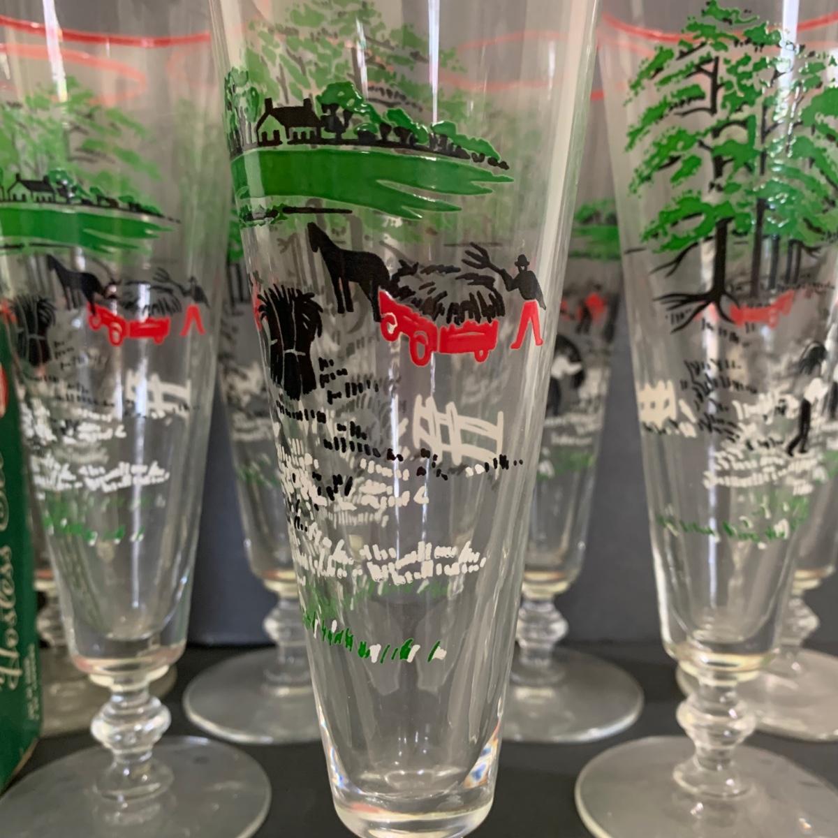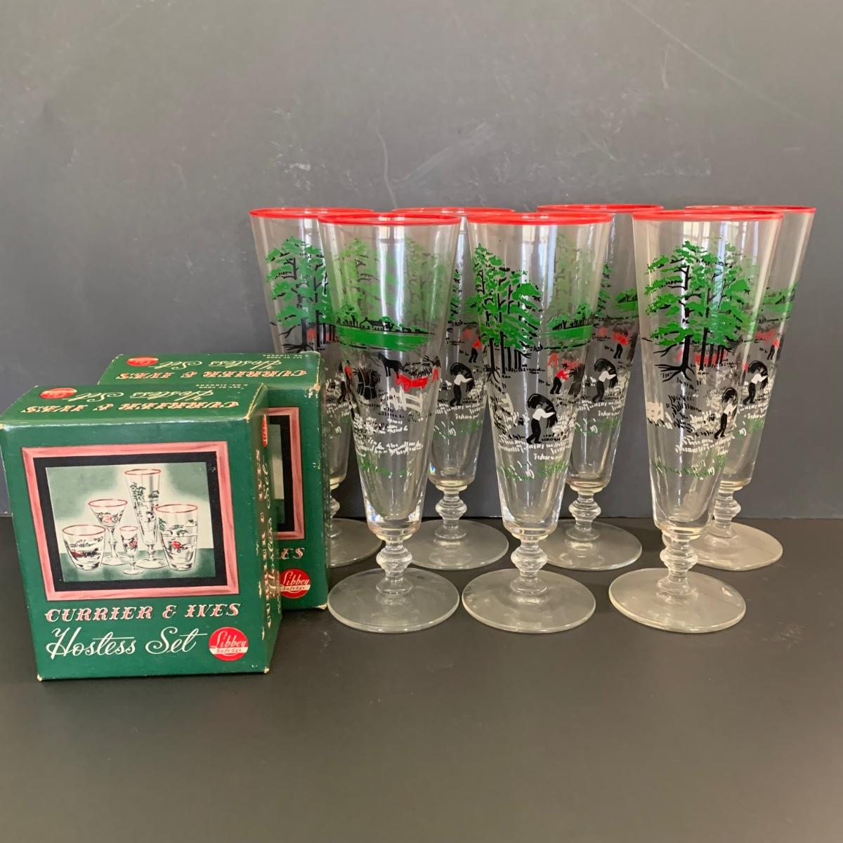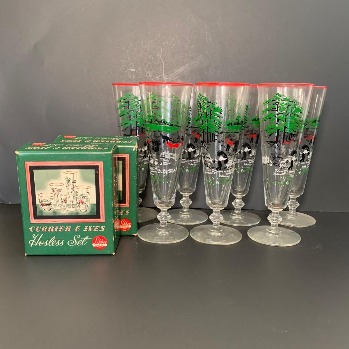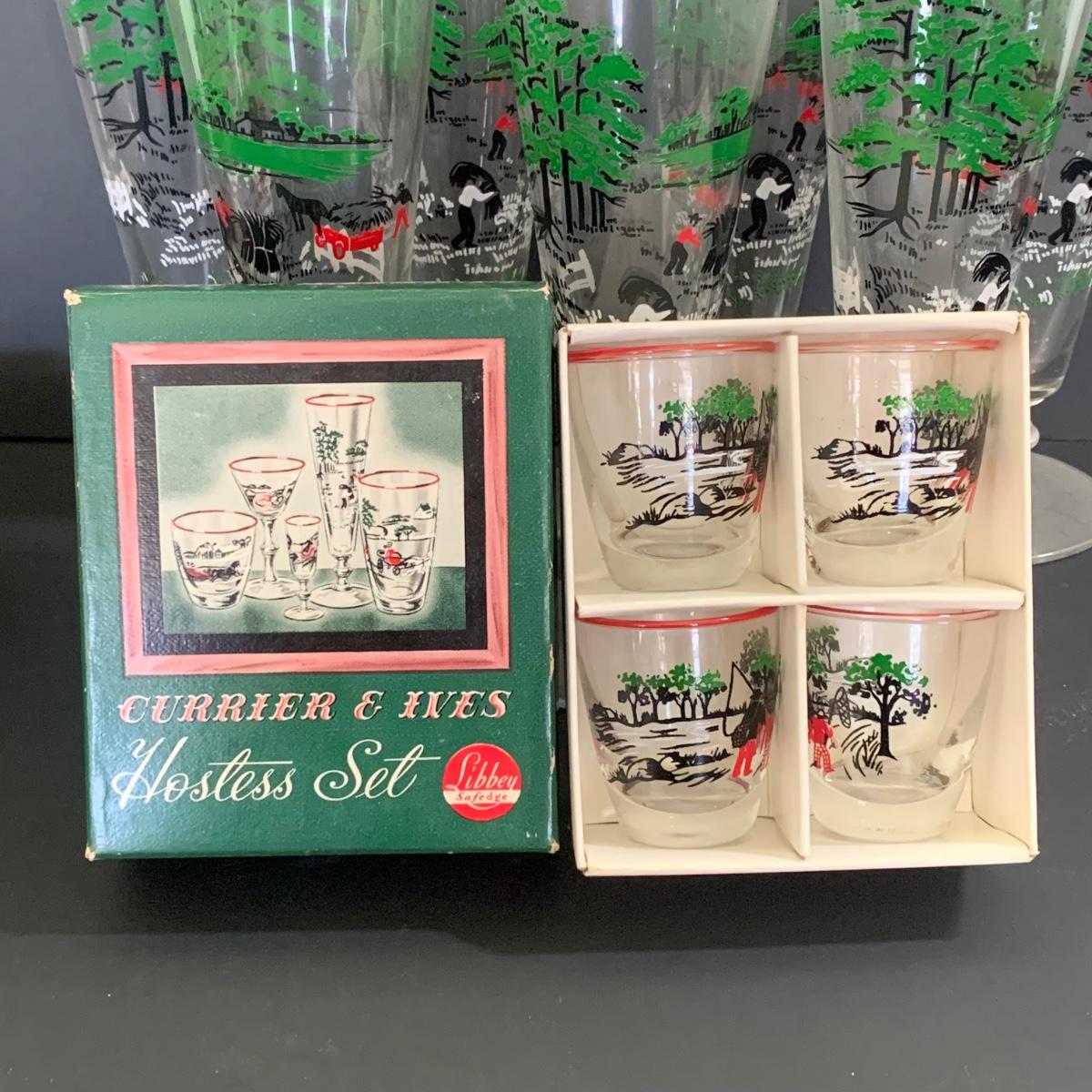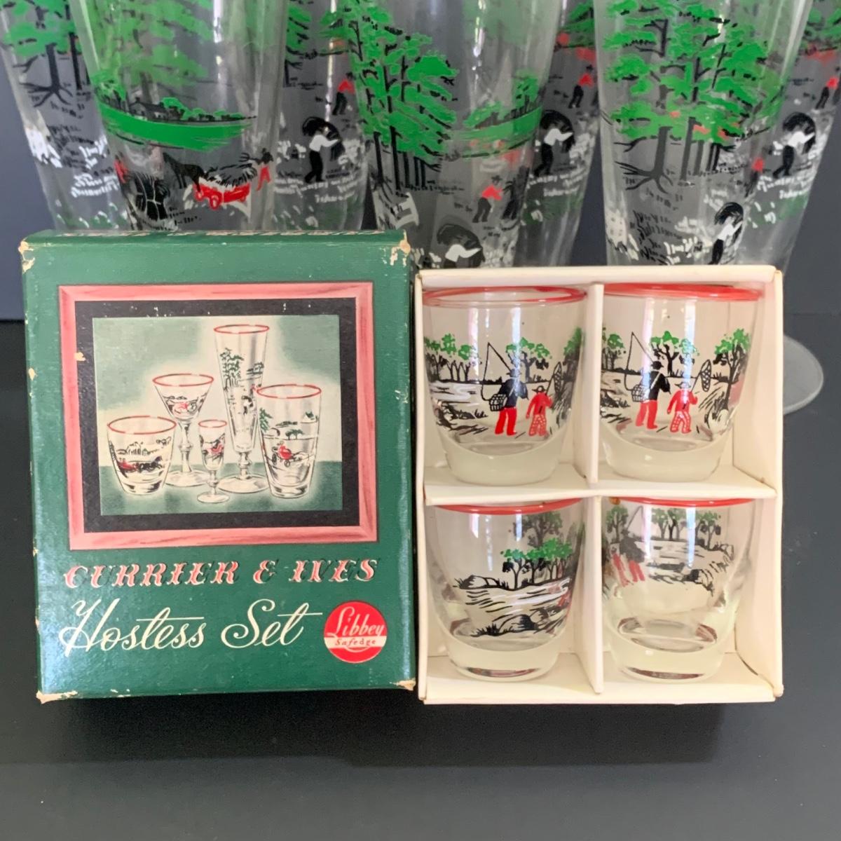LOT 71R: Libbey's Currier & Ives Glass Sets: Pilsner & Boxed Shot Glasses