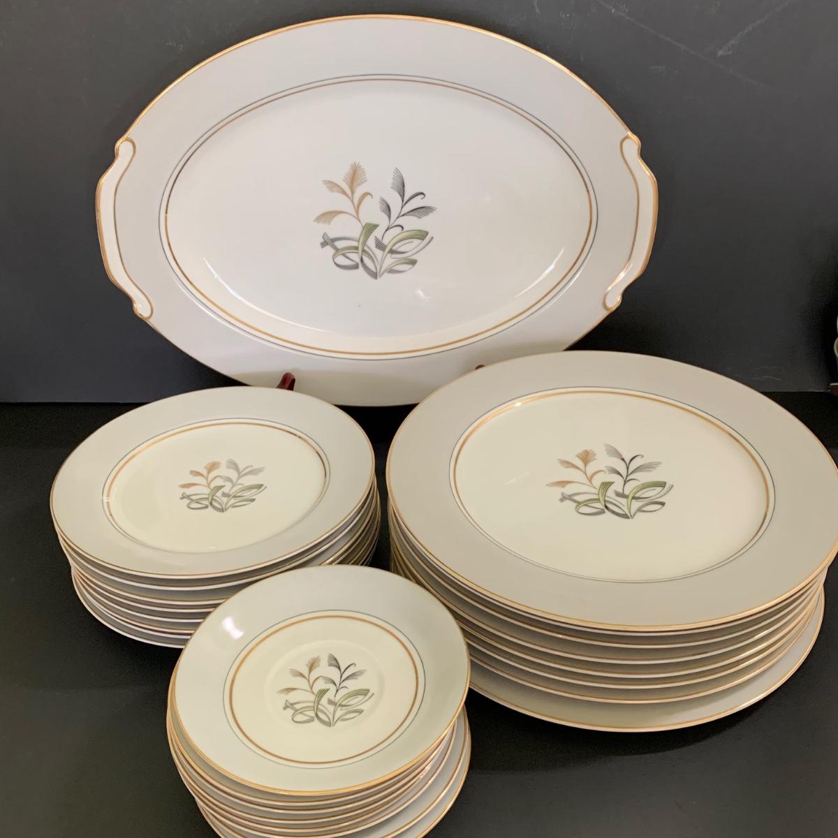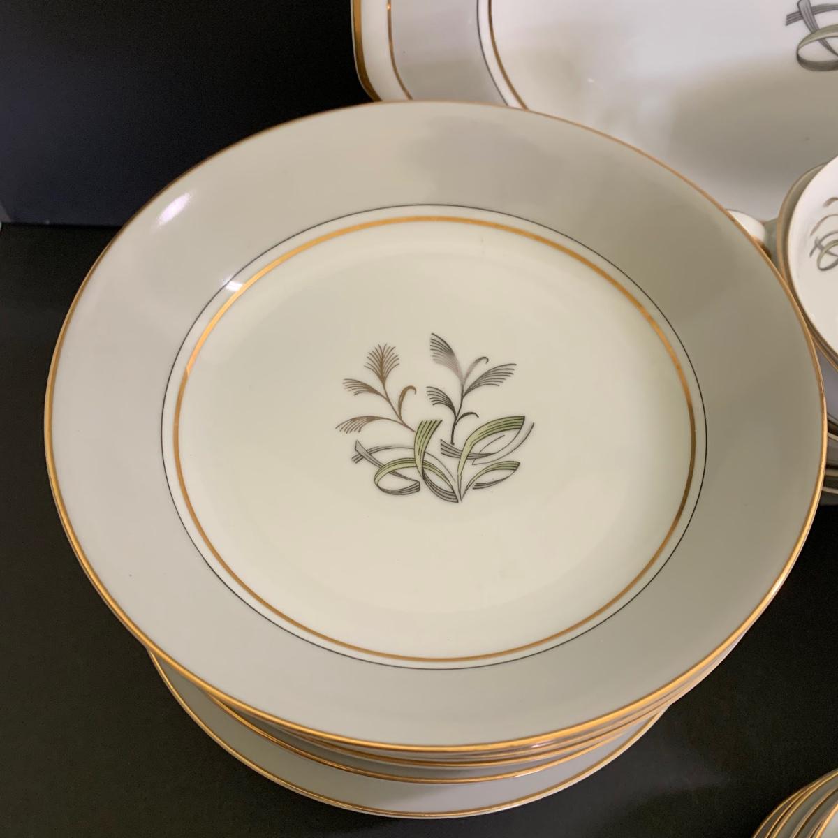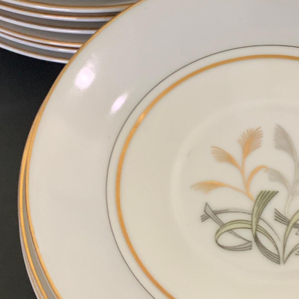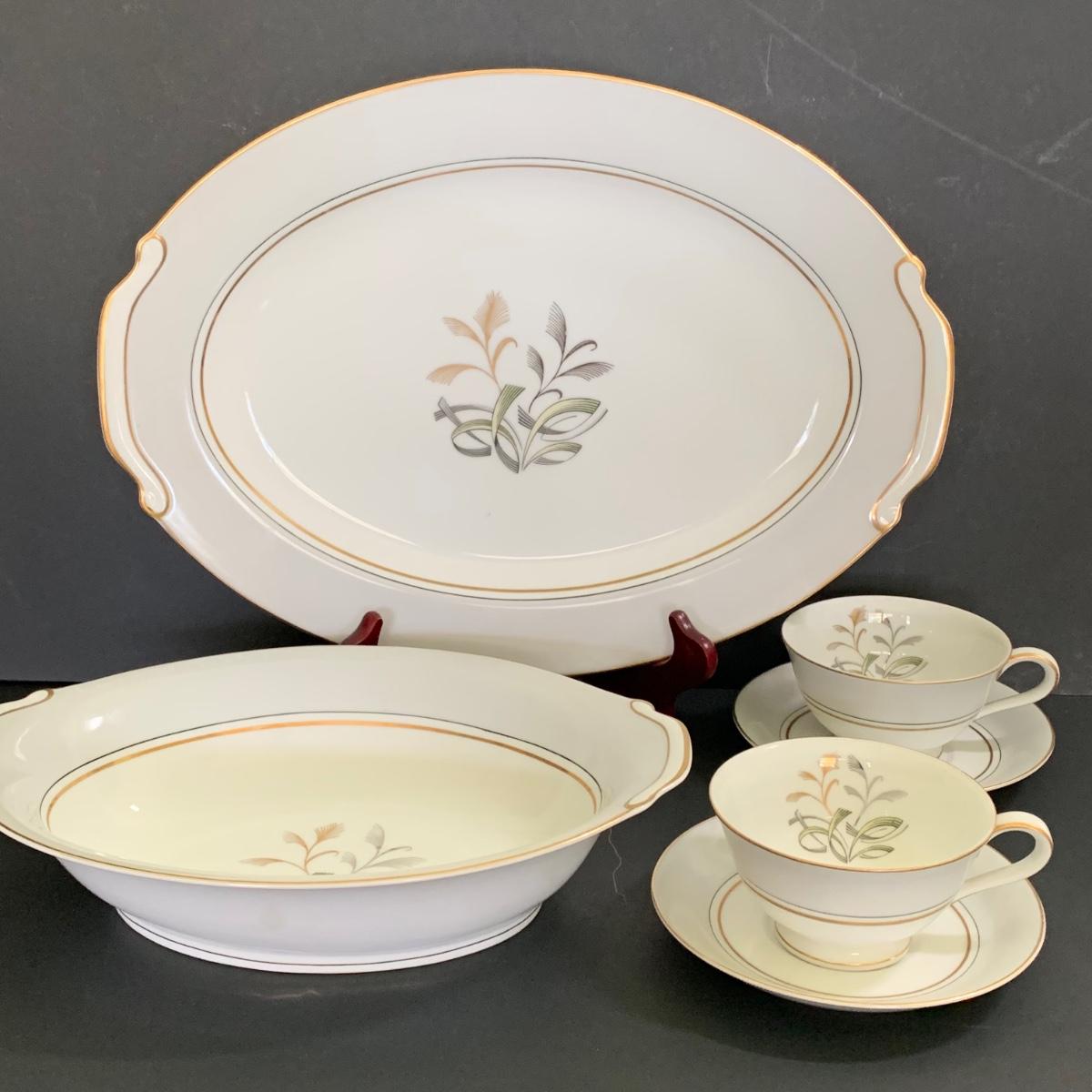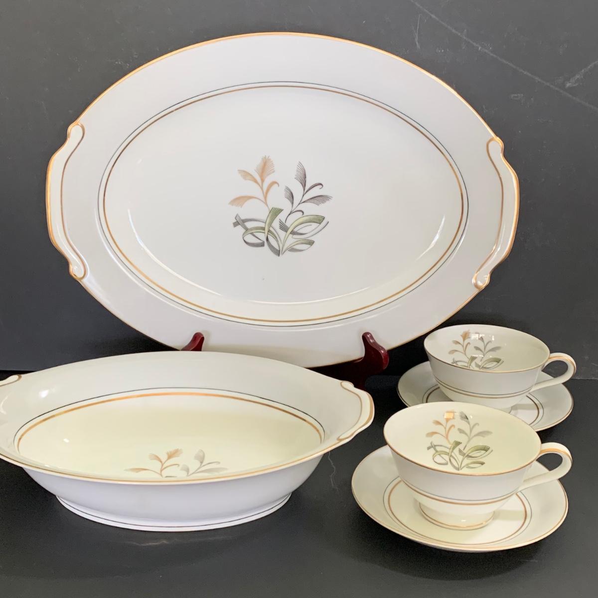 LOT 73R: Empress China, Japan Pair Saucers Manhasset Gold & Silver Feathered Leaves