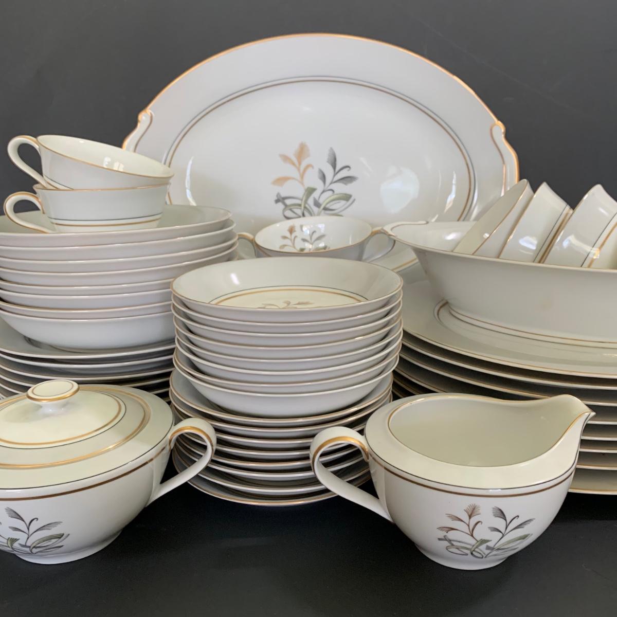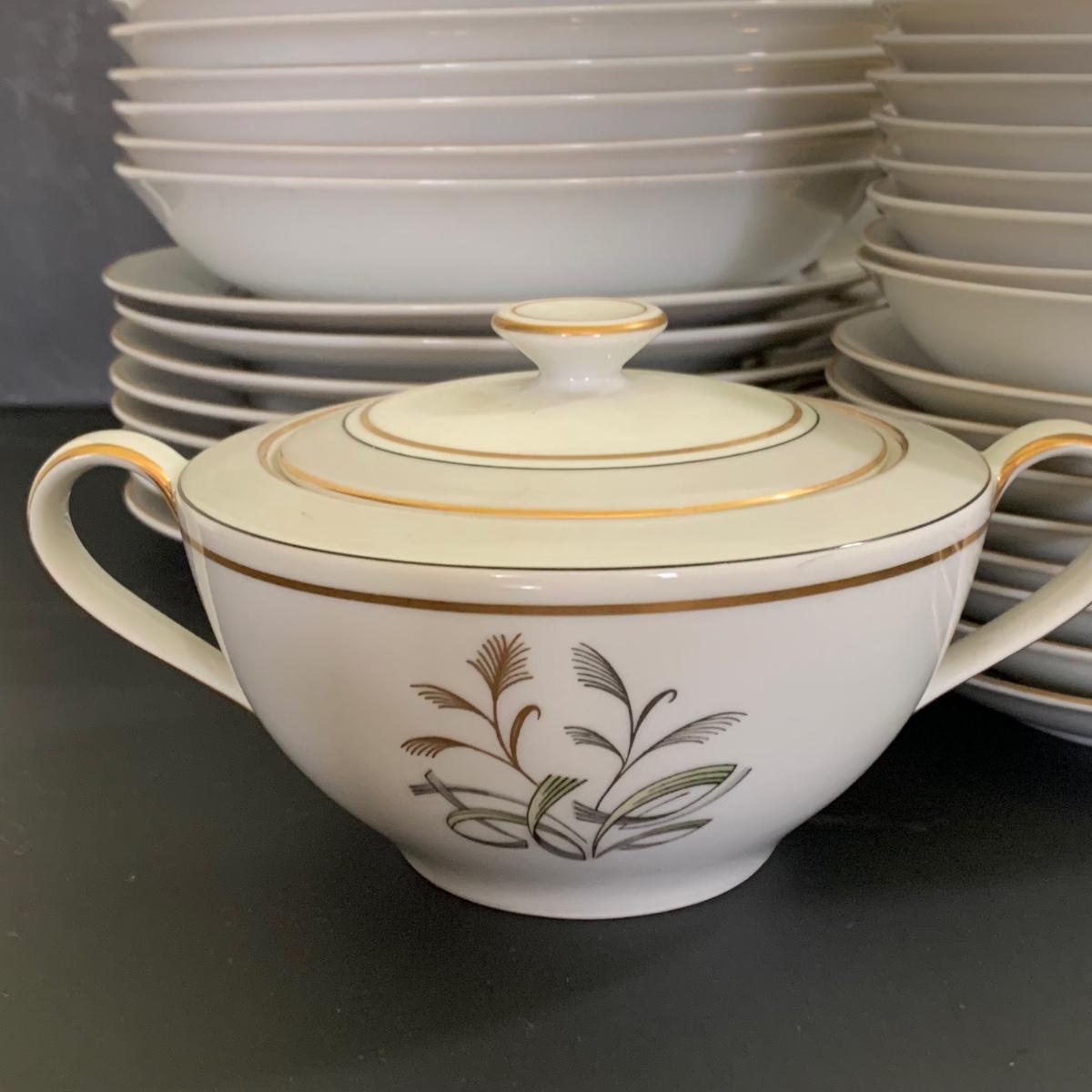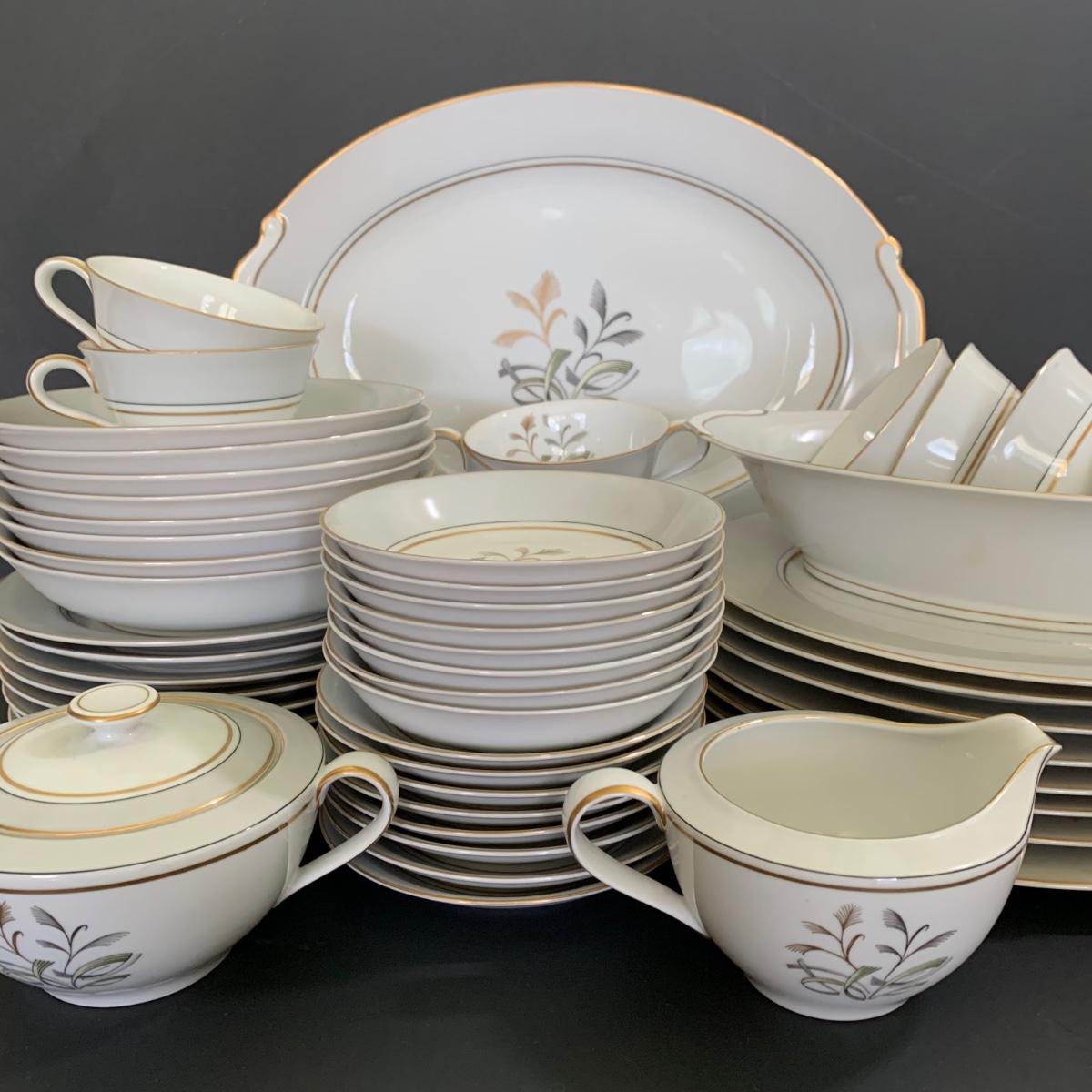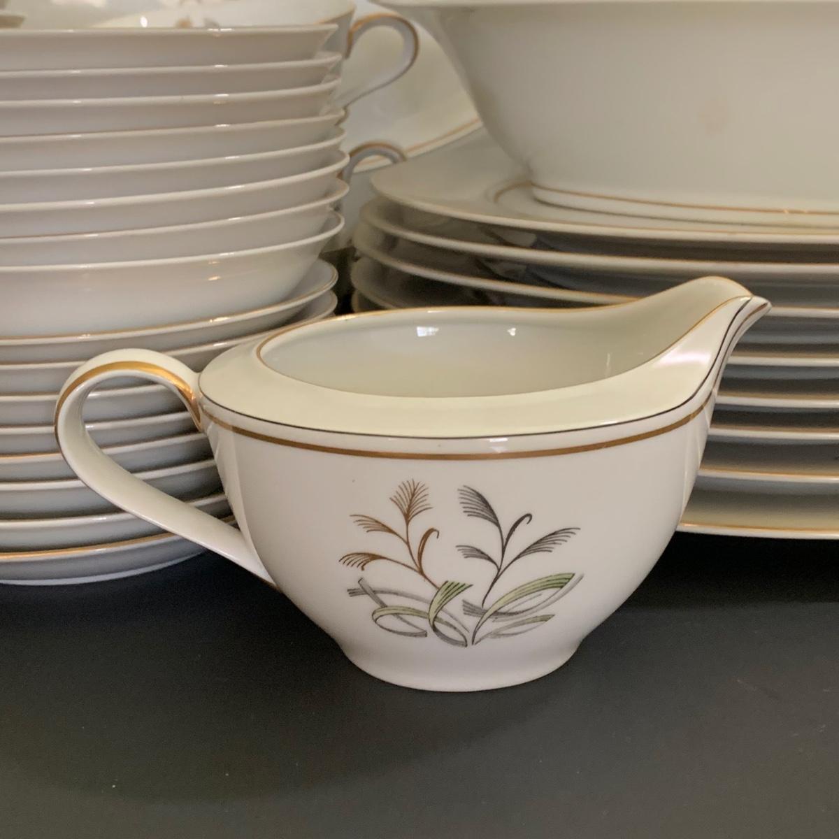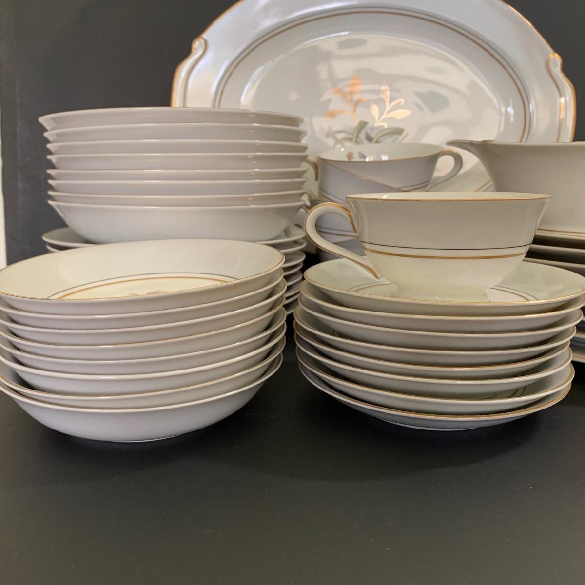 LOT 73R: Empress China, Japan Pair Saucers Manhasset Gold & Silver Feathered Leaves