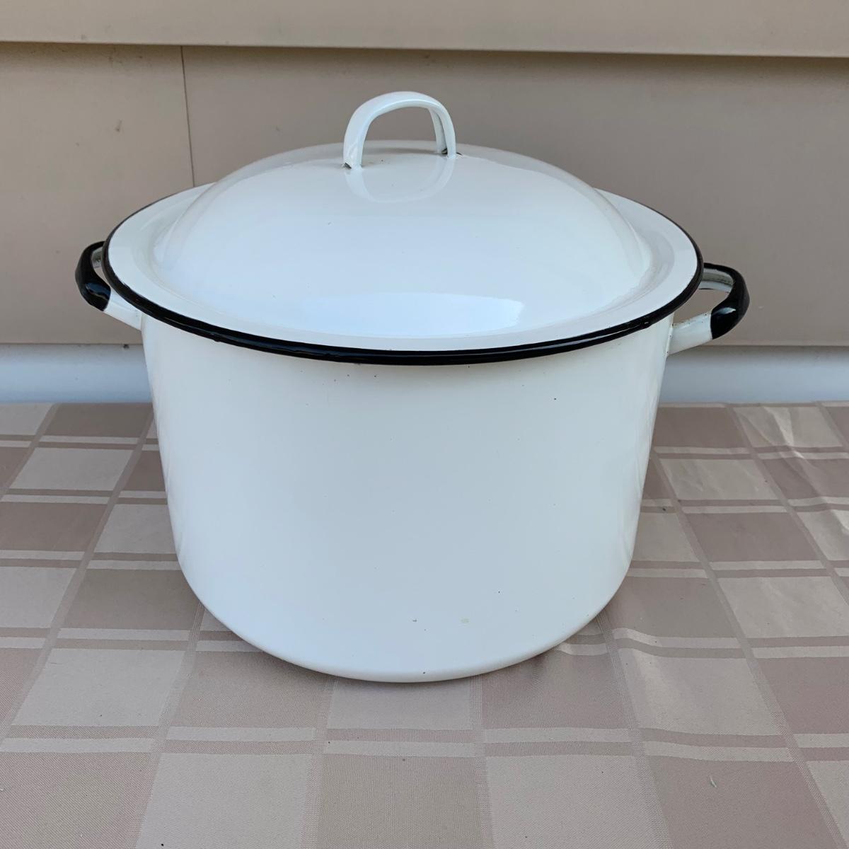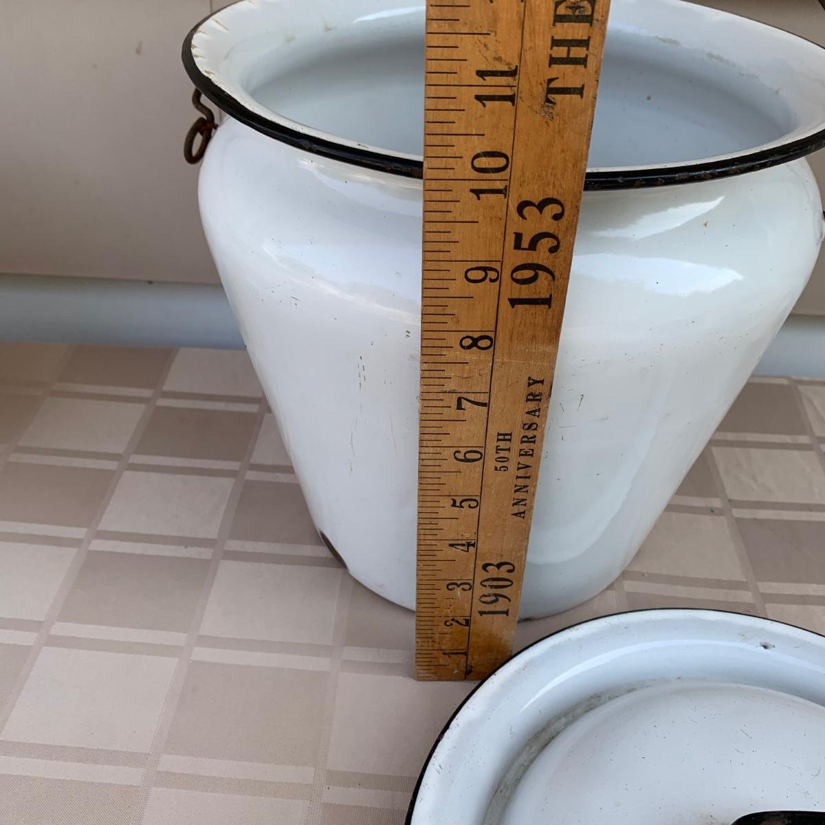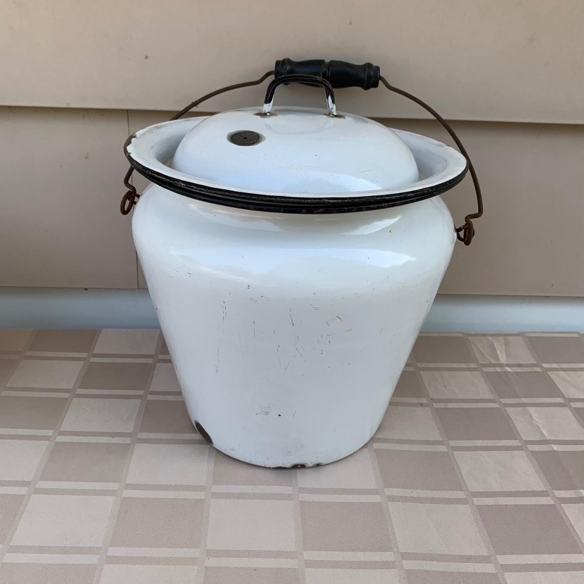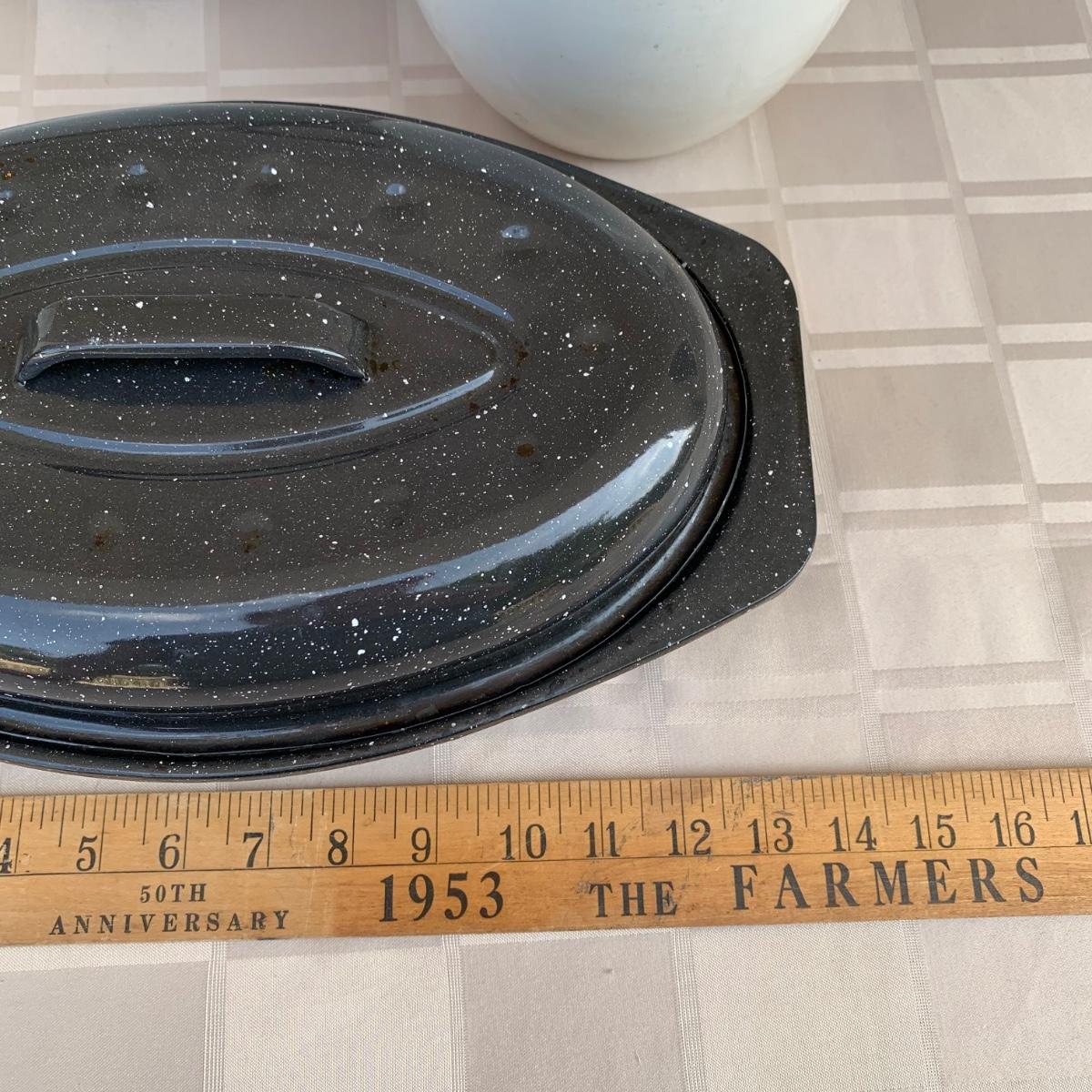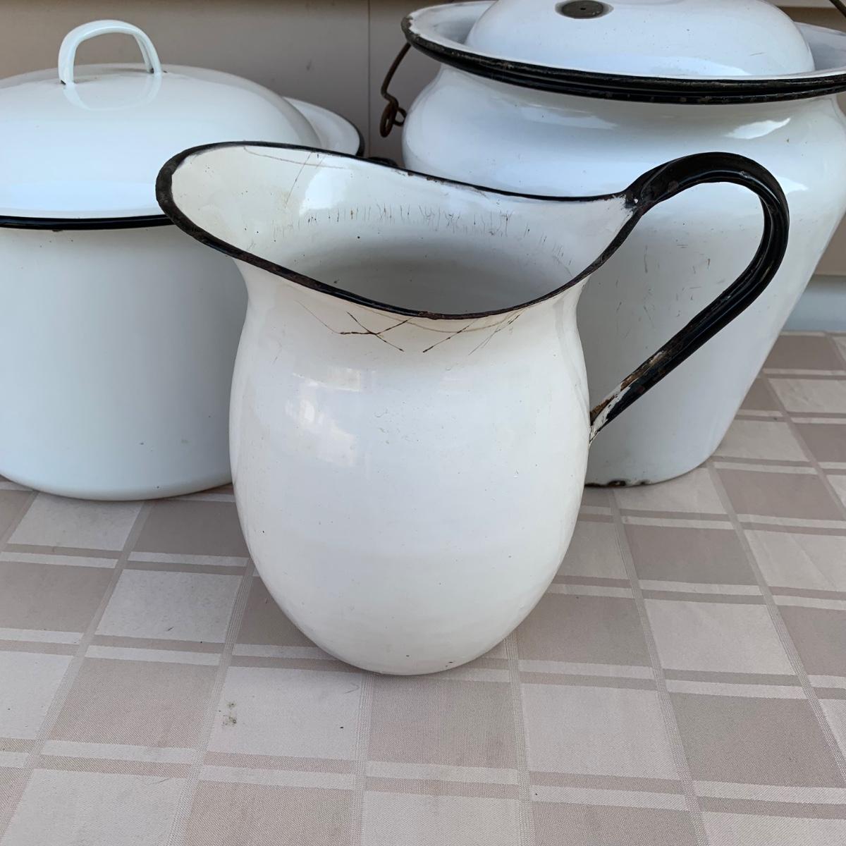 LOT 94R: Enamel Ware Collection: Stock Pot, Chamber Pot, Pitcher & Roaster