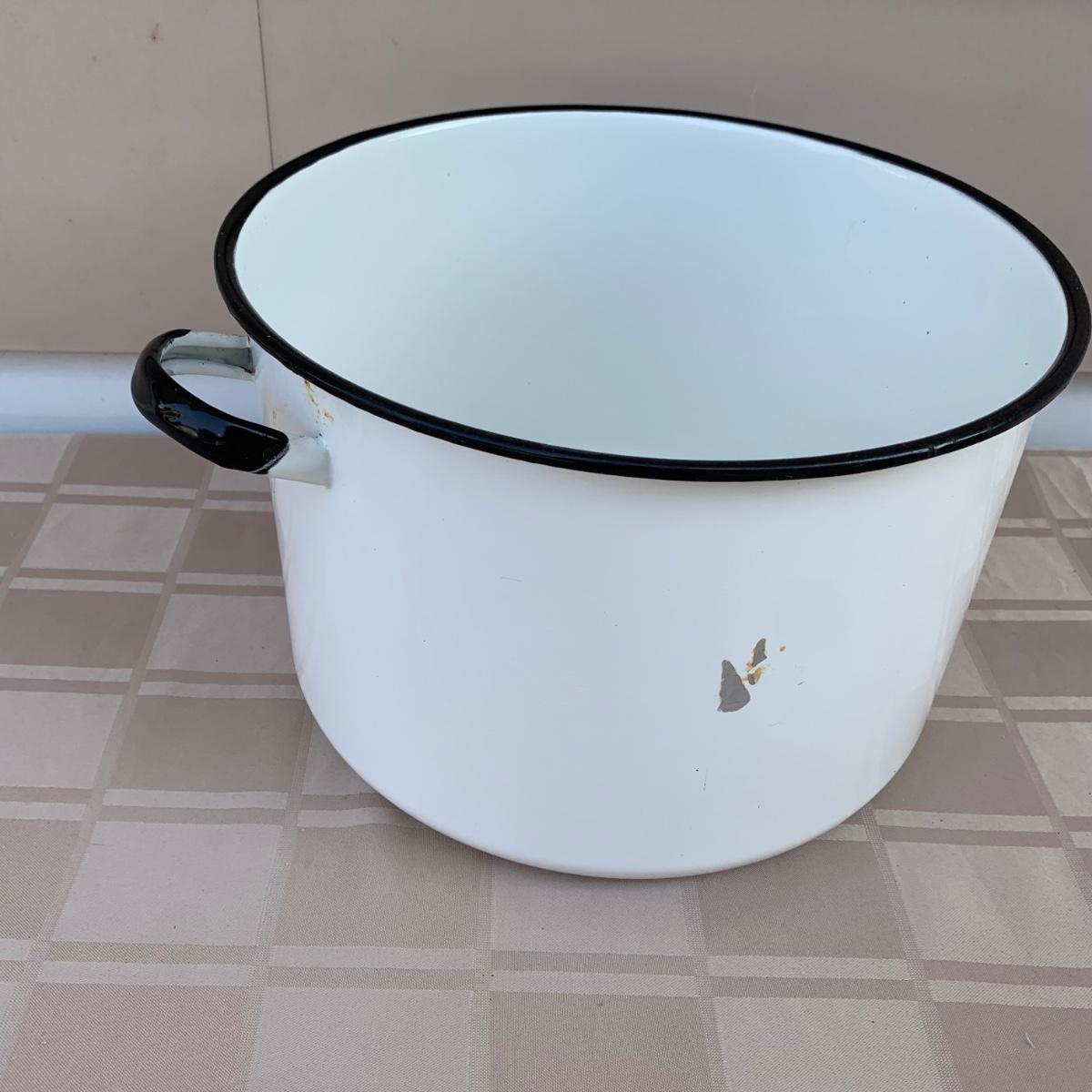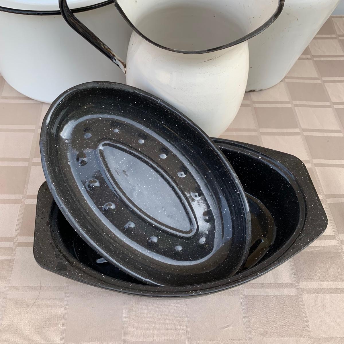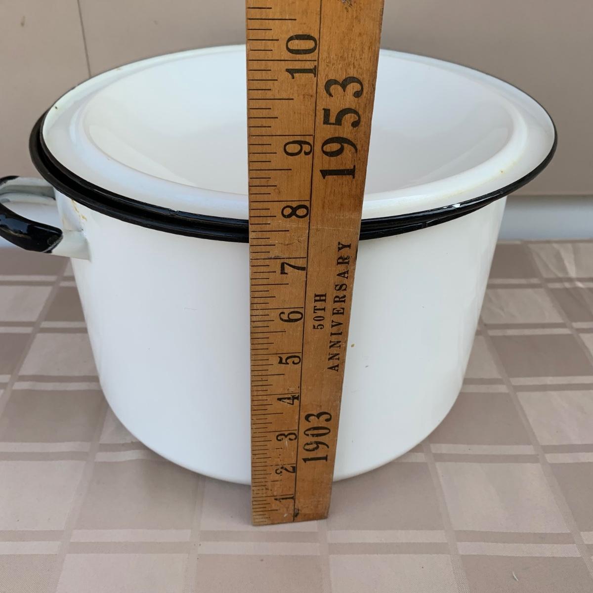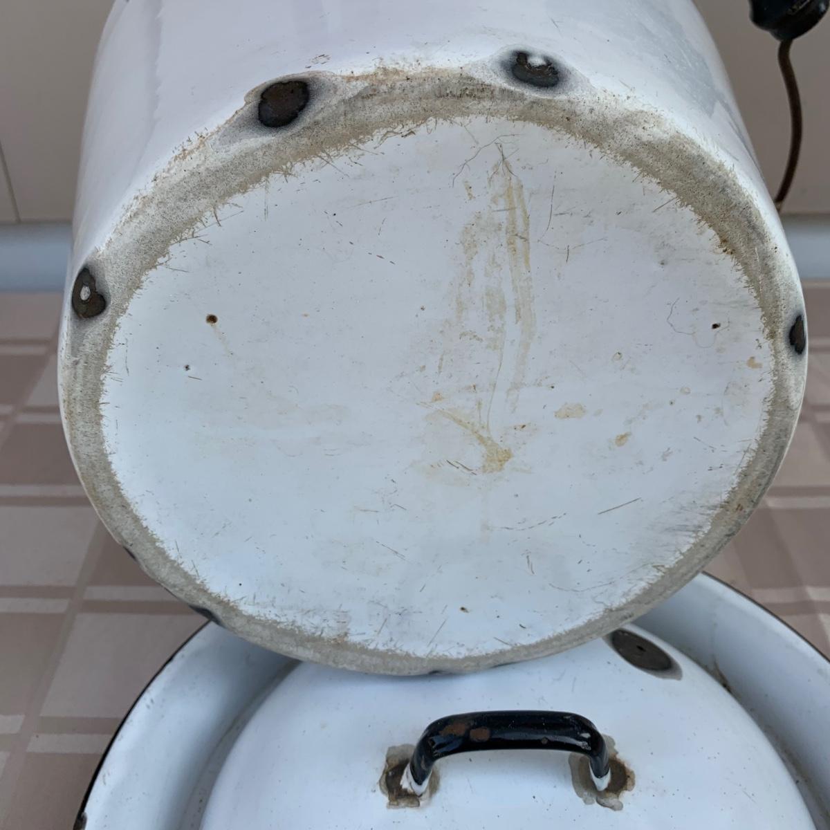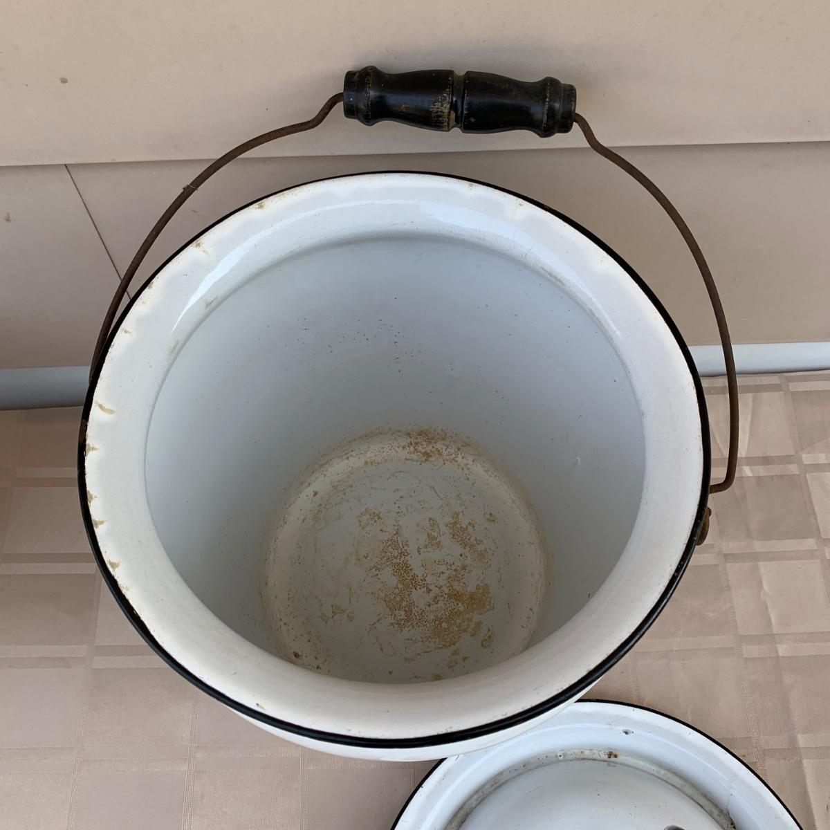 LOT 94R: Enamel Ware Collection: Stock Pot, Chamber Pot, Pitcher & Roaster