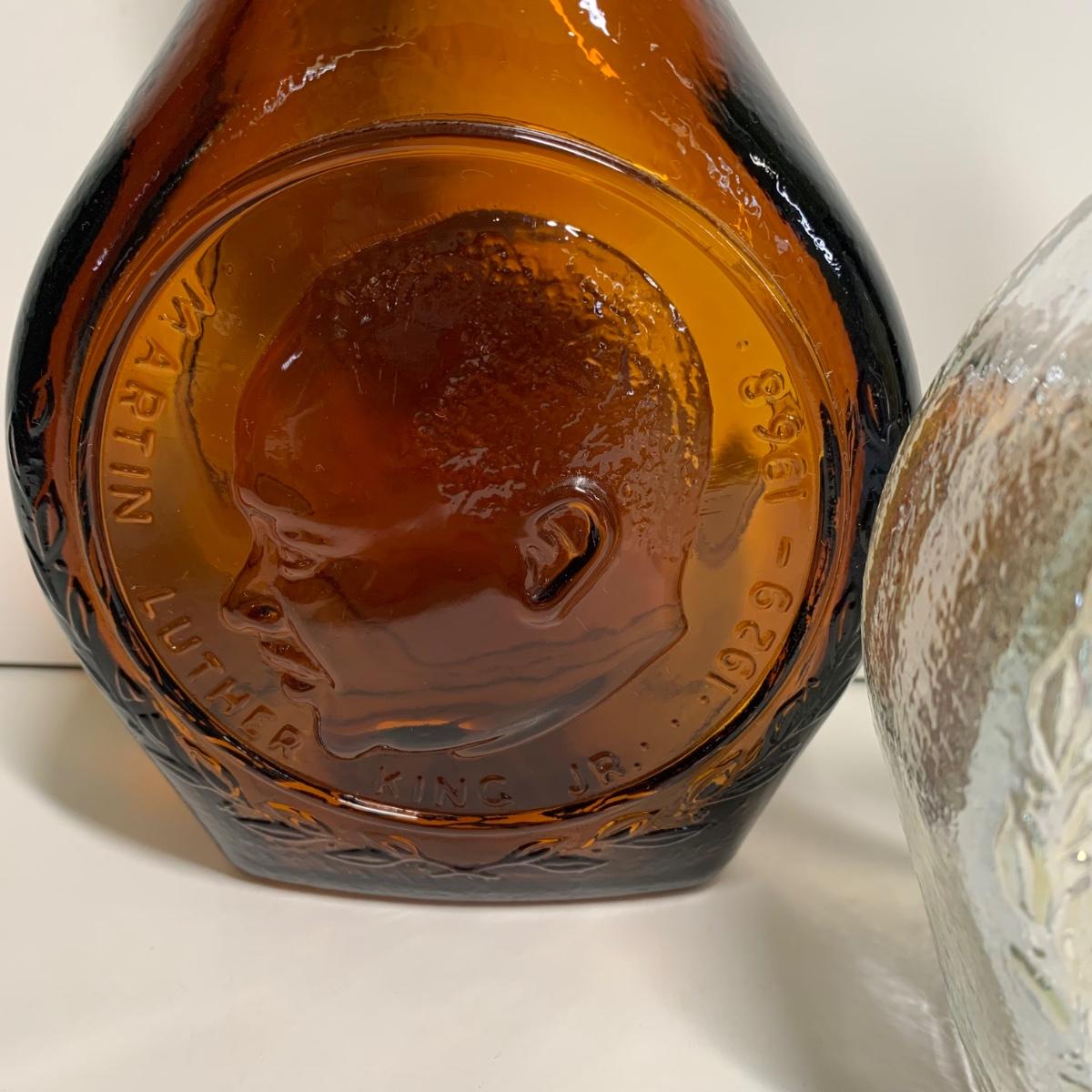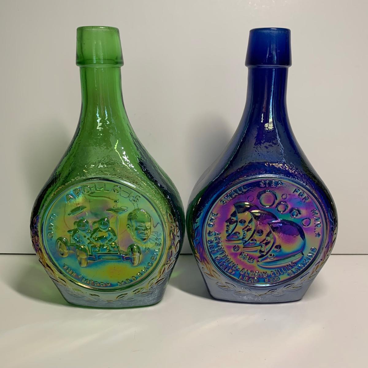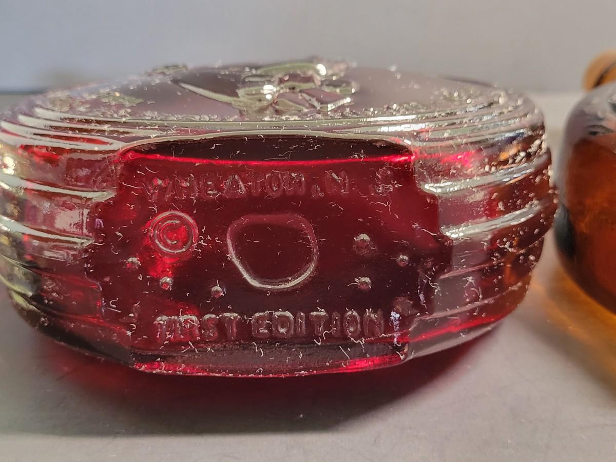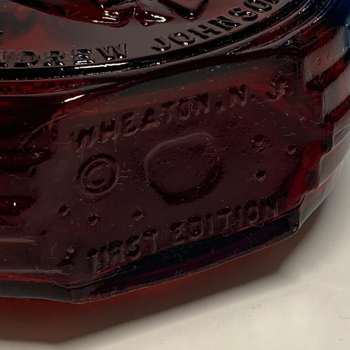 LOT::127: Collection of 6 Wheaton Colored Glass Bottles Featuring Icon Figures and Historical Events