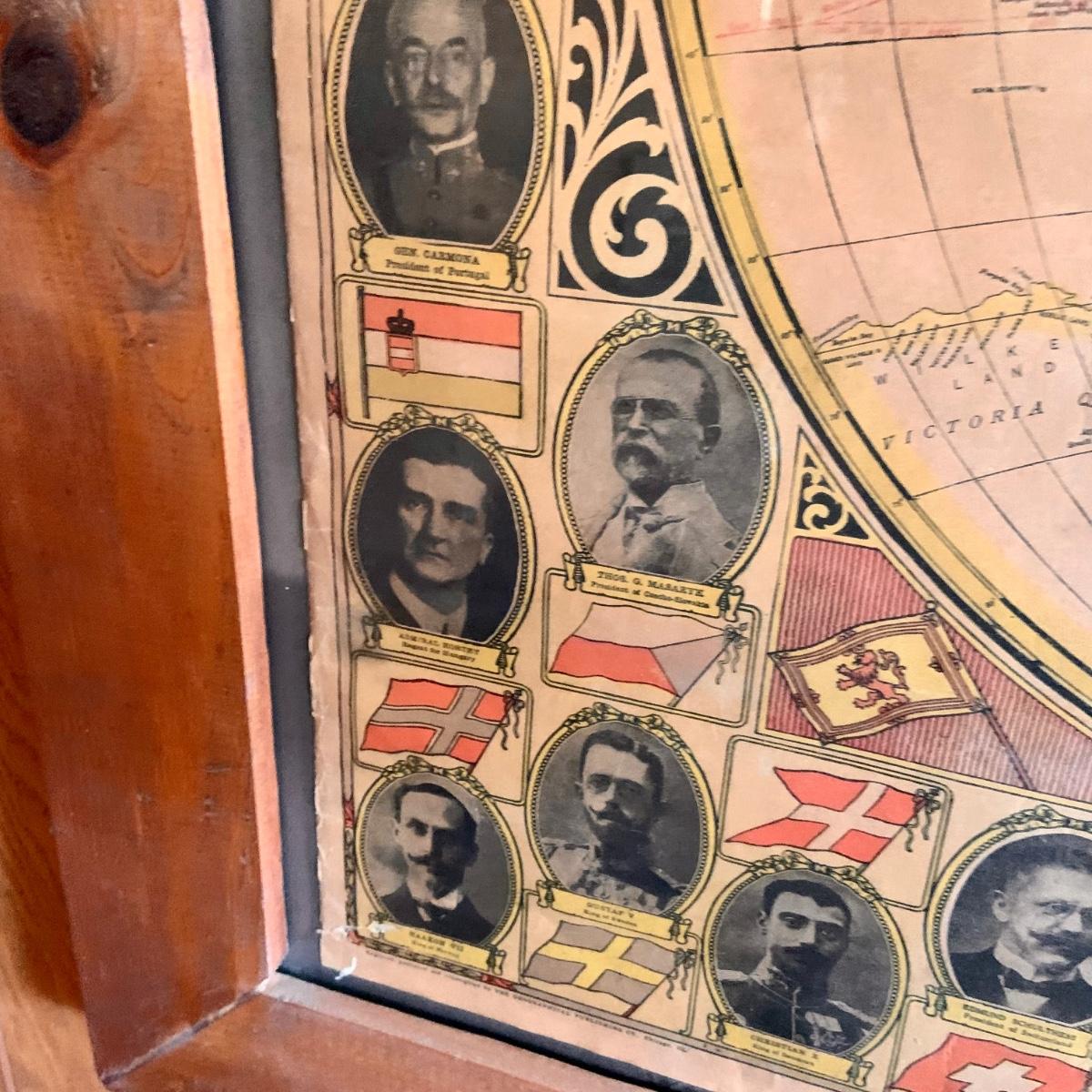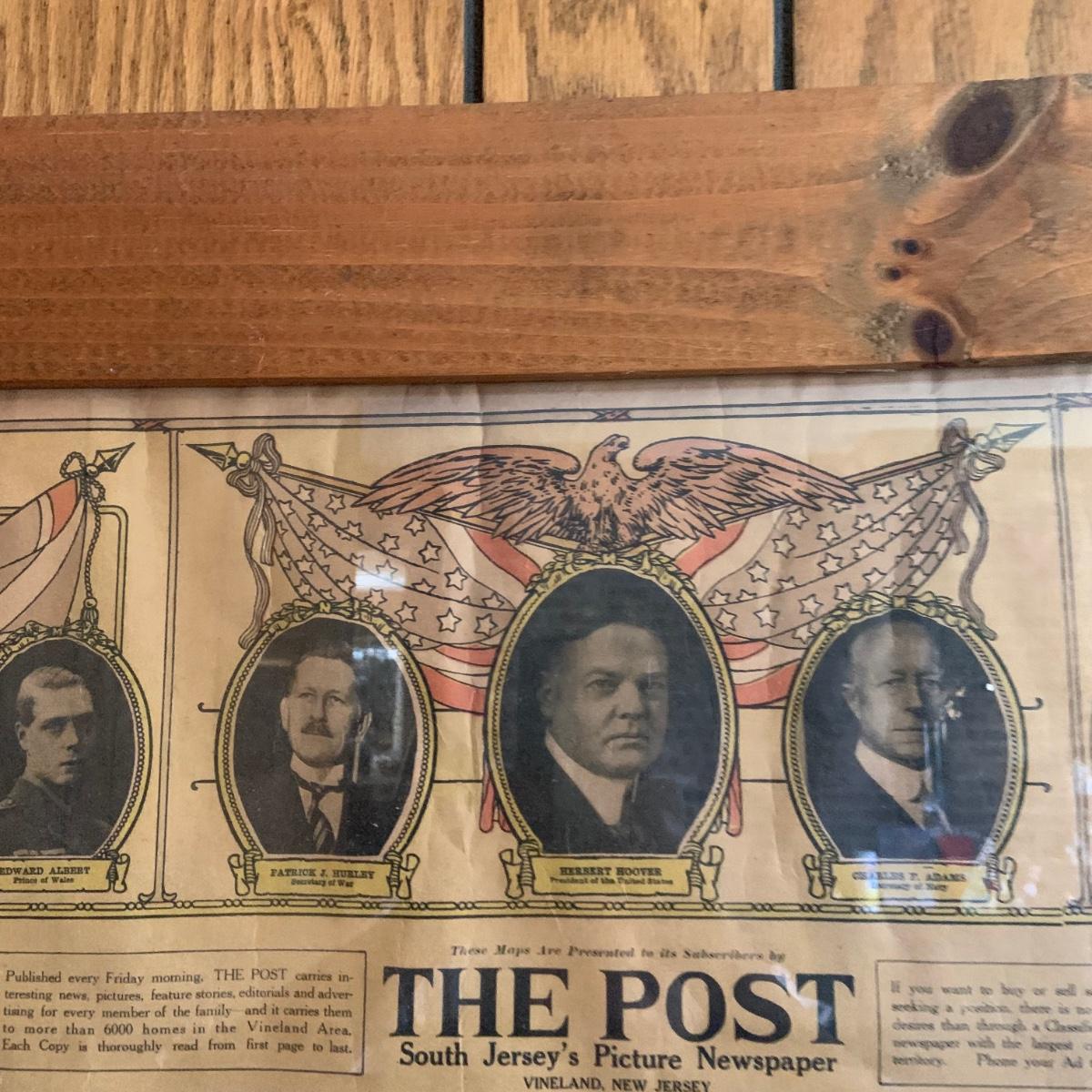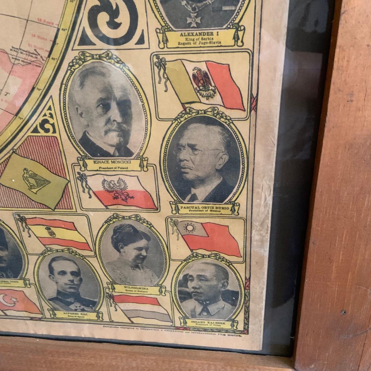 LOT:136G: Wood Framed Vingae New Paper Poster of Wold leaders Circa 1930's