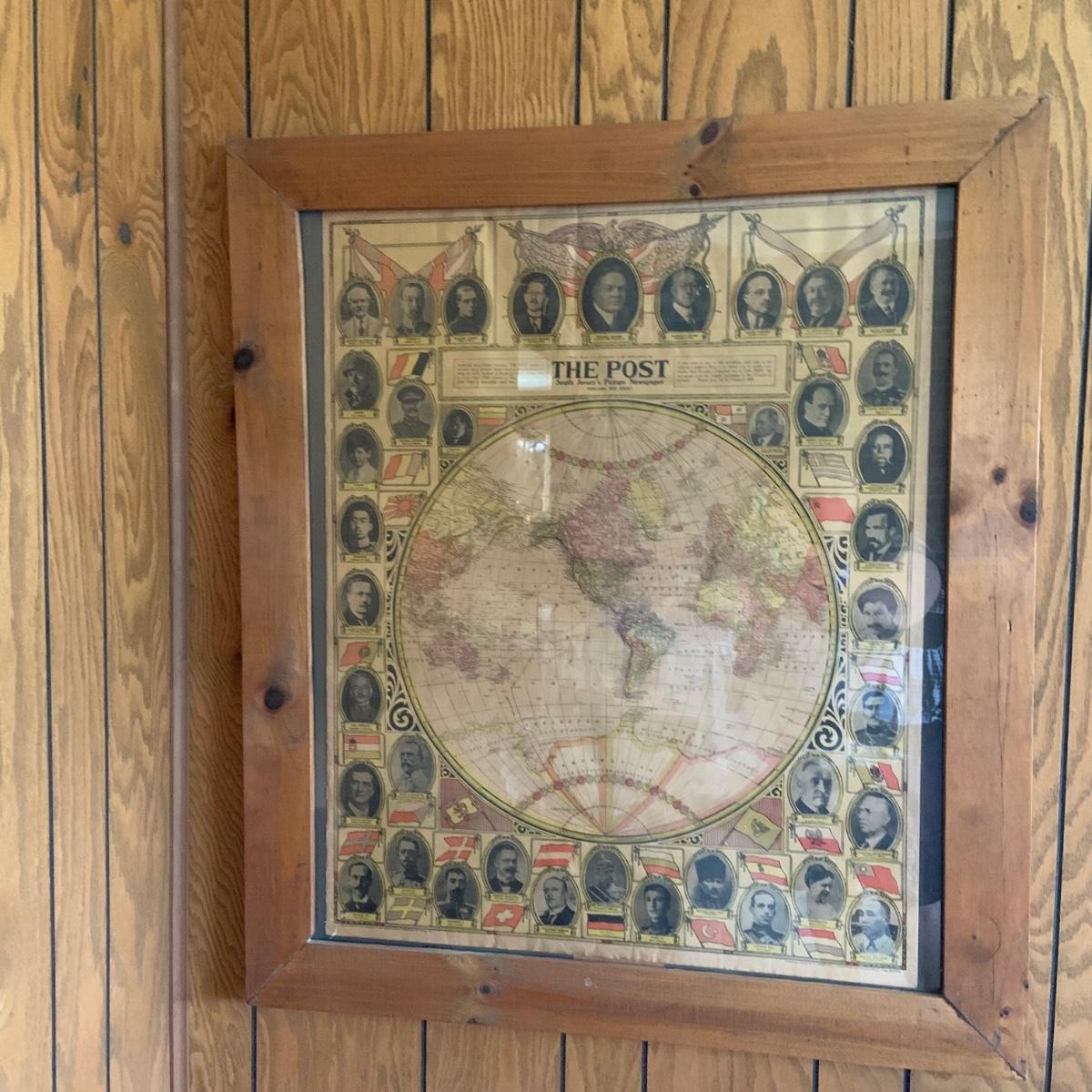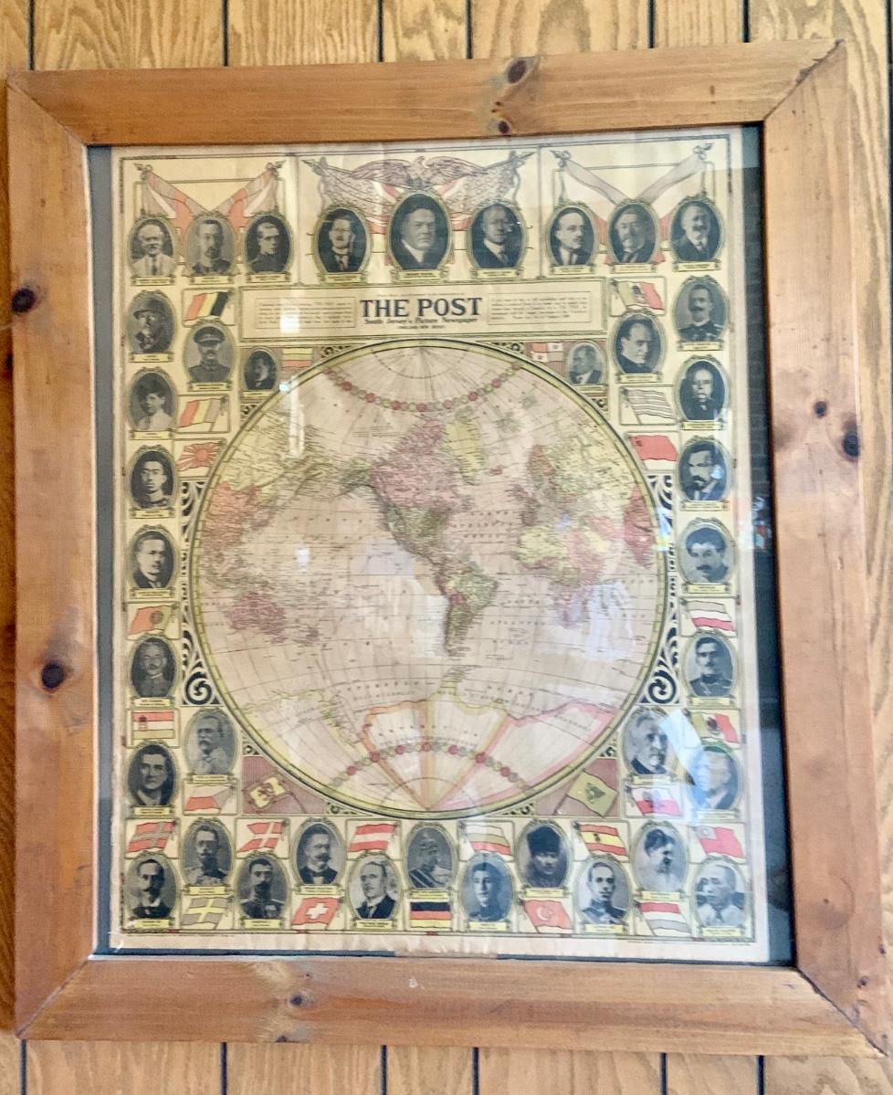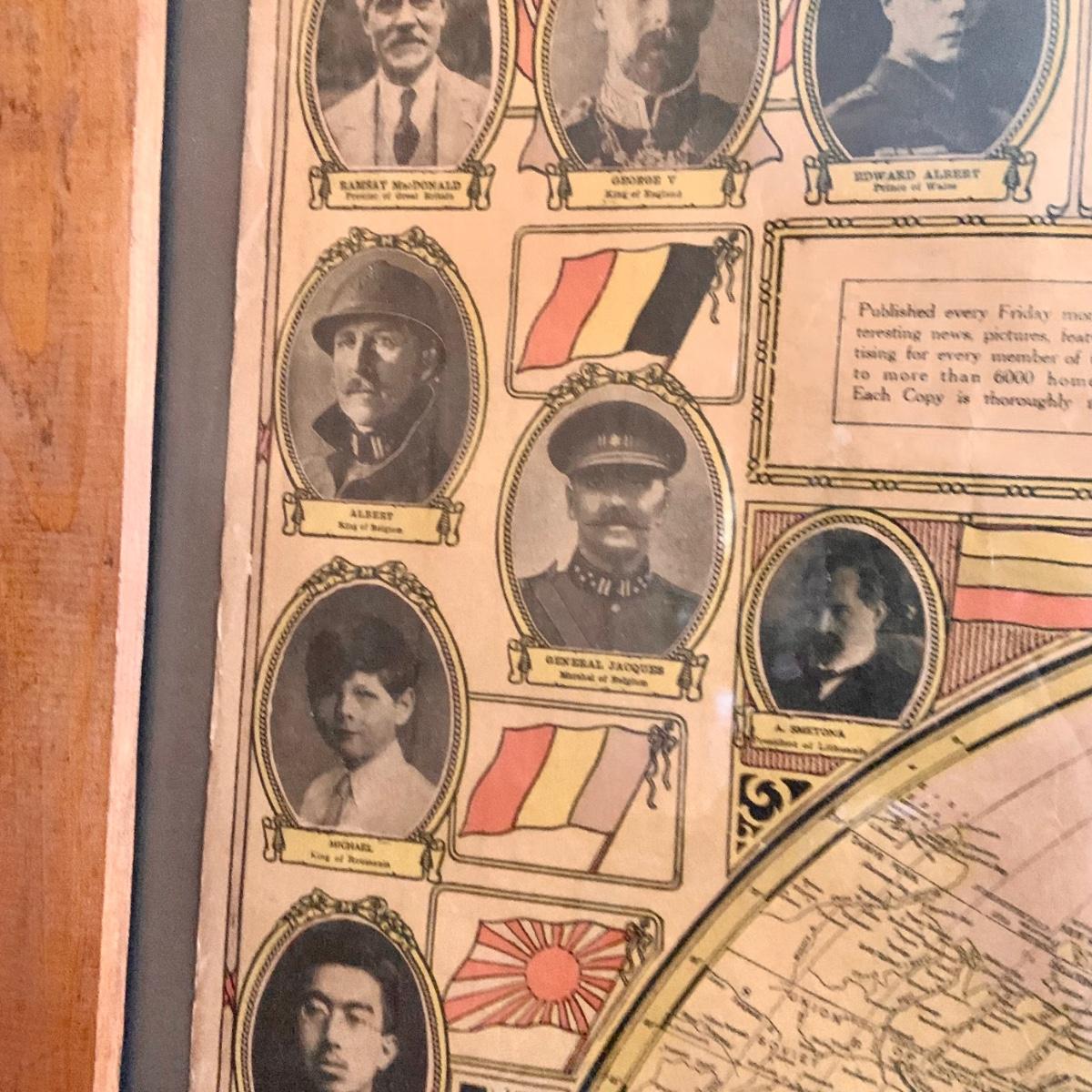 LOT:136G: Wood Framed Vingae New Paper Poster of Wold leaders Circa 1930's