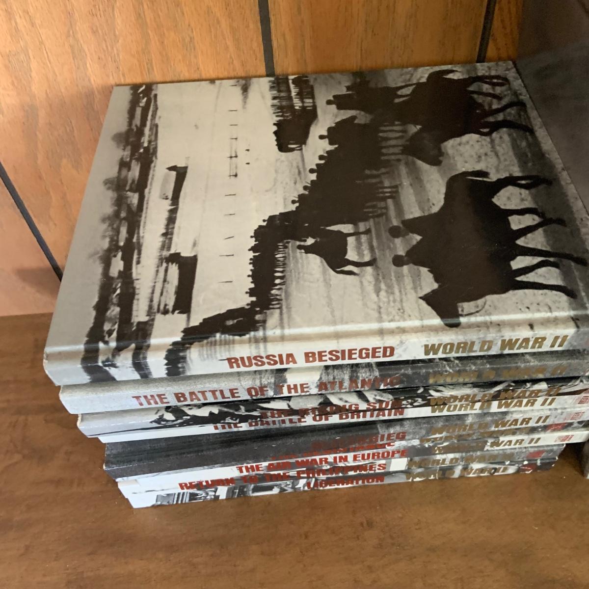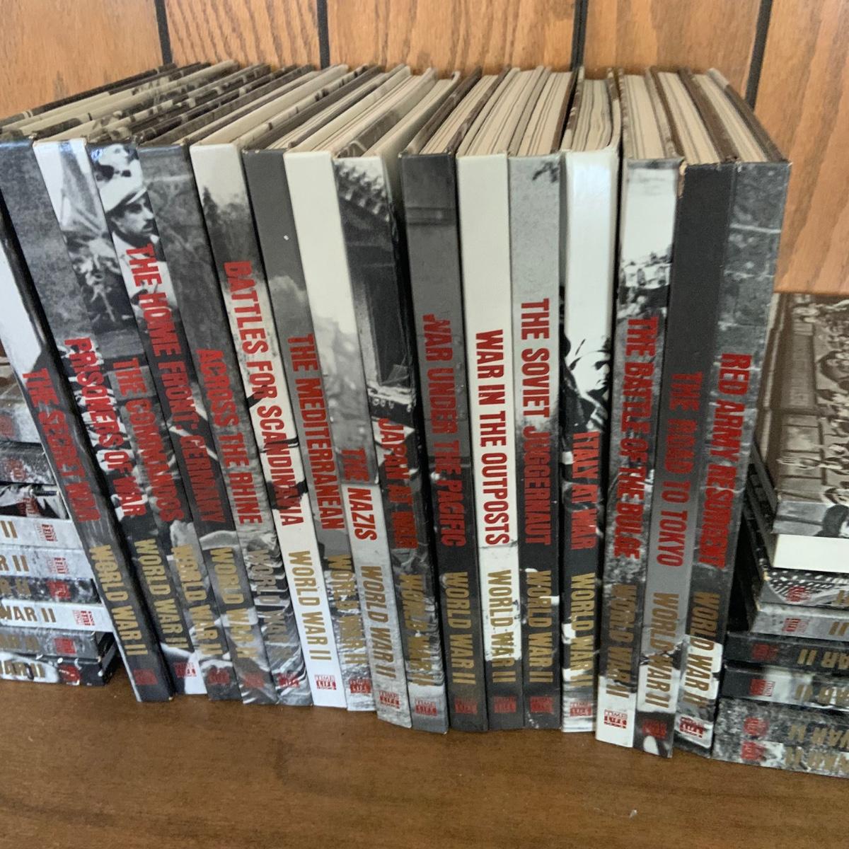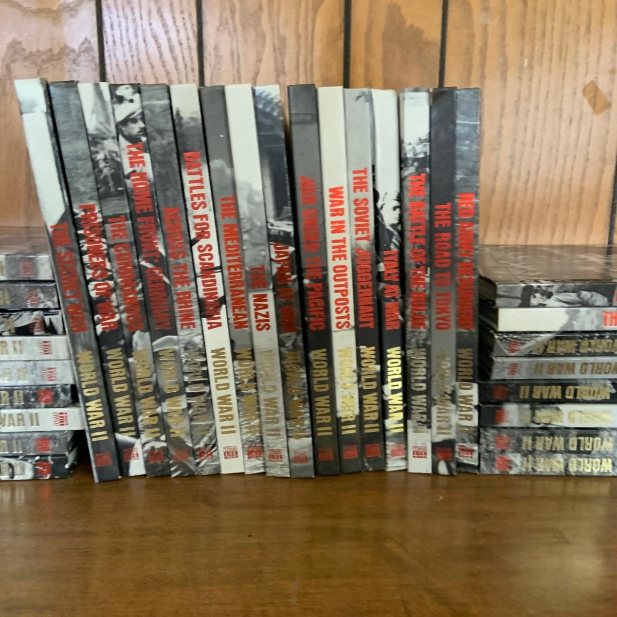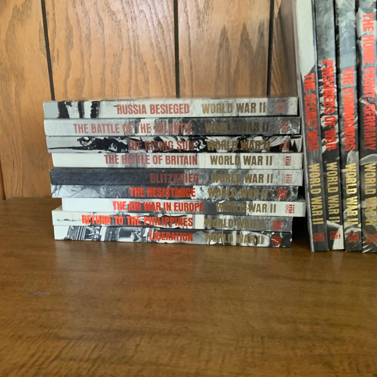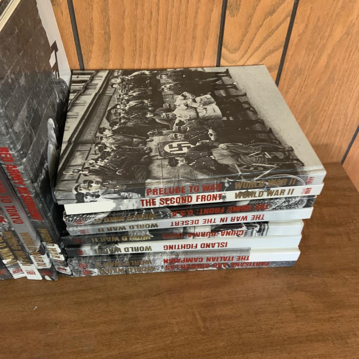 LOT:137: Wooden Desk and Chair with a Collection of Time Life World World War II Books