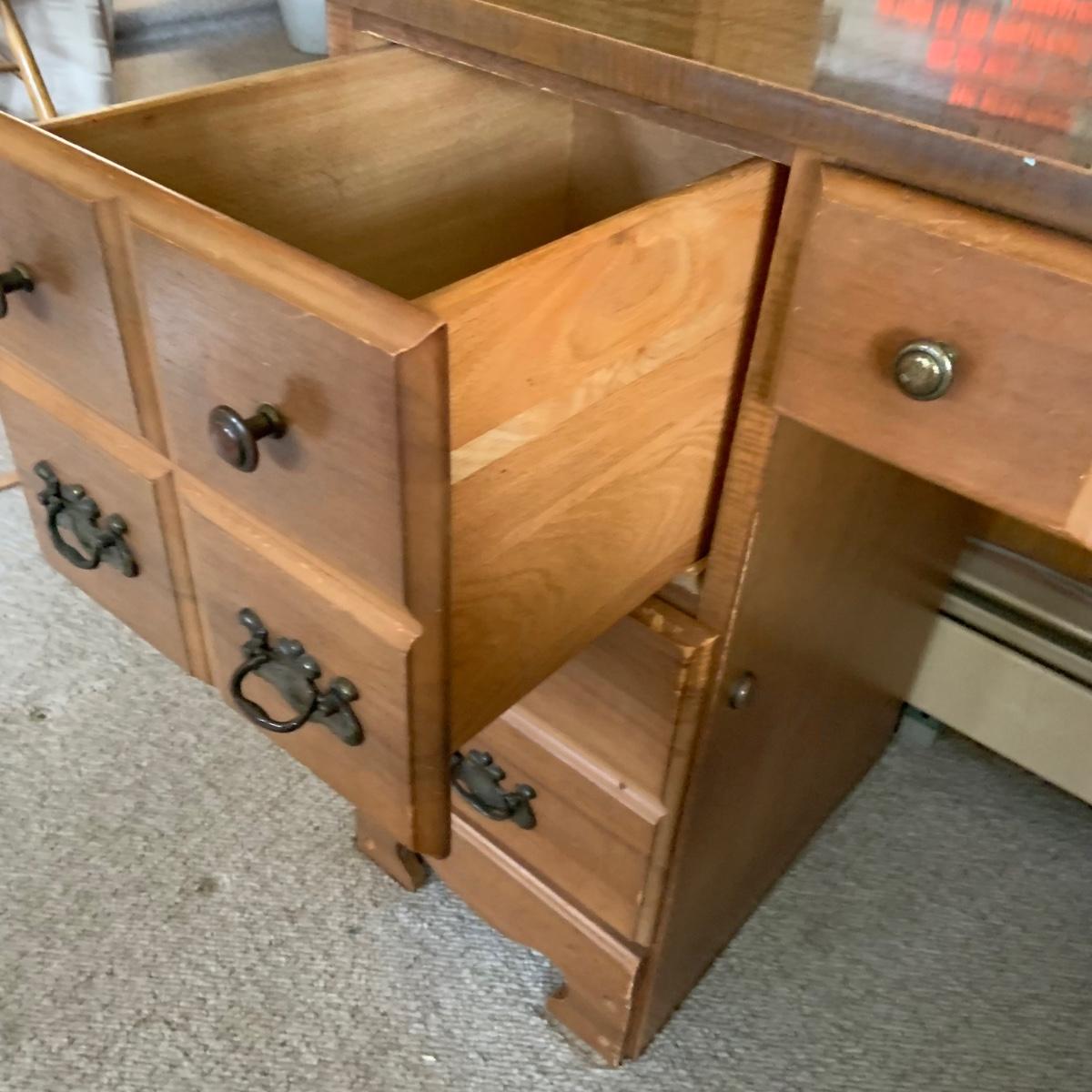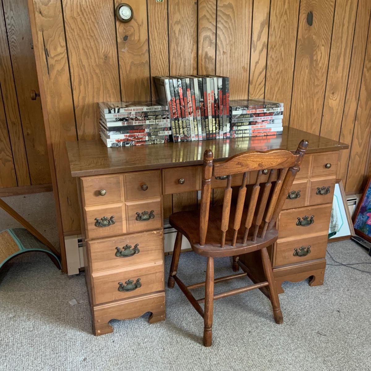 The Desk measures 48 x 20 x 30" and the Chair is 16 x 15 x x 32" Please see all pictures as they are the best representation of the items. The pictures show condition, measurements if taken, and what is included in the lot. Due to the large amount that we photograph and the time frame, we are not always able to take measurements. All items unless noted, are pre-owned and have been used. If you purchased furniture, you must bring help. We do not allow one person to carry large furniture out on their own. Bring help, tools and a truck for the safety of our client’s homes, and your personal safety. Any damages that result to the property including walls, and floors due to moving of the furniture will be charged to the buyer. Company policy. Thank you.