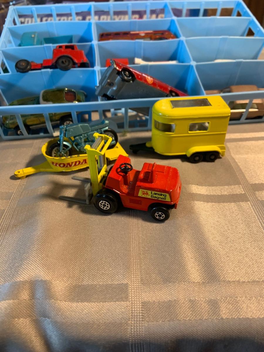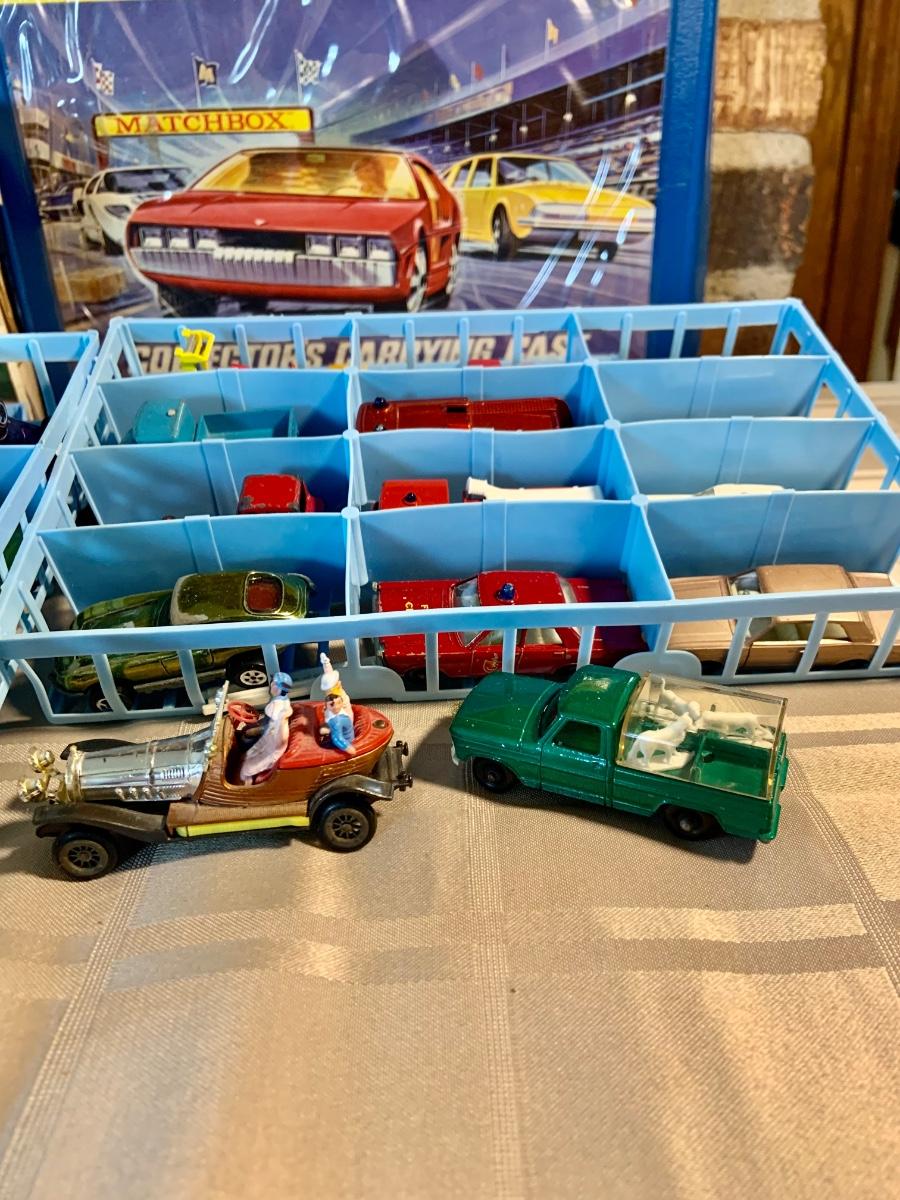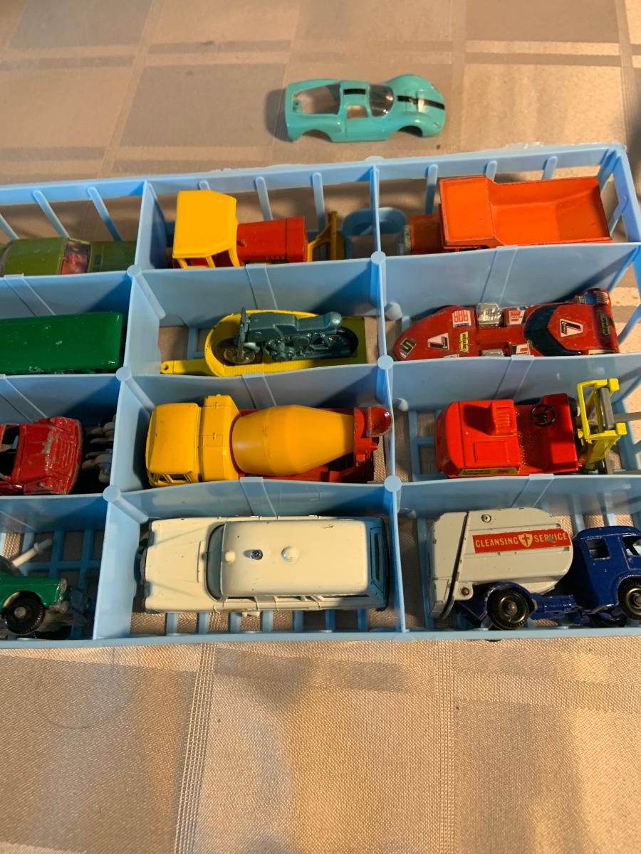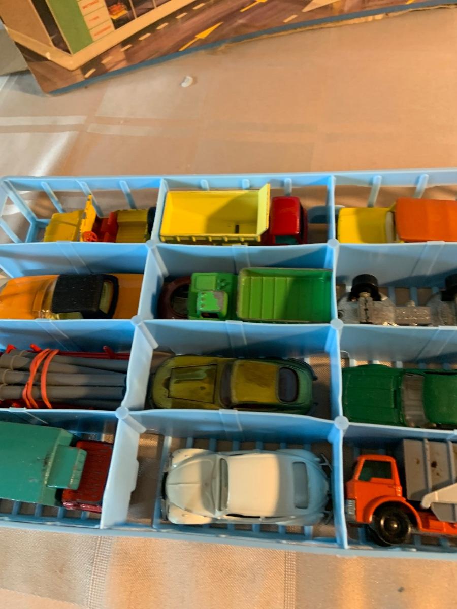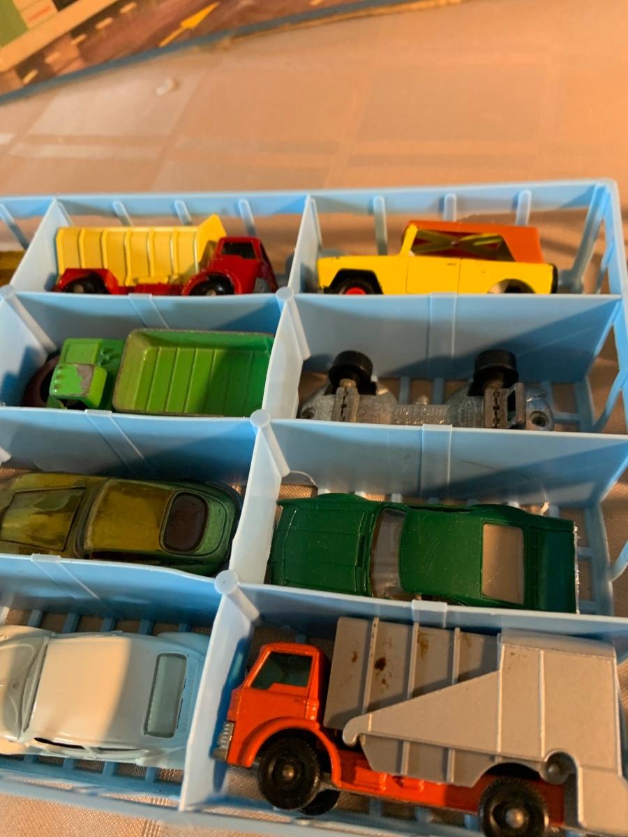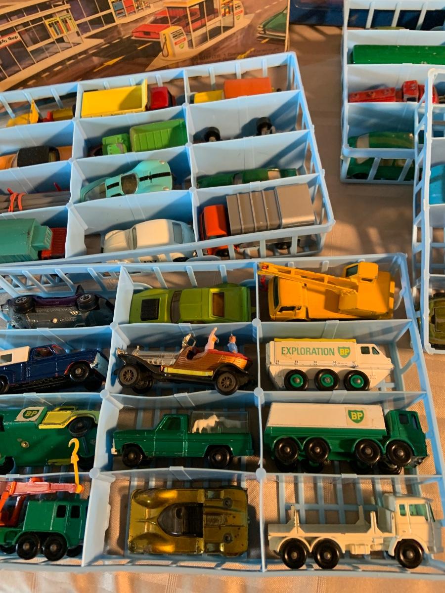 LOT:141: Matchbox Collection Including a Carring Case Loaded with Vintage Cars and a Service Station in Original Box