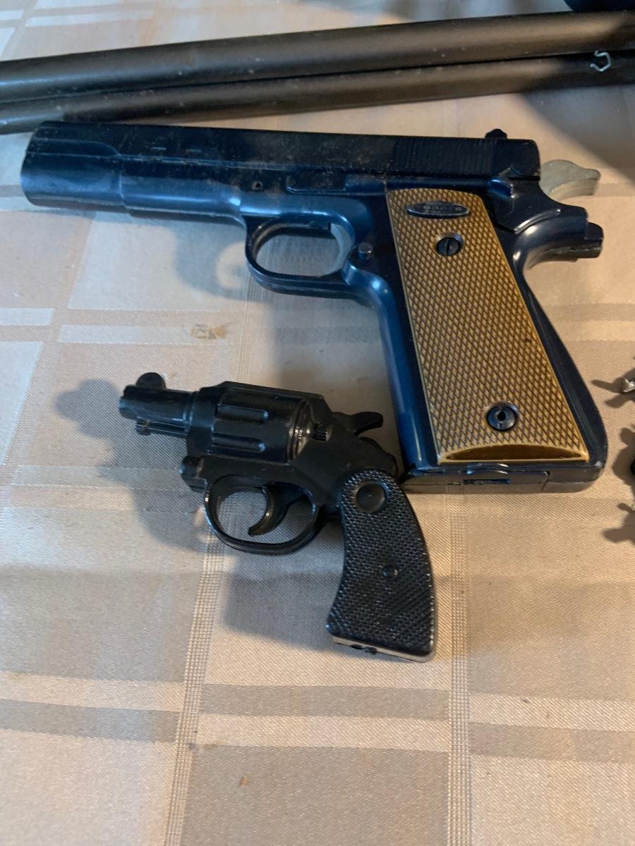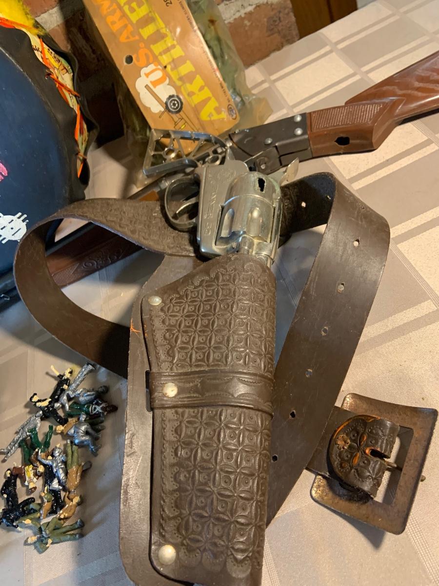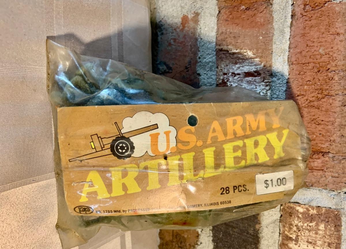 LOT:144G: Vintage Toy Guns, Army Men in Package and Drum