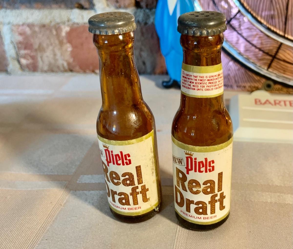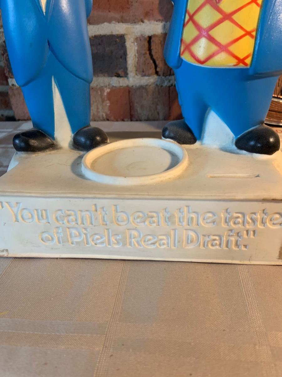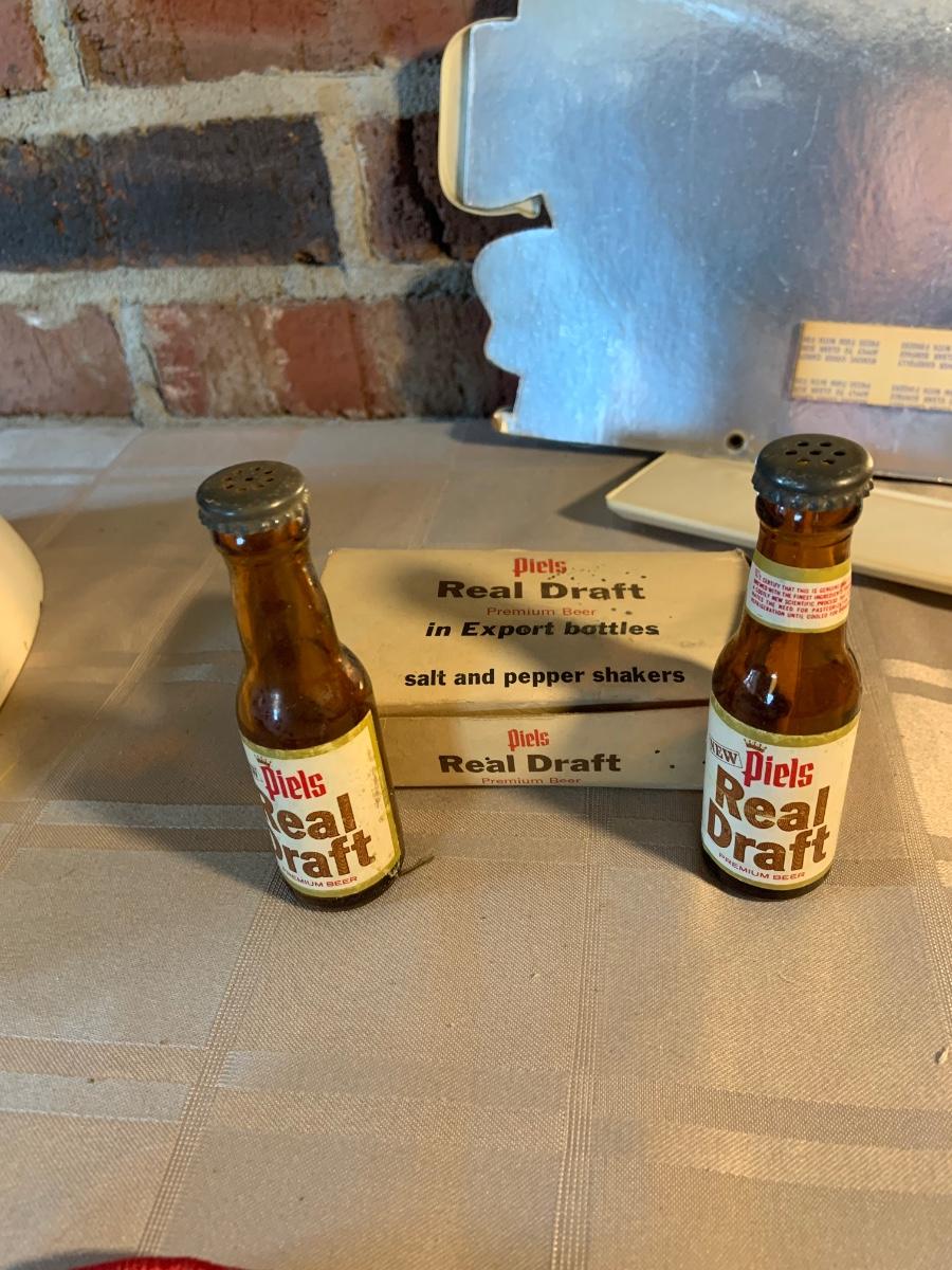 LOT:145G: Piels Beer Bank, Sign, Salt and Pepper Shakers and Patches and a Miller Malt Liquor Sign
