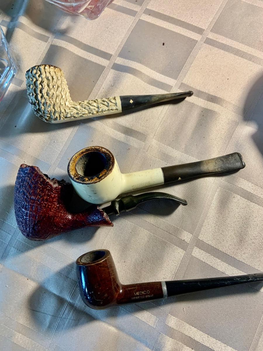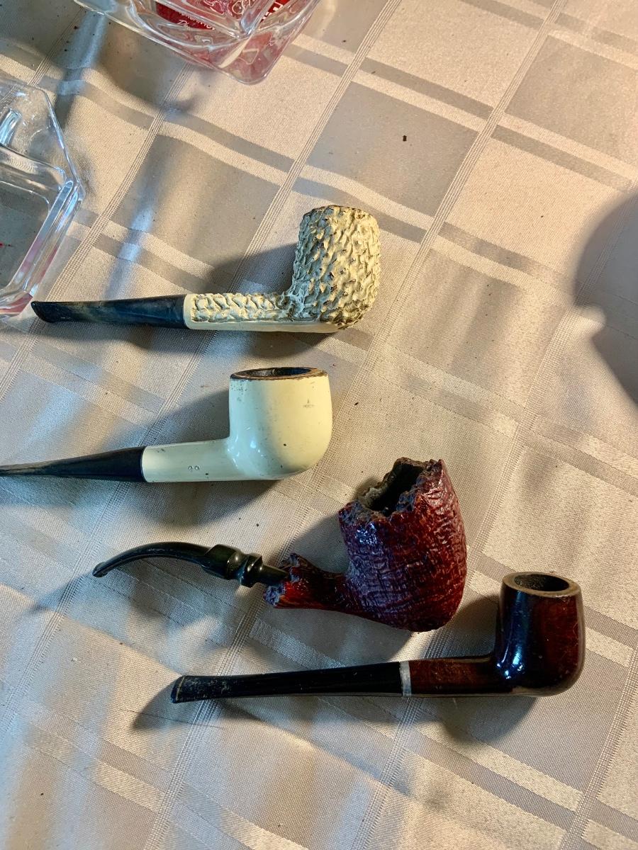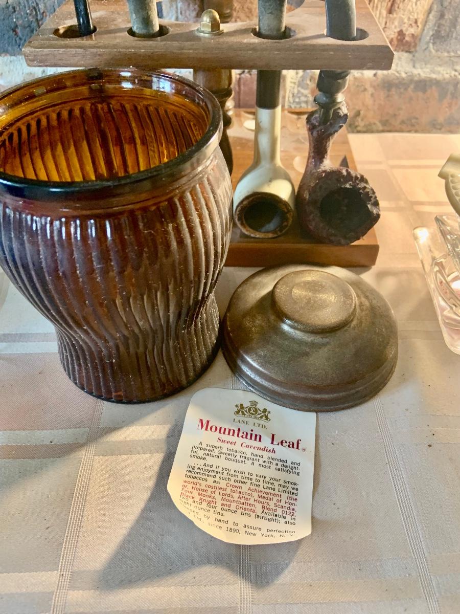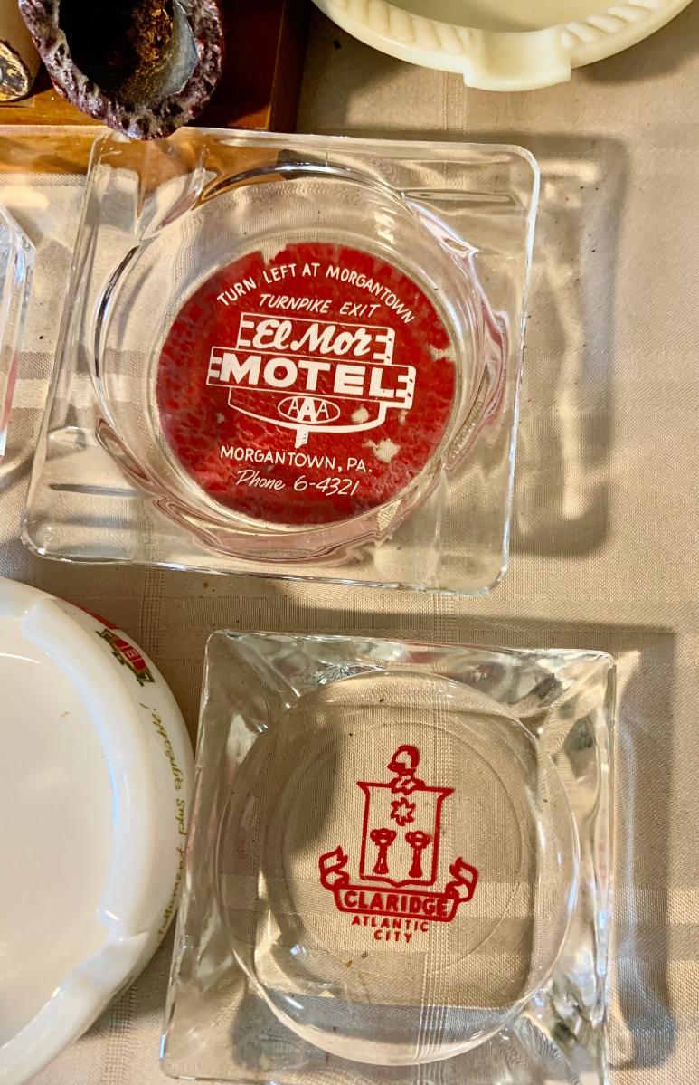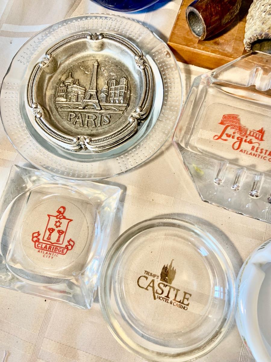 LOT:148G: Pipes, with Stand and Tobacco Jar: and a Large Assortment of Souvinear and Other Ashtrays