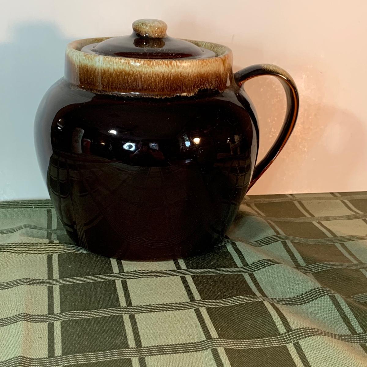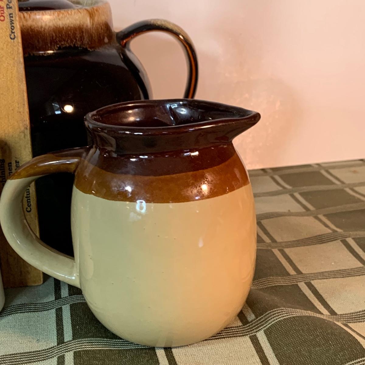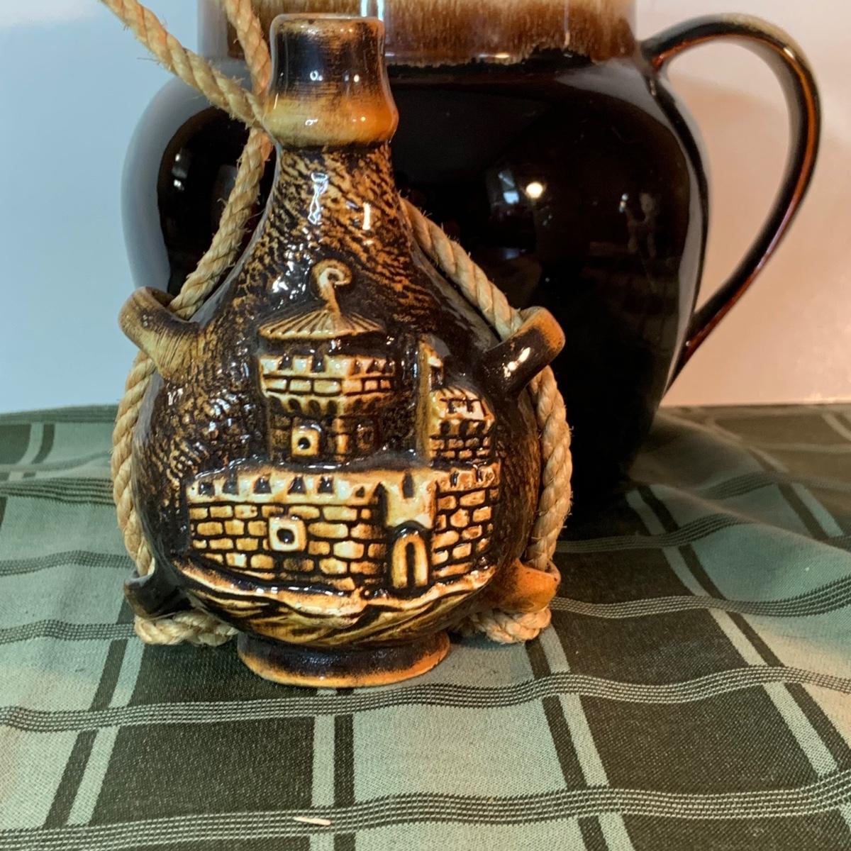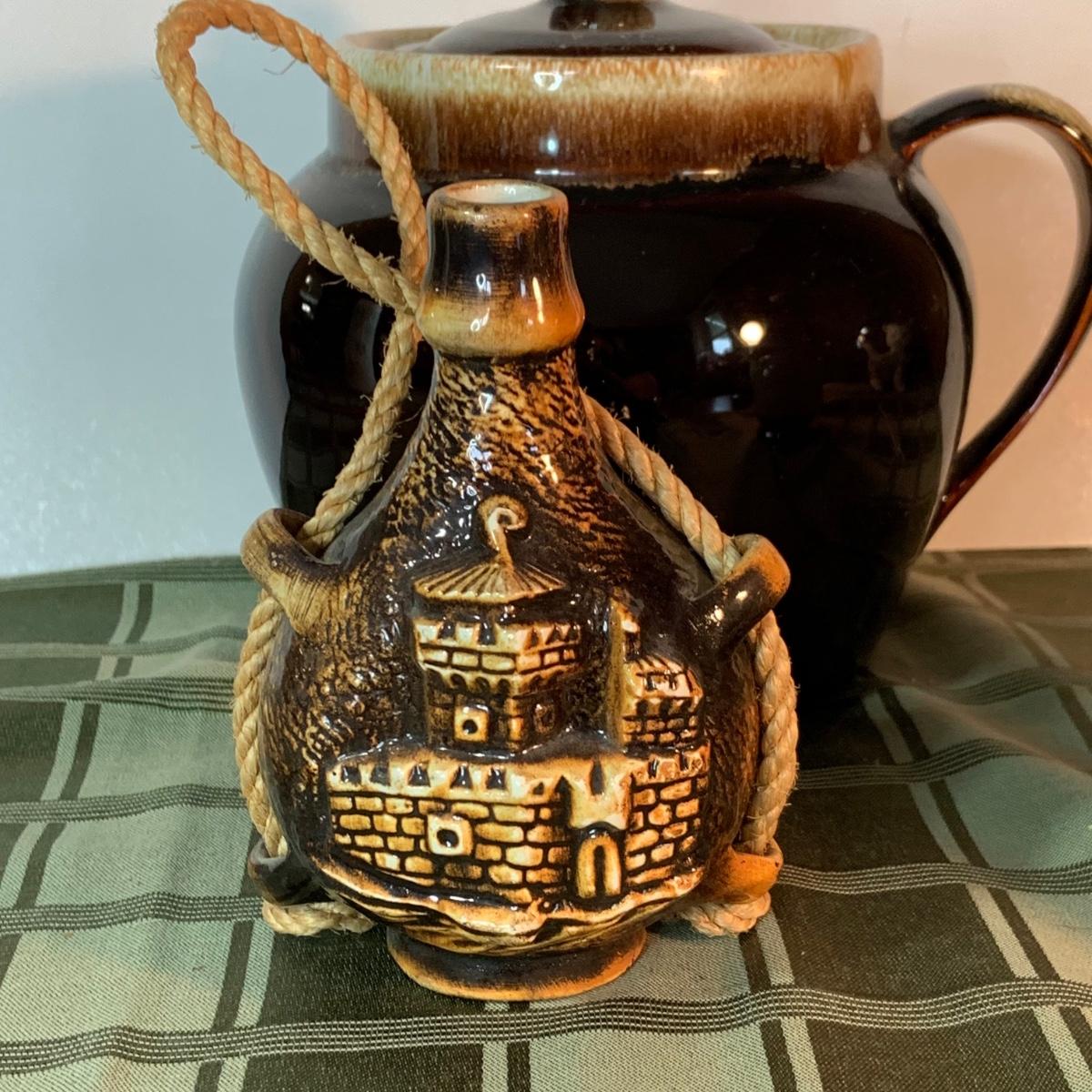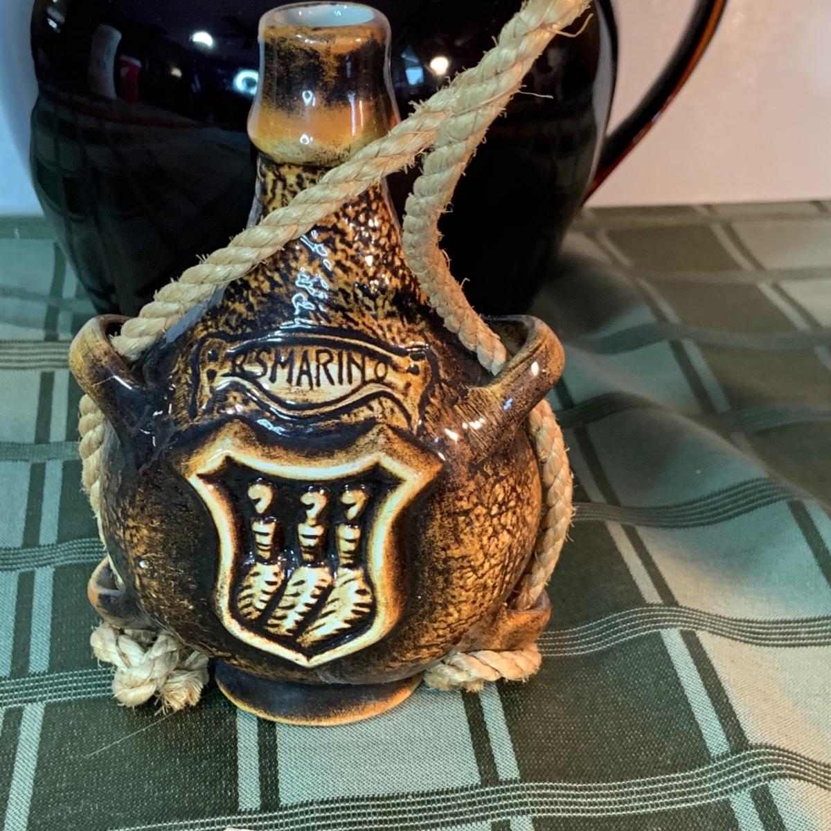 LOT:152G: Pfaltzgraff Crock, Primitive Pitcher, a Jug from the Hex Barn in Intercourse Pa and a RS Marino Bottle