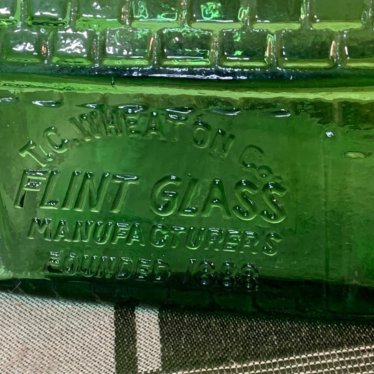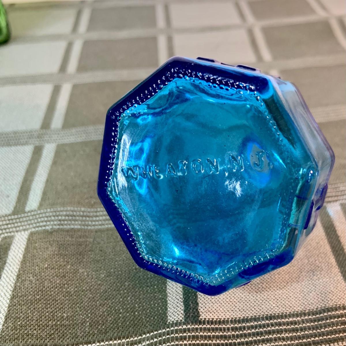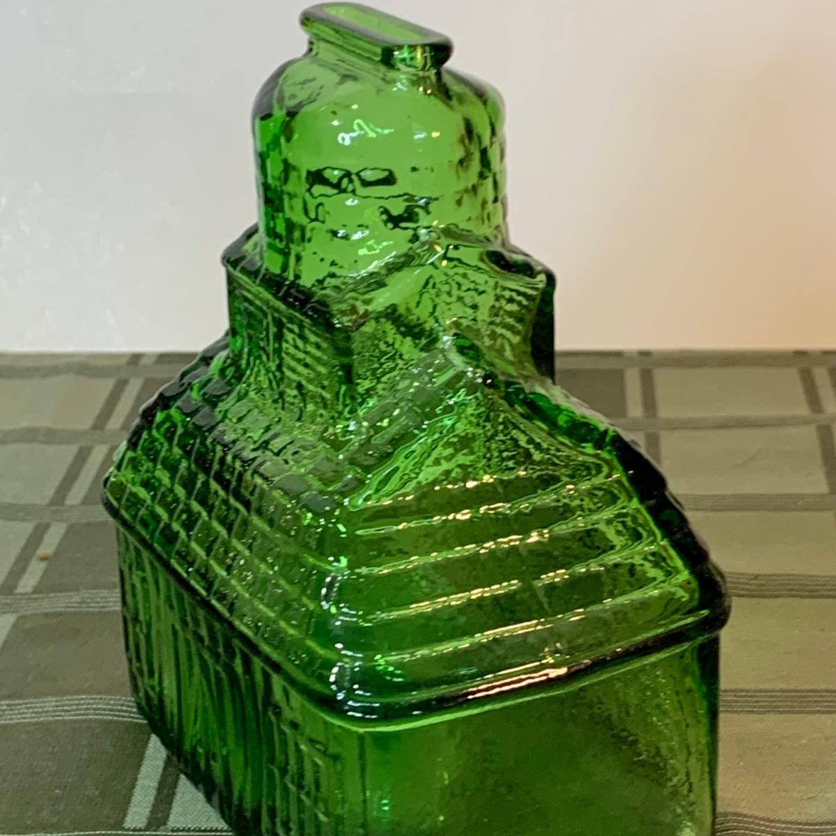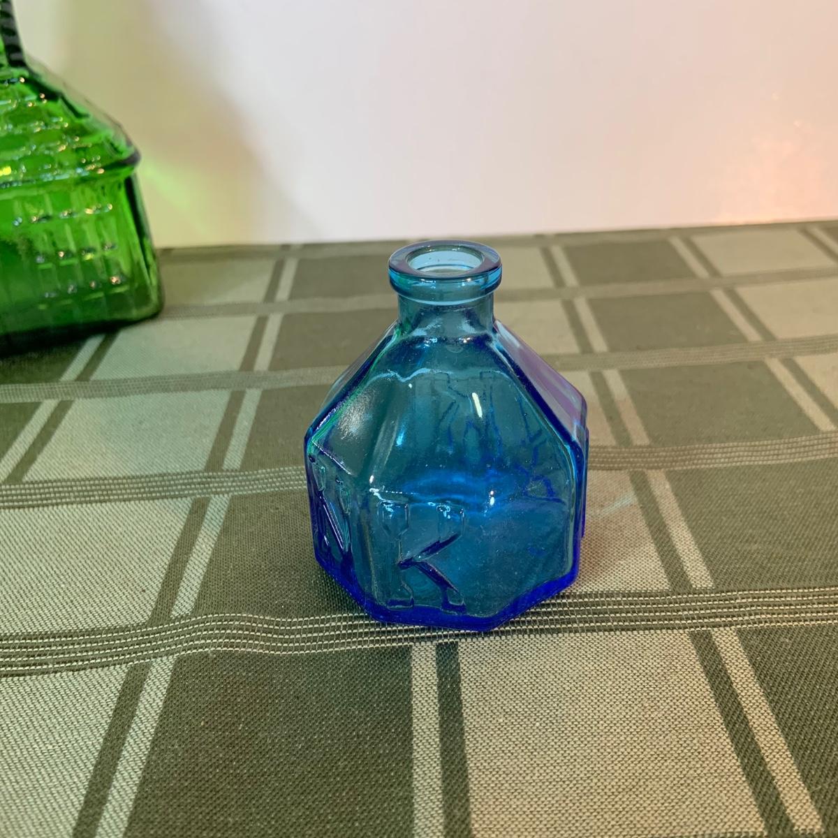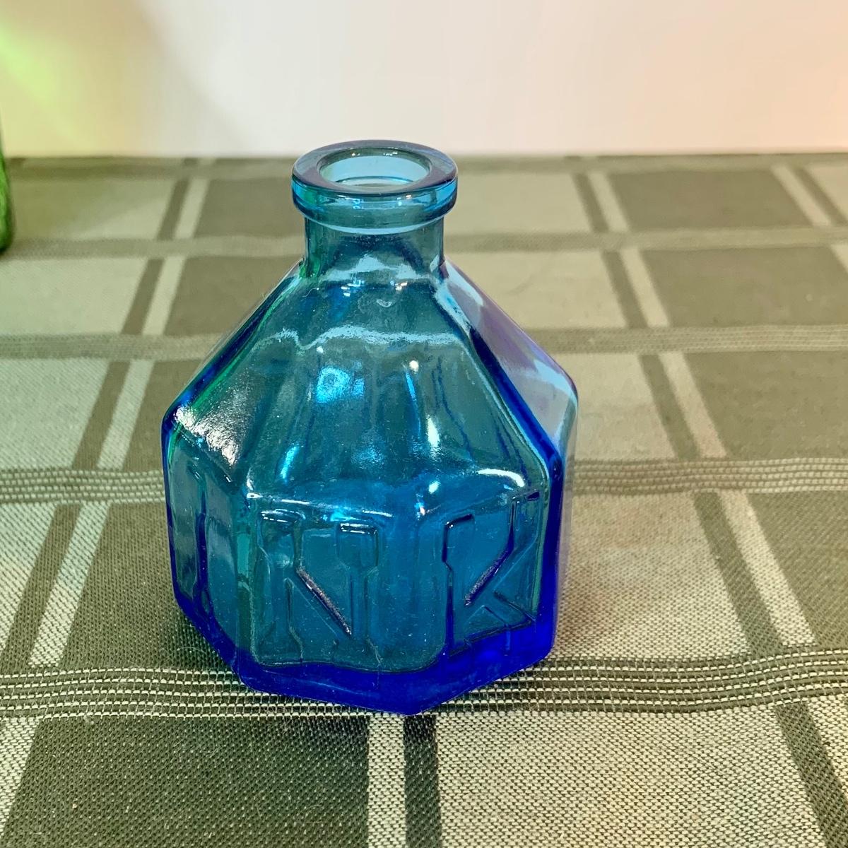 LOT:155G: Queen Miniture Castiron Stove with Pots Pans and More; a Wheaton Blue Inkwell, a Wheaton Flint Glass Bank and a Vintage Maxwell House Coffe Tin
