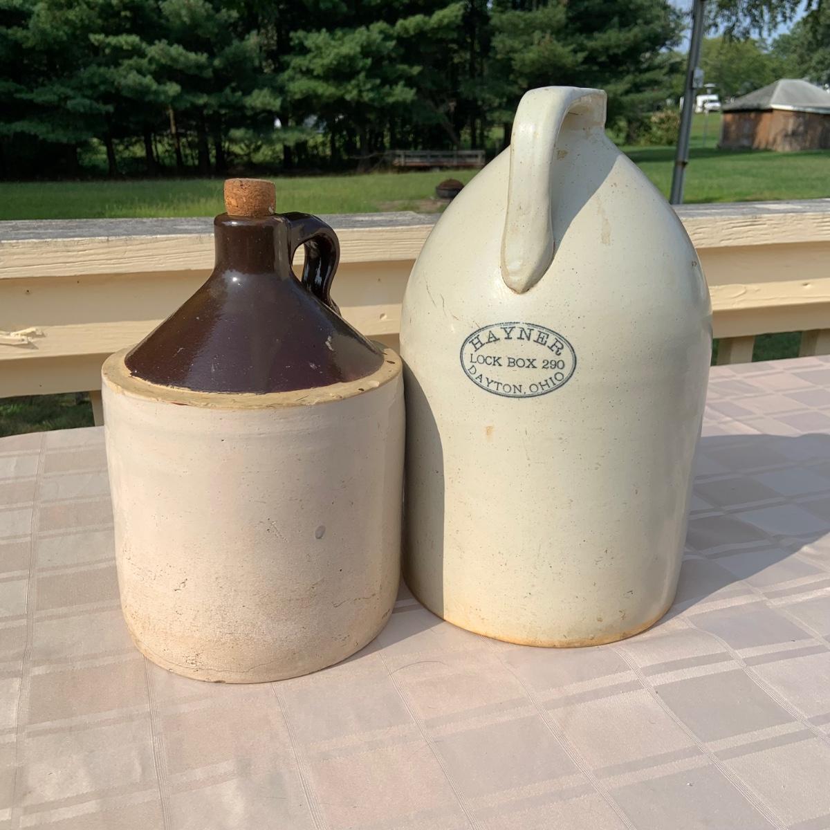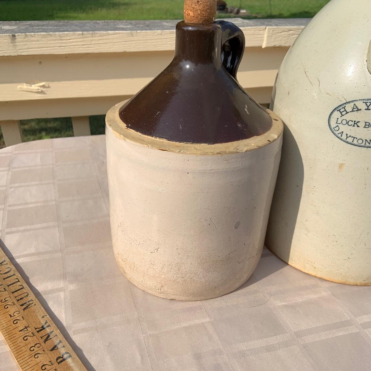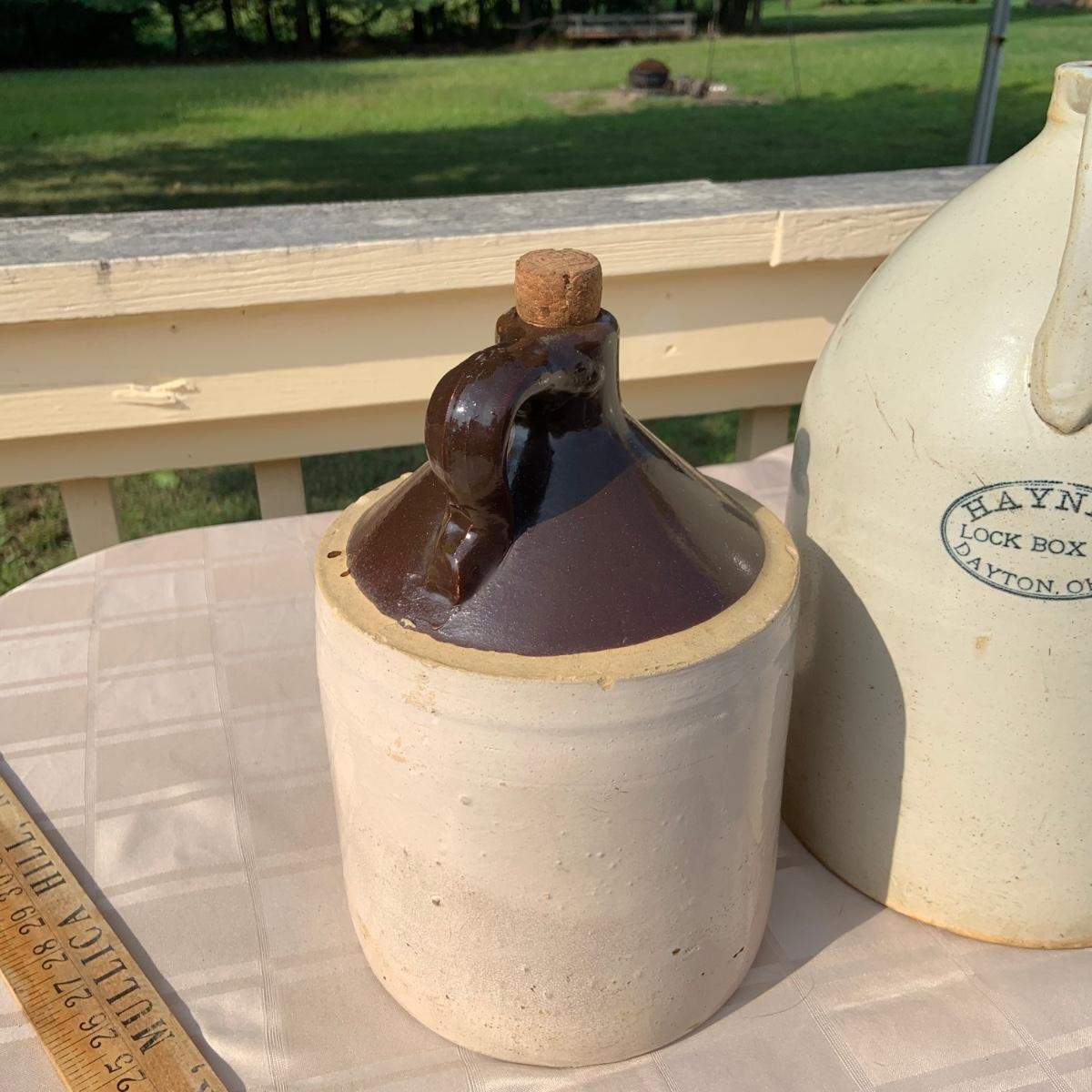 LOT:161G: Hayners Lock Box 290 Ceramic Jug and a Primitive Jug with Cork