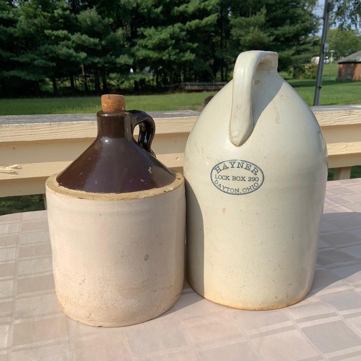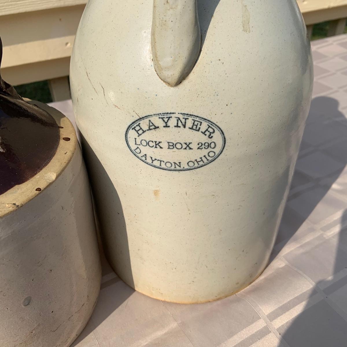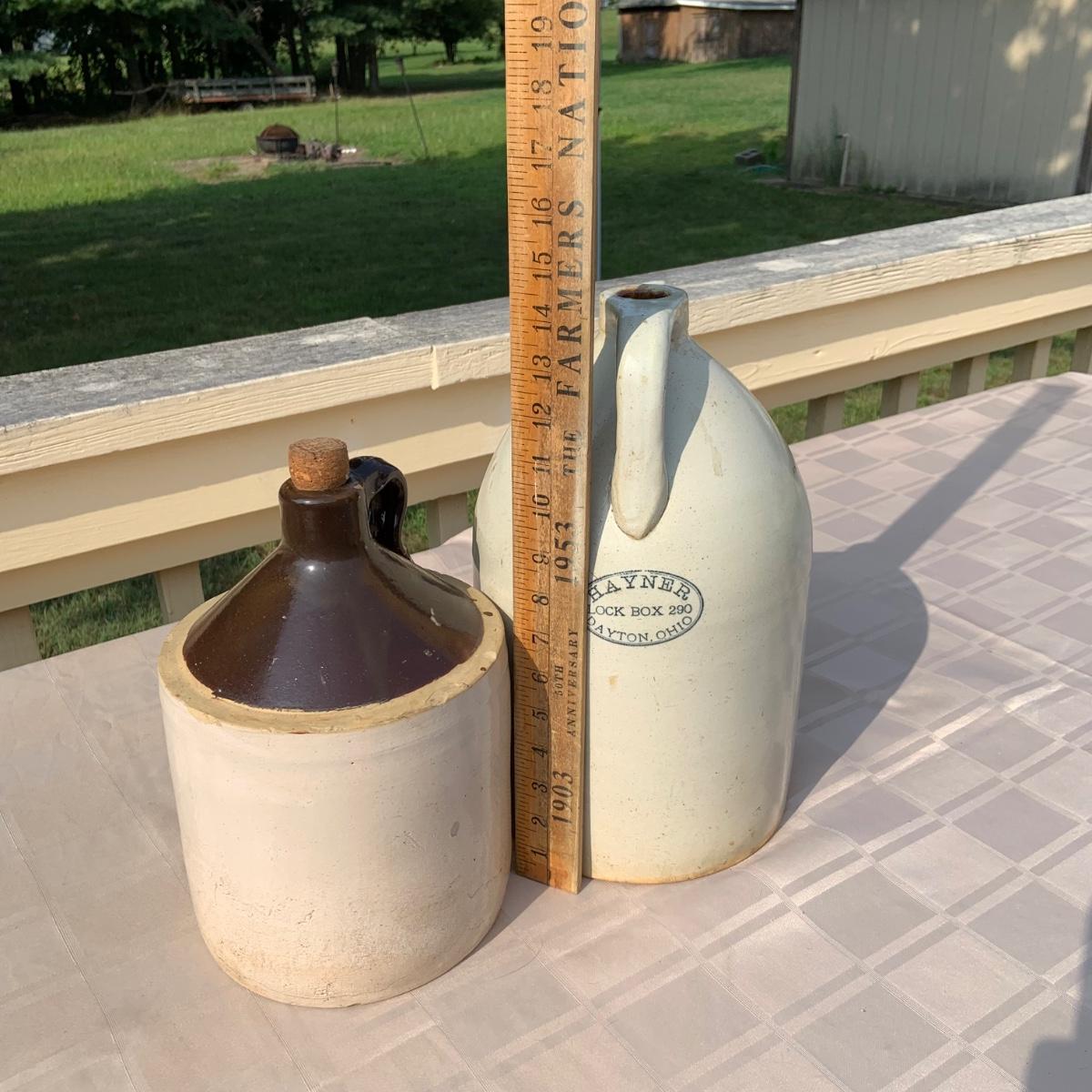 LOT:161G: Hayners Lock Box 290 Ceramic Jug and a Primitive Jug with Cork