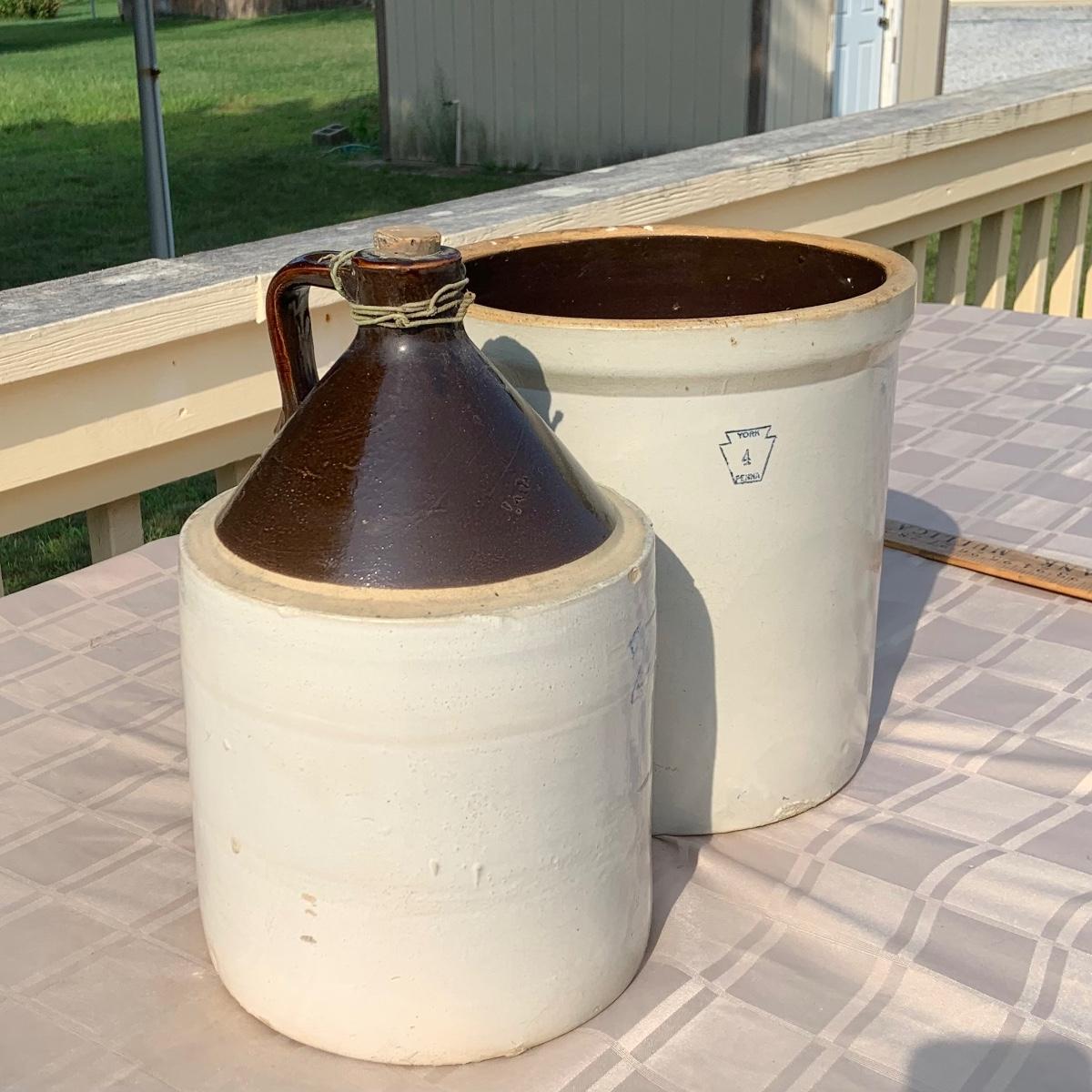 LOT:162G: York Penna Crock - 4Gallon and a 2 Gallon Jug with Cork