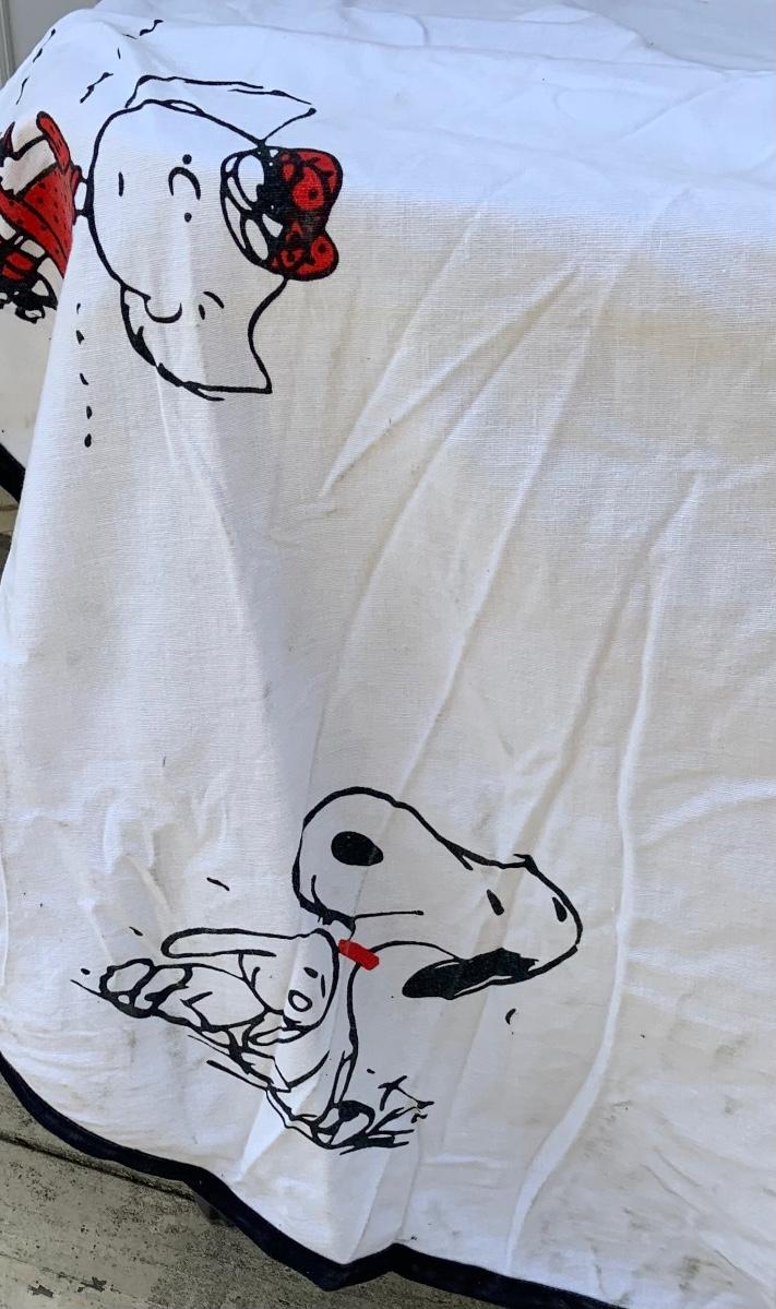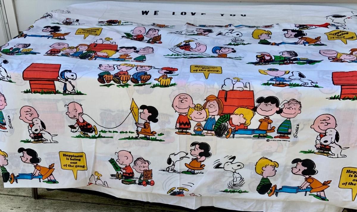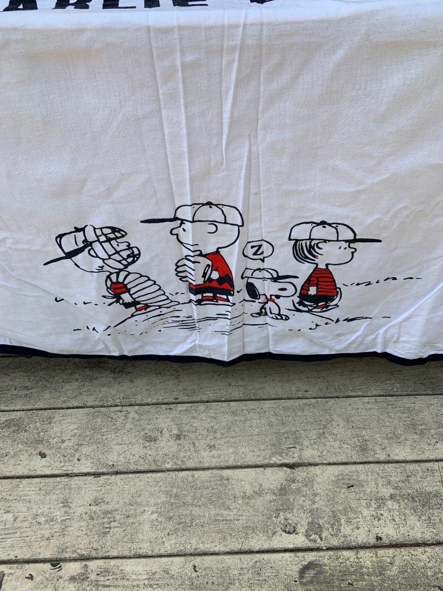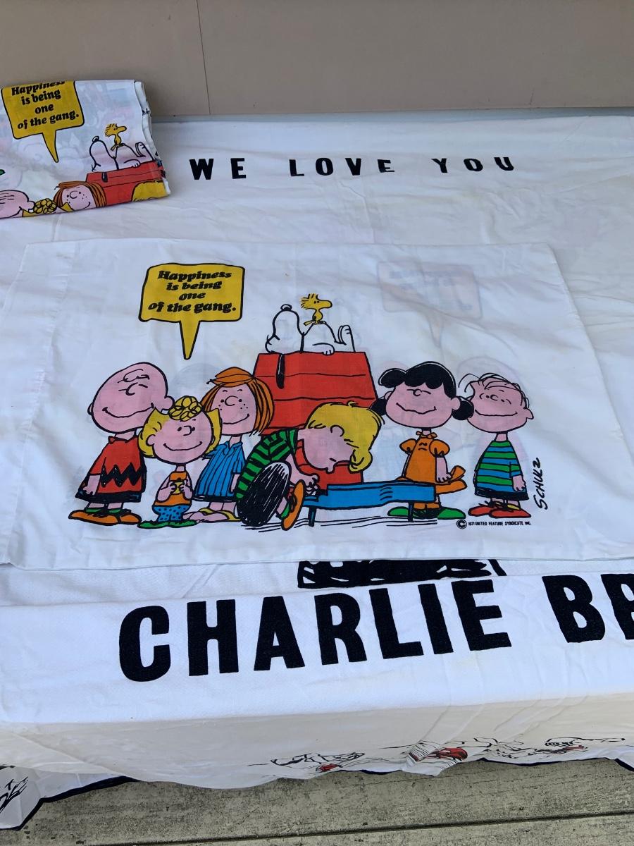 LOT:220: Charlie Brown- Snoopy - Peanuts Bedspread, Pillowcase, and Sheet with Vintage Peanuts Paperback Books