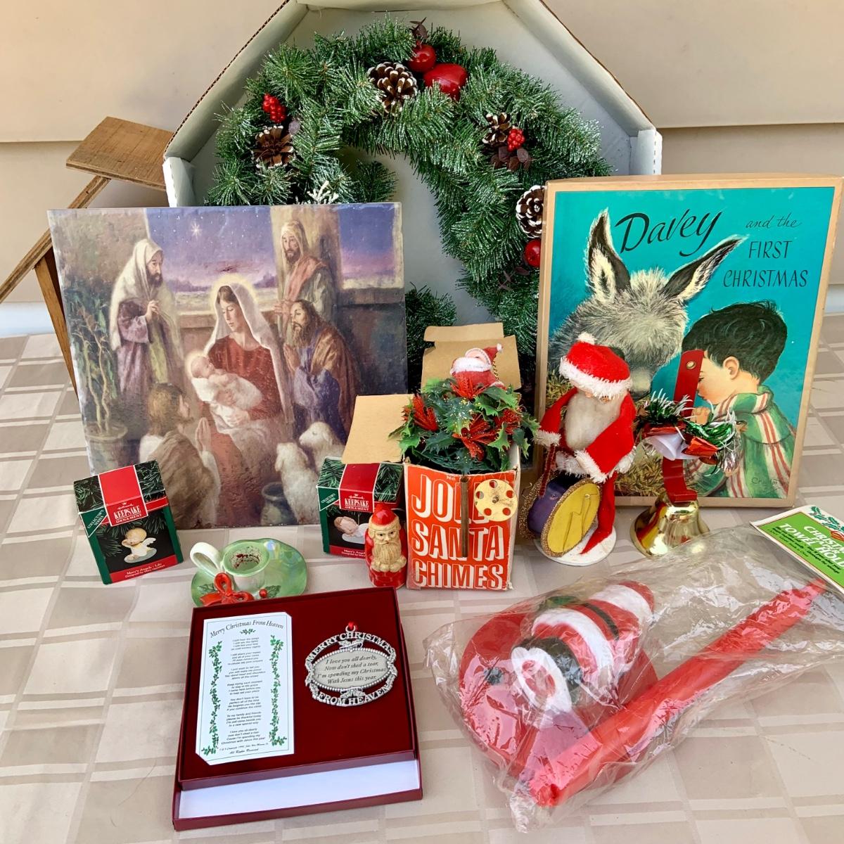 LOT:222G: Vintage Chirstmas Decor and Painted Ceramic Tile