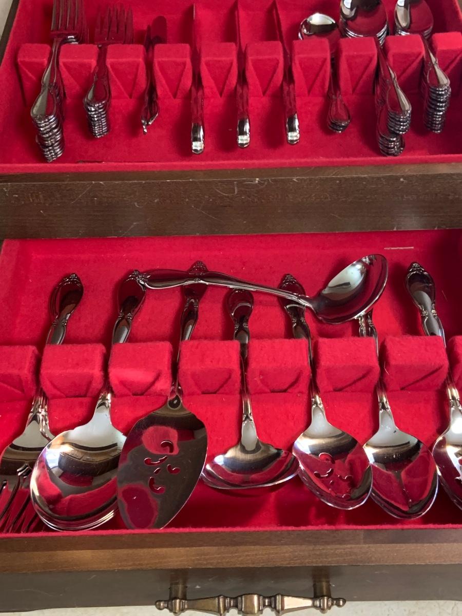 LOT:226G: Set of Oneida Community Stainless Flatware with McGraw Tarnish-Proof Silverware Chest
