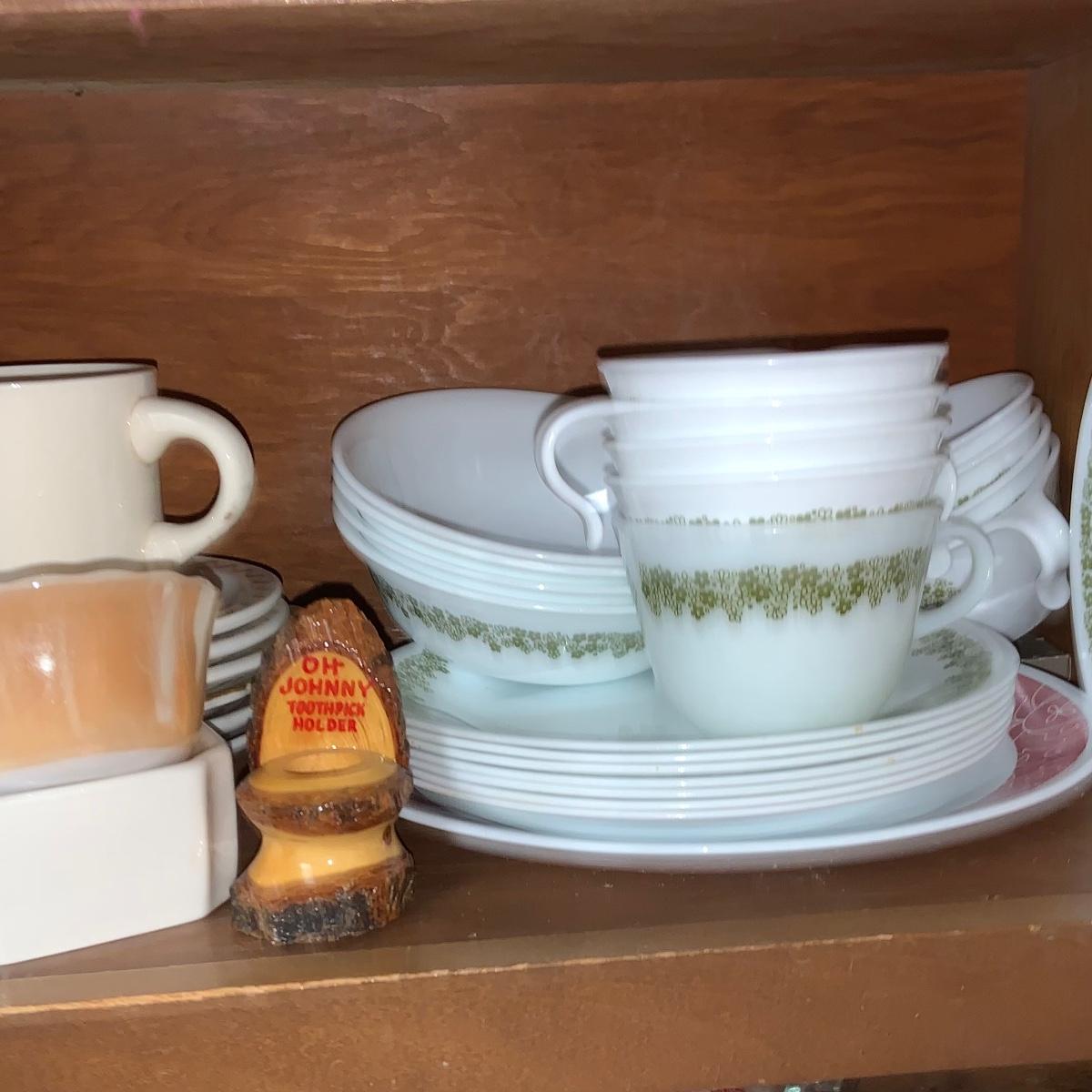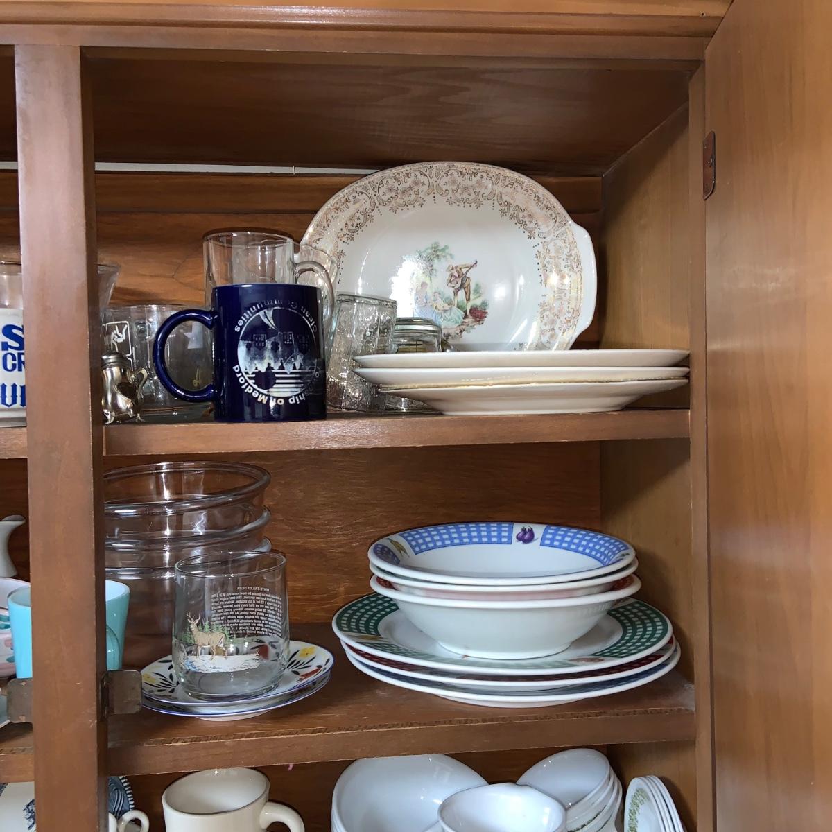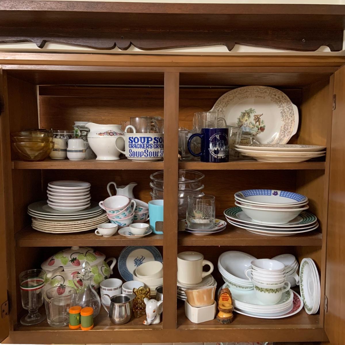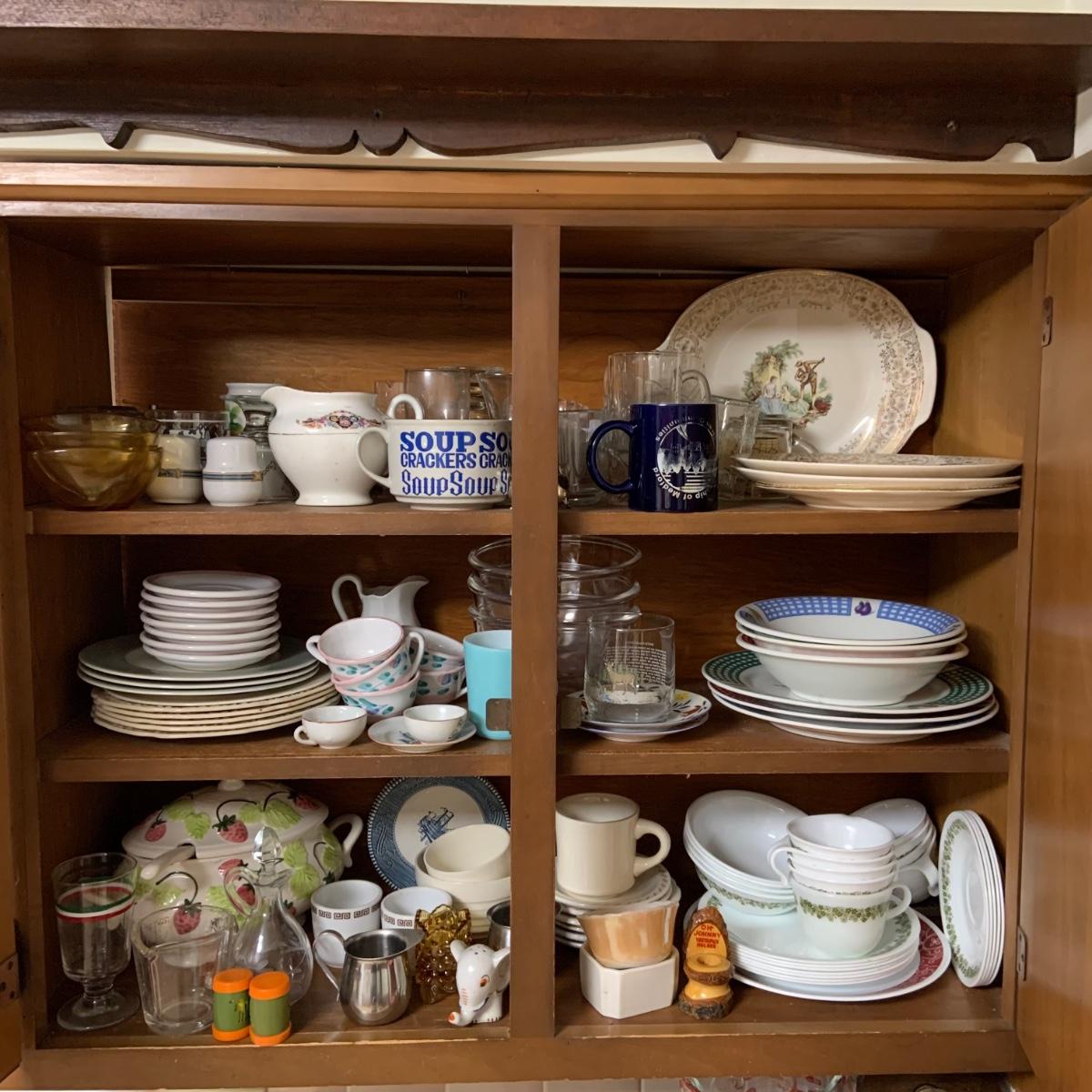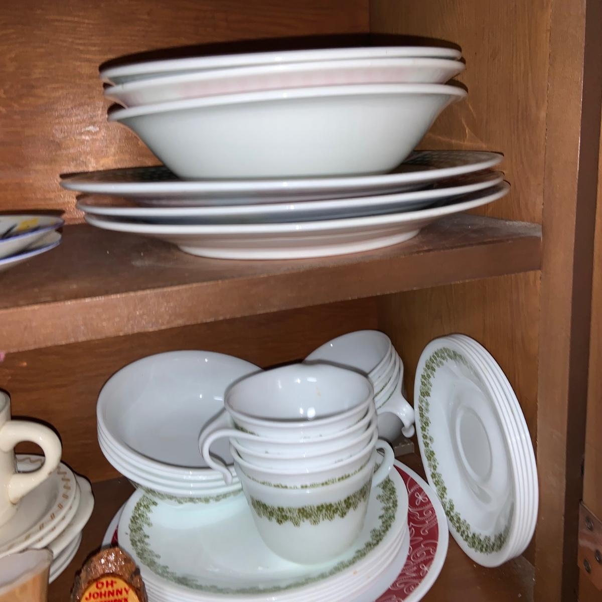LOT:235G: Contents of a Kitchen Cabinet Including Corningware and Much More