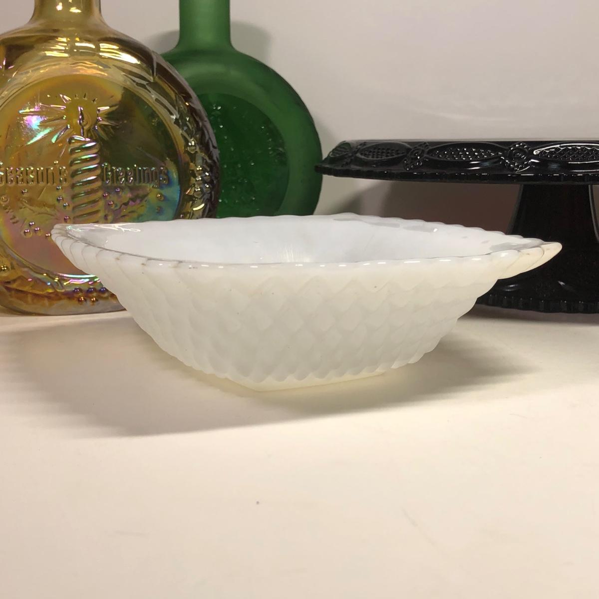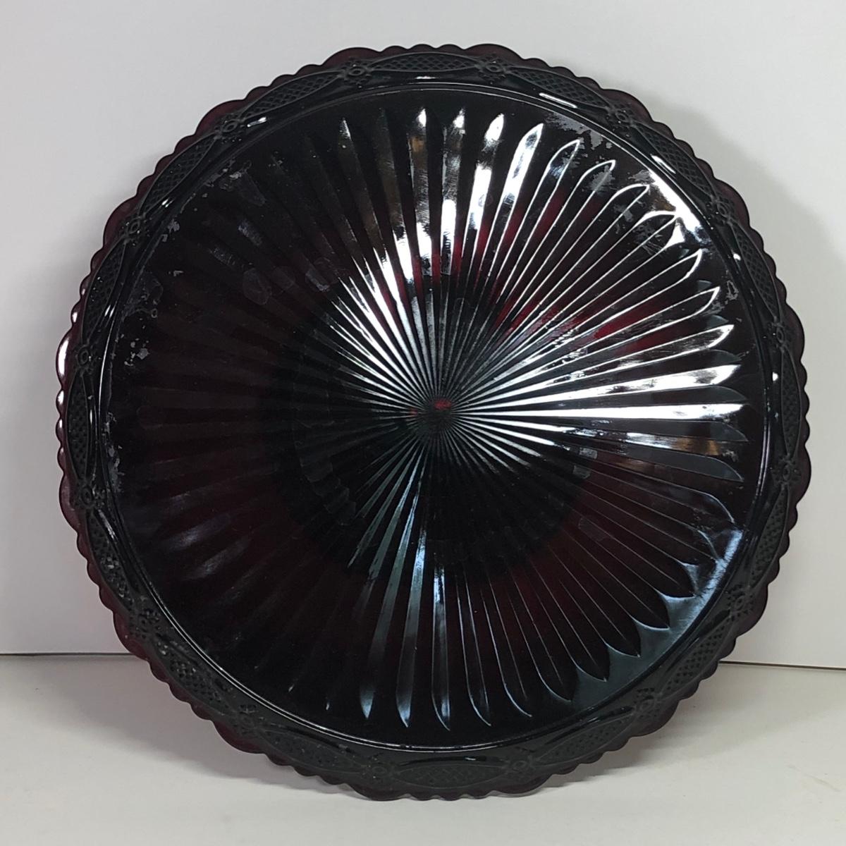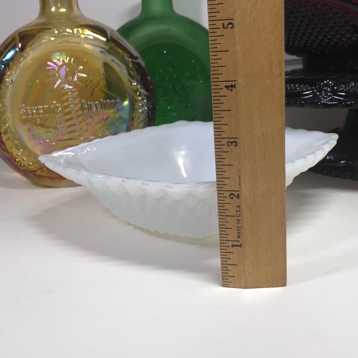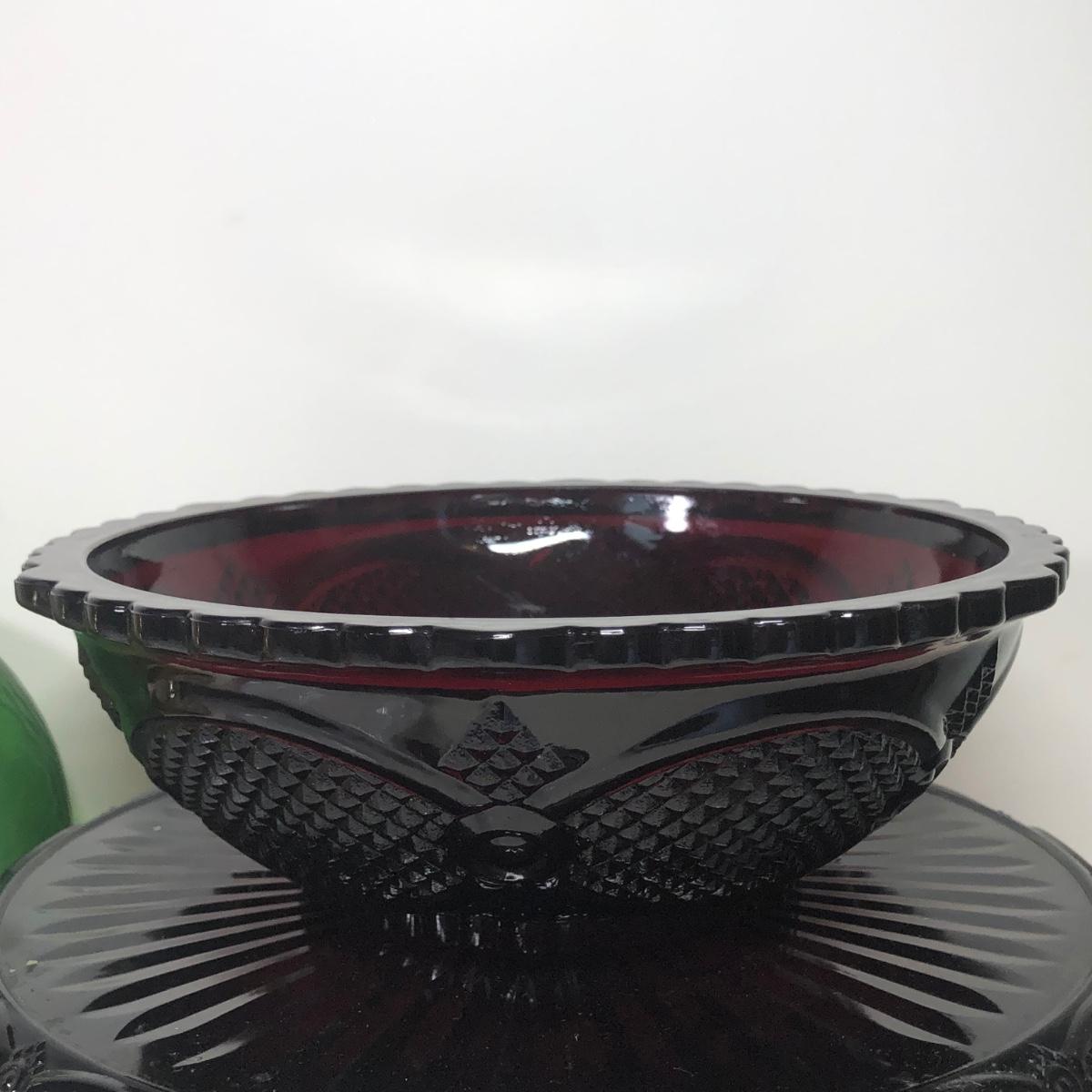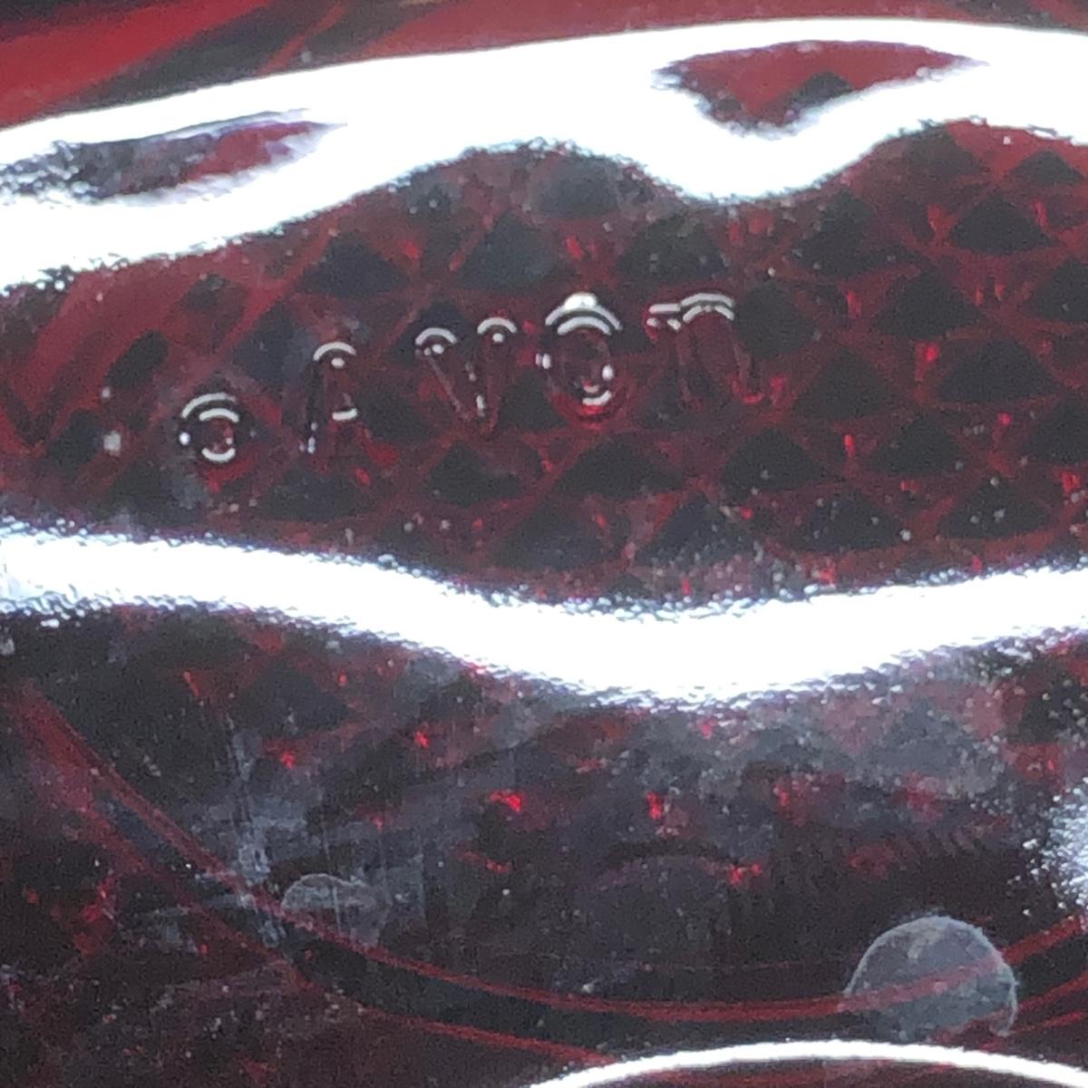 LOT 245M: Wheaton Christmas Bottles, Avon Cape Cod Collection Ruby Red Cake Plate & Serving Bowl & Milk Glass Candy Dish