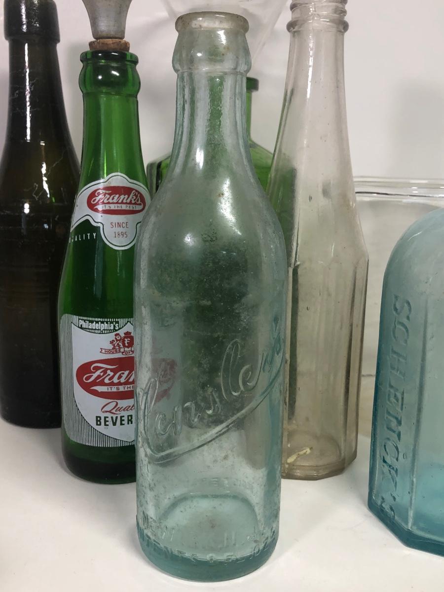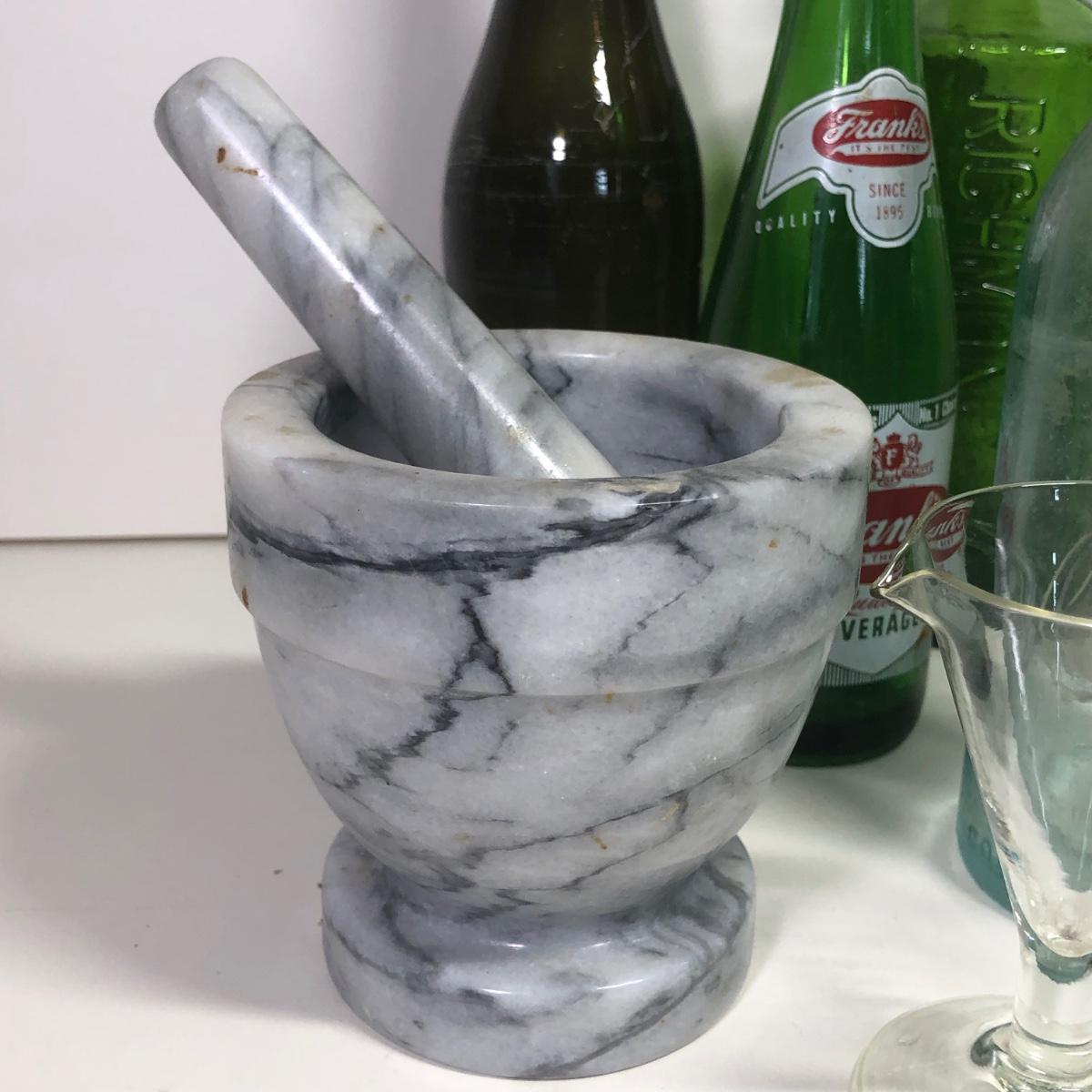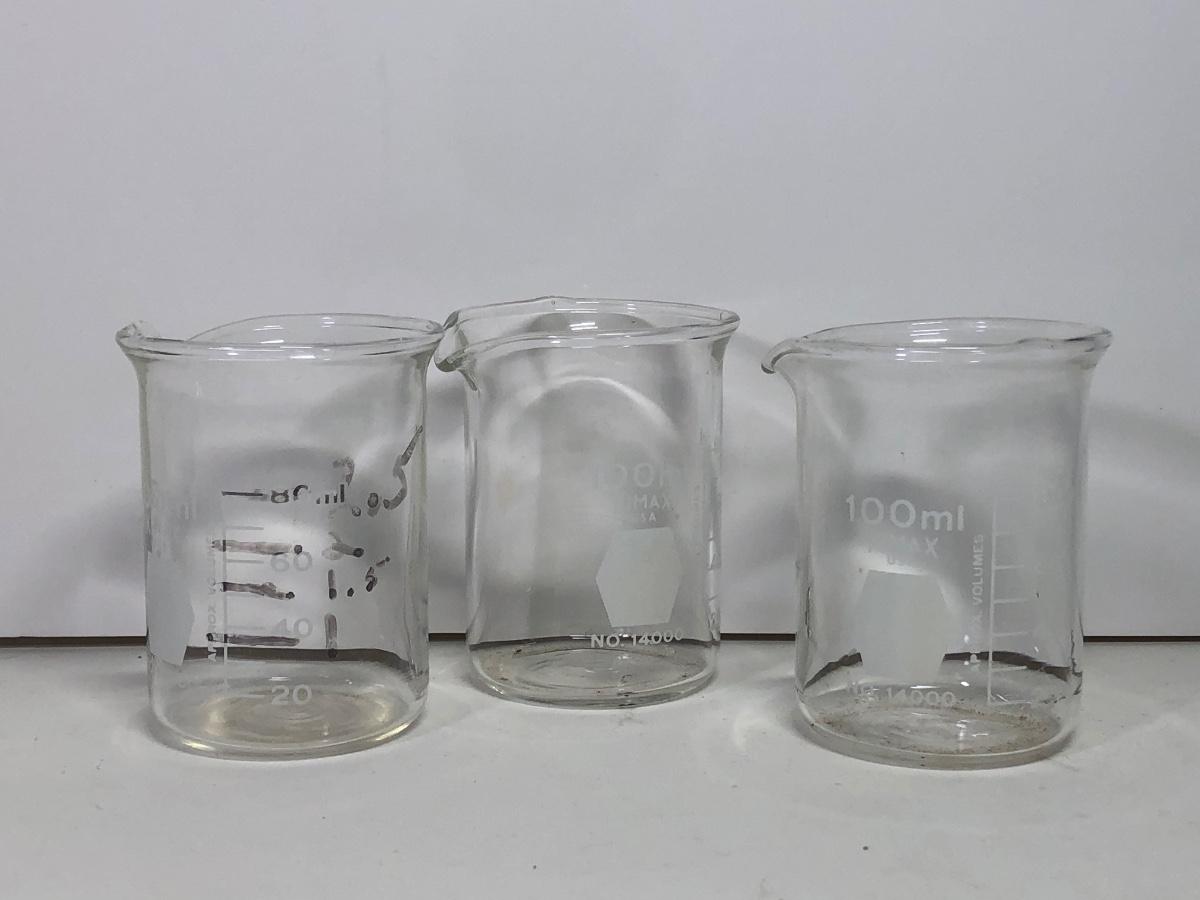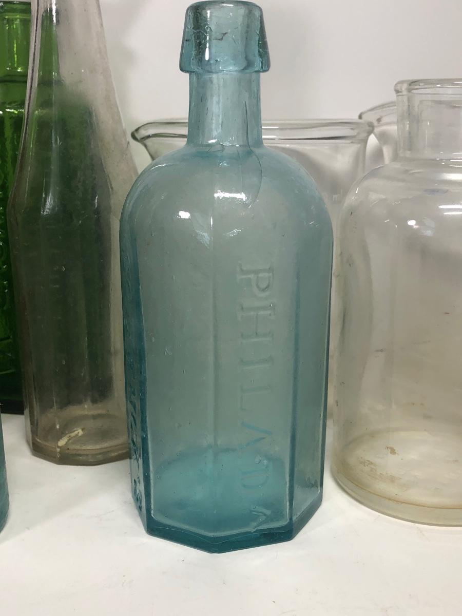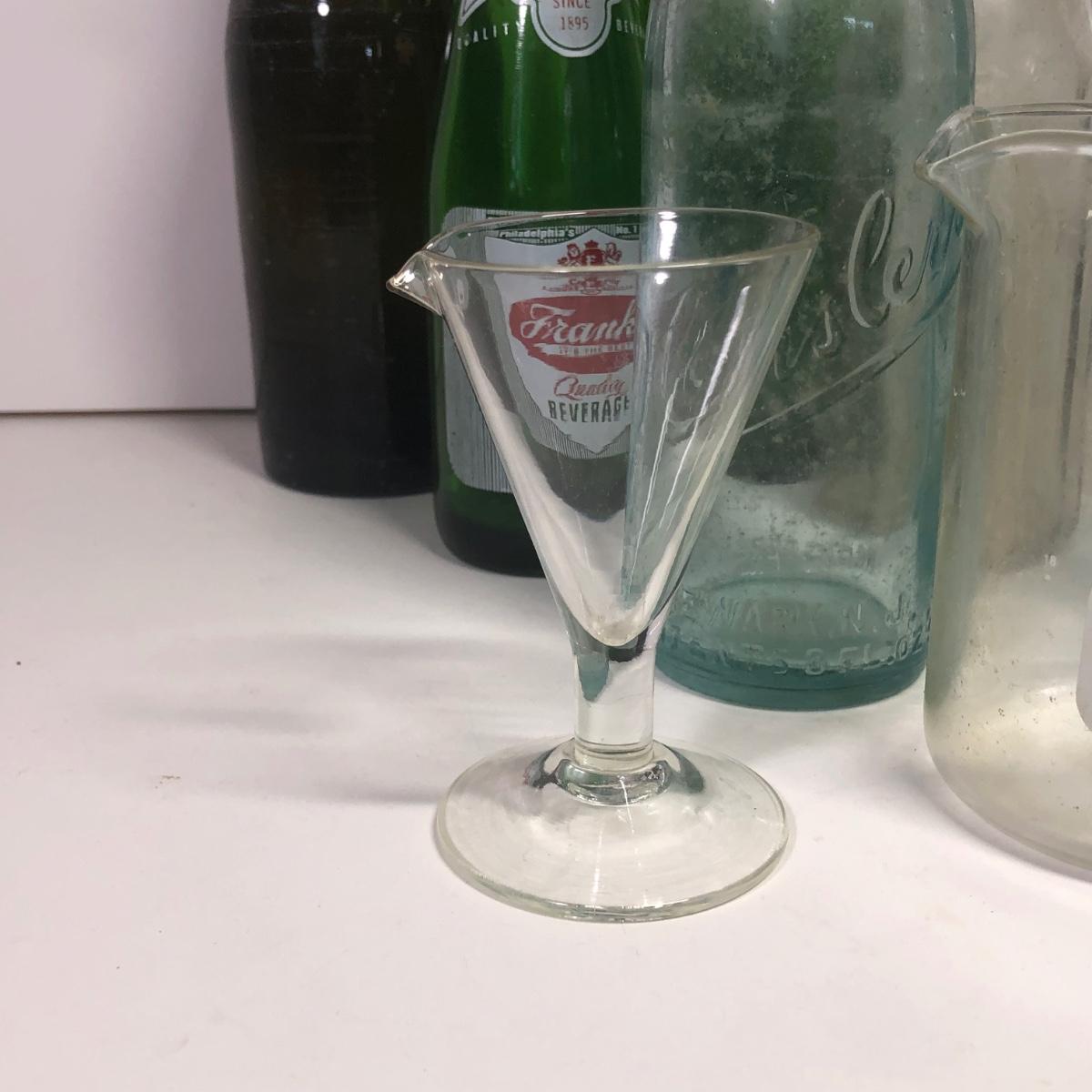 LOT 249M: Pyrex Beakers, Bellco Glassware (from Vineland, NJ), Marble Mortar & Pestle, Vintage Glass Bottles & More