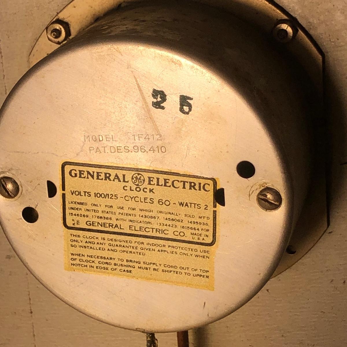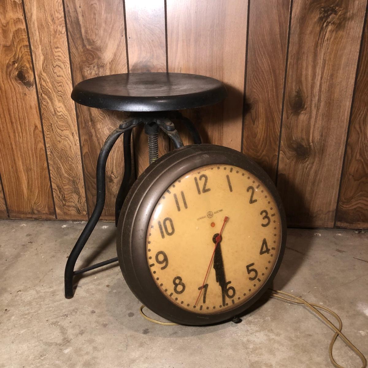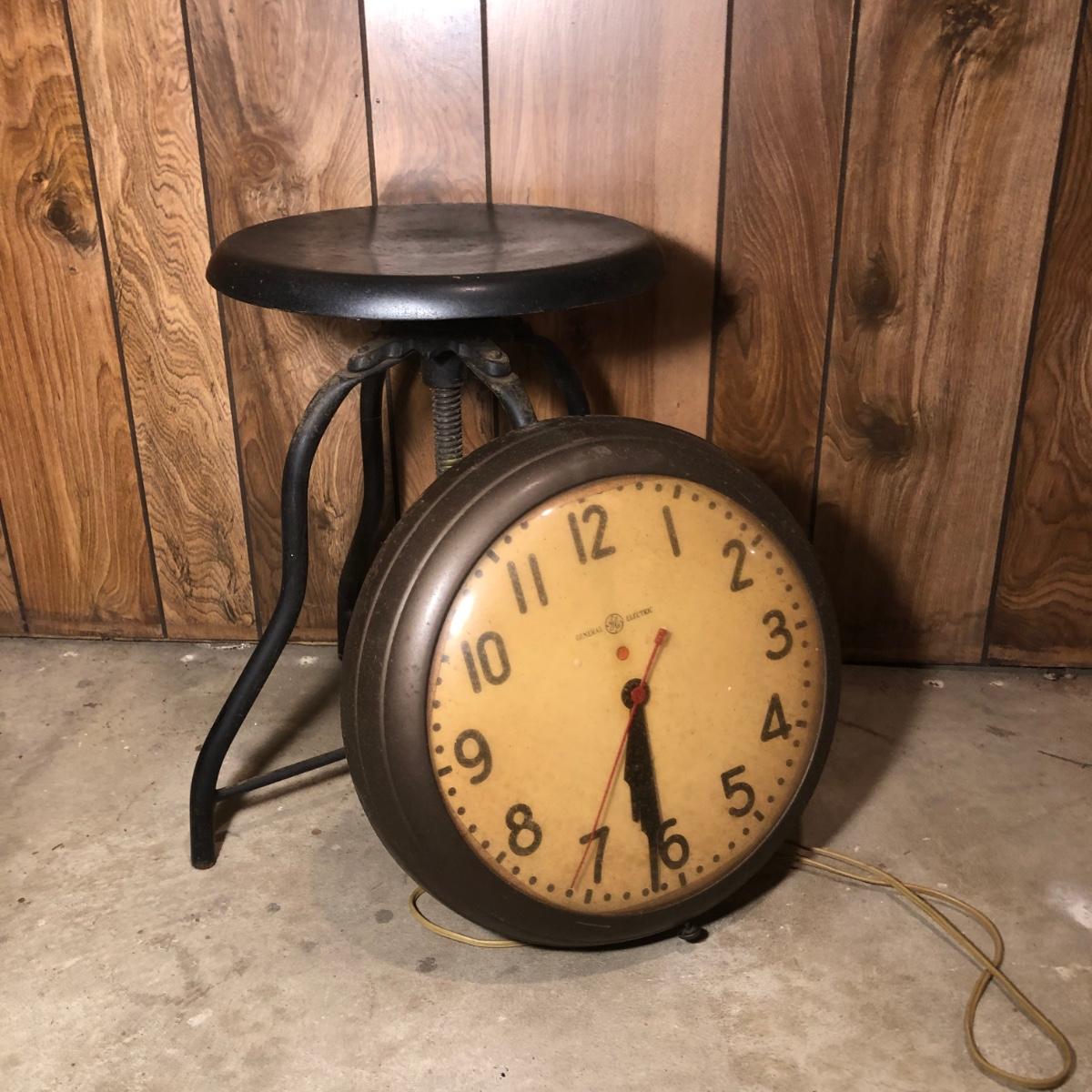 LOT 255M: Iron Stool & General Electric Wall Clock Model 1F412