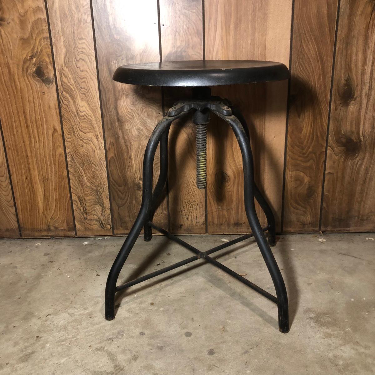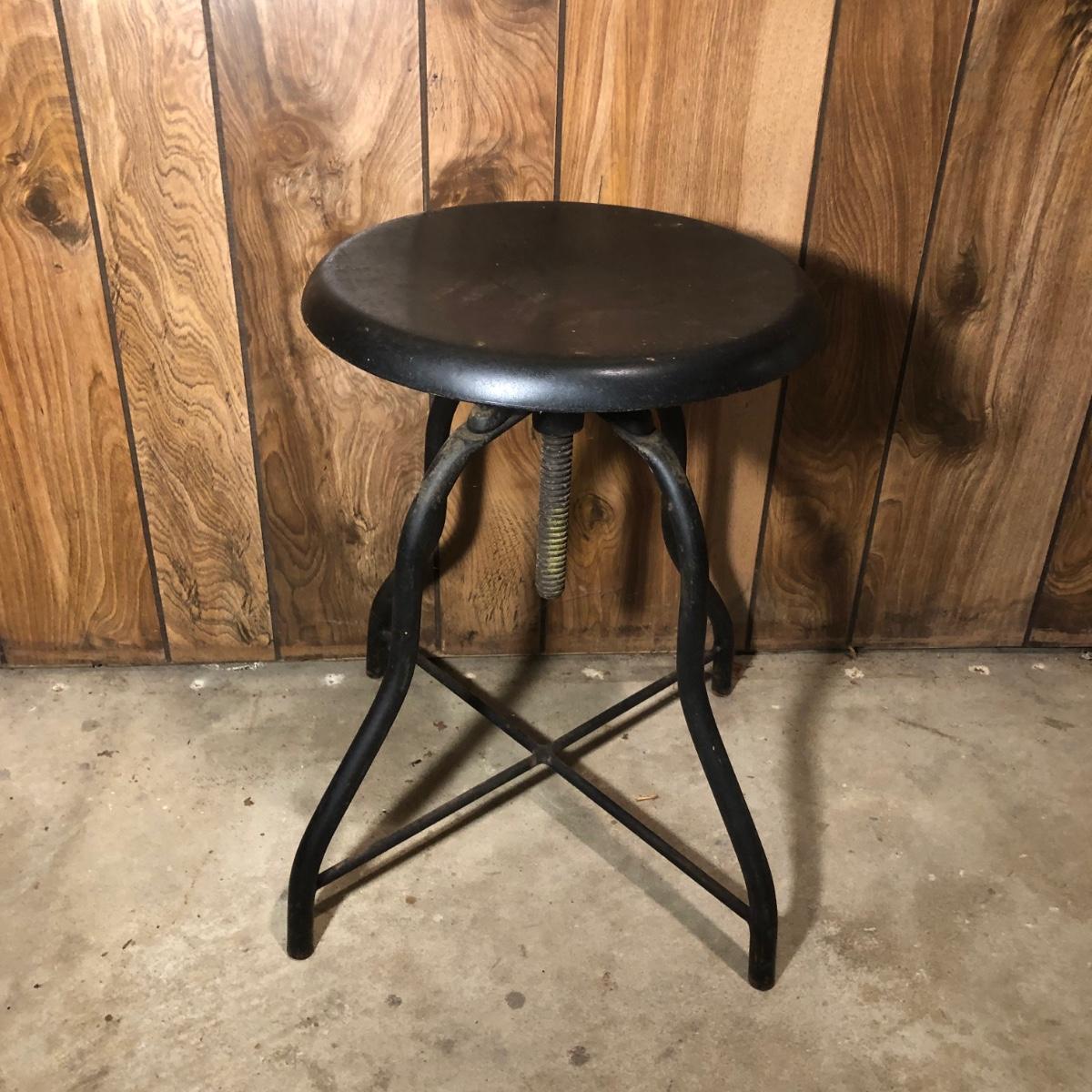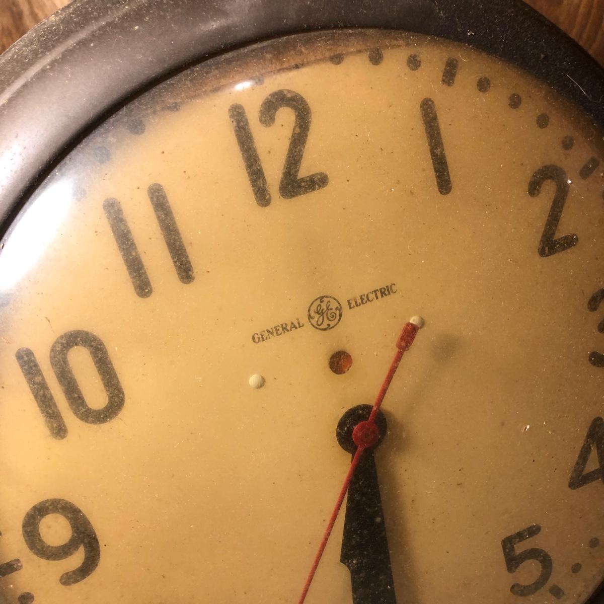 LOT 255M: Iron Stool & General Electric Wall Clock Model 1F412