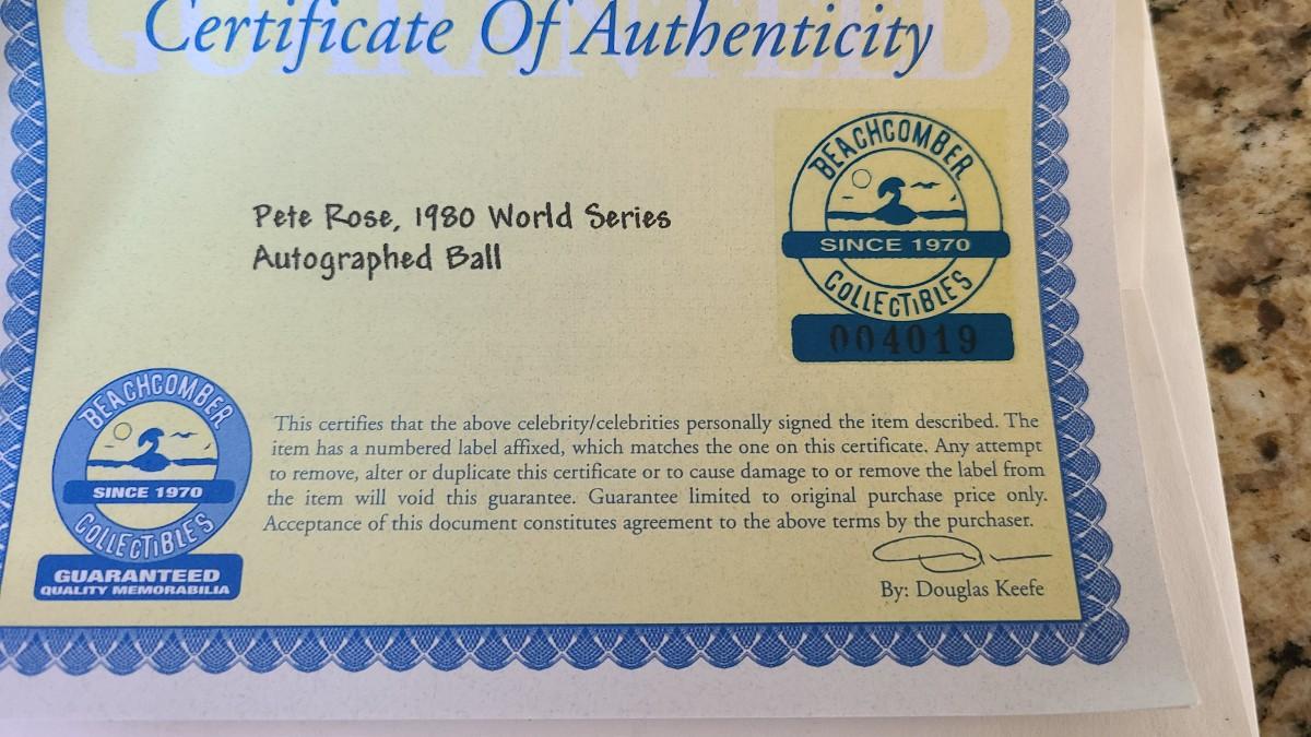 Lot 91R: Pete Rose 1980 World Series Autographed Ball COA
