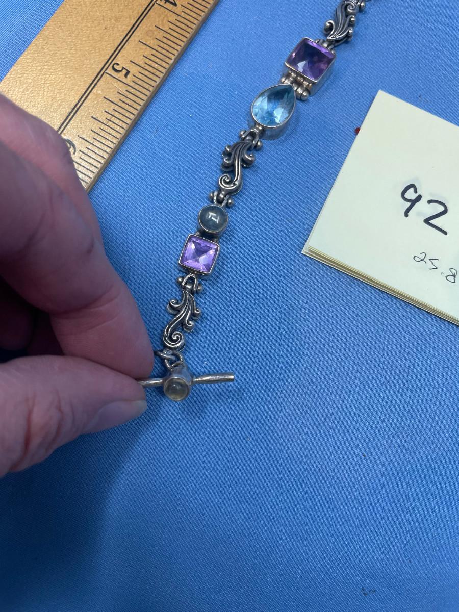 8. Sizes are approximate, you can estimate as our lot number signs are 3.5" long. Also we use an 18" & 36" measuring stick.  We try on certain things to do actual measurements. No guarantees on actual sizes, we try our best!