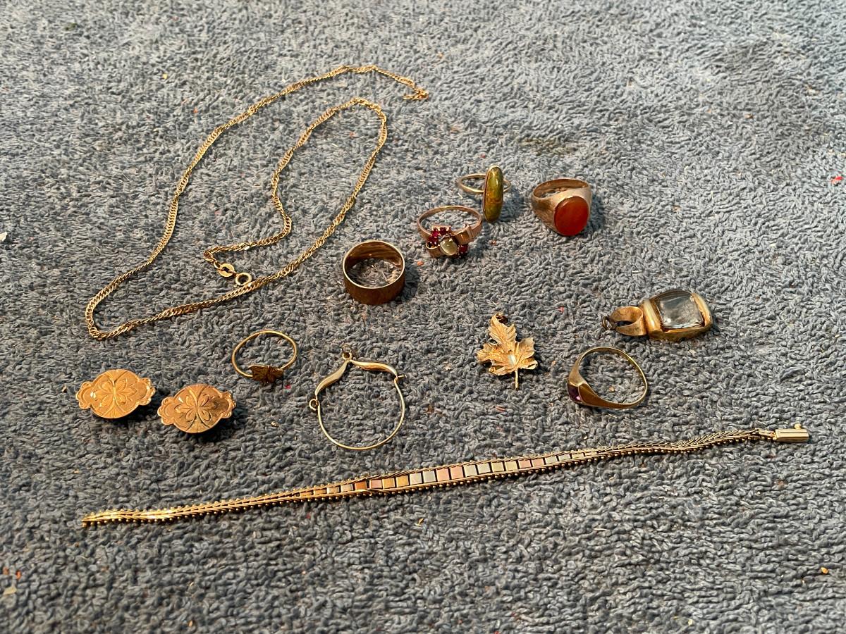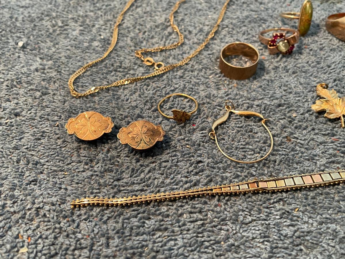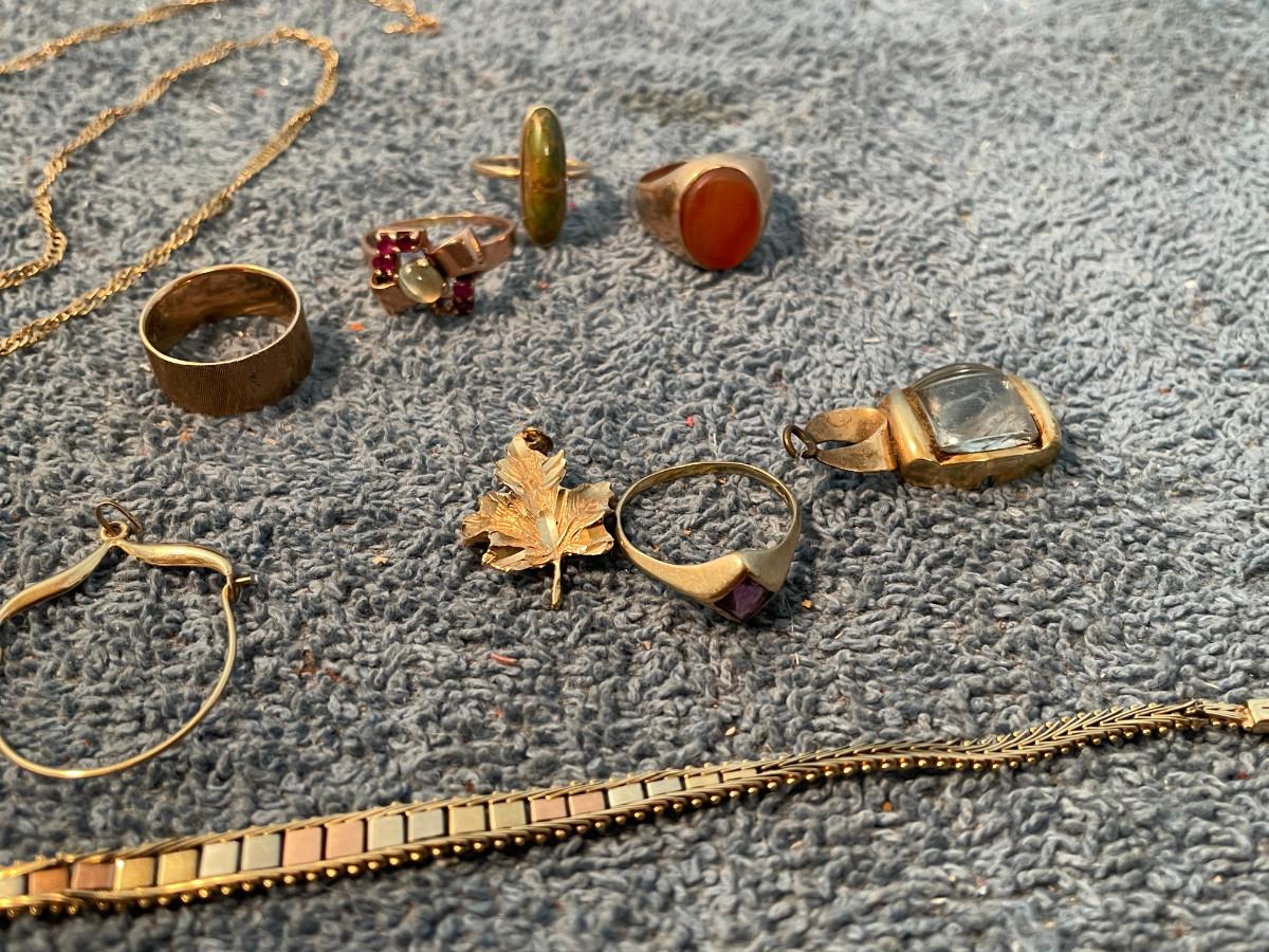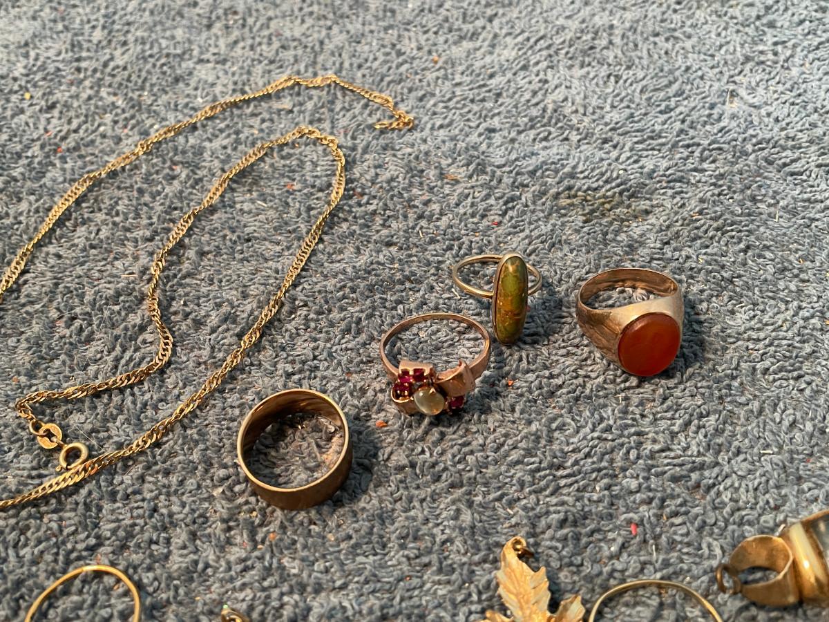 14K GOLD PIECES, MOSTLY SCRAP. UNMARKED, BUT, TESTED.. 39.18 GR TOTAL WEIGHT.