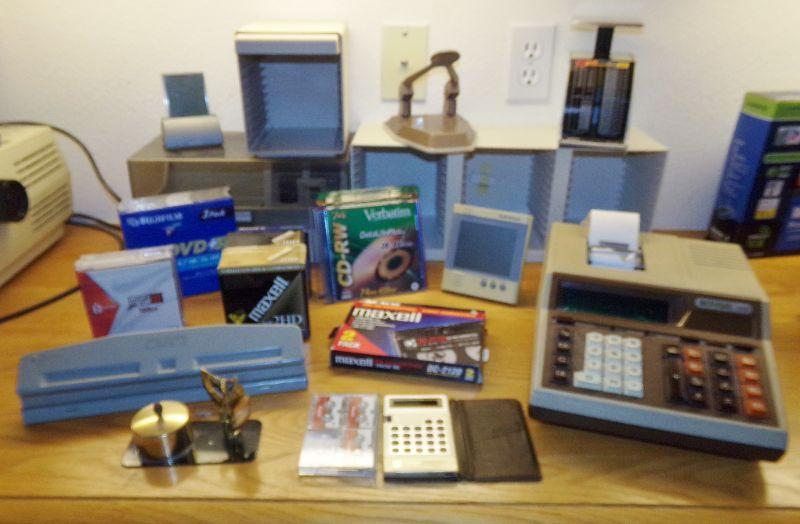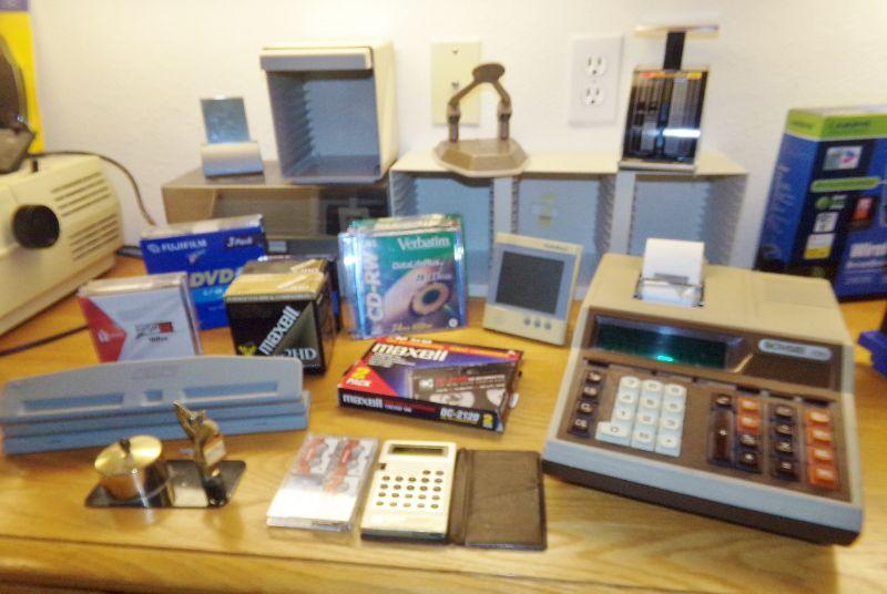 ELECTRIC CALCULATOR, 2 AND 3 HOLE PUNCHES, STORAGE MEDIA, ORGANIZERS, POSTAGE SCALES AND MORE