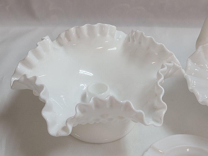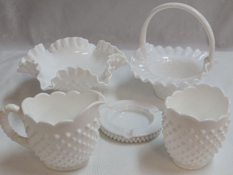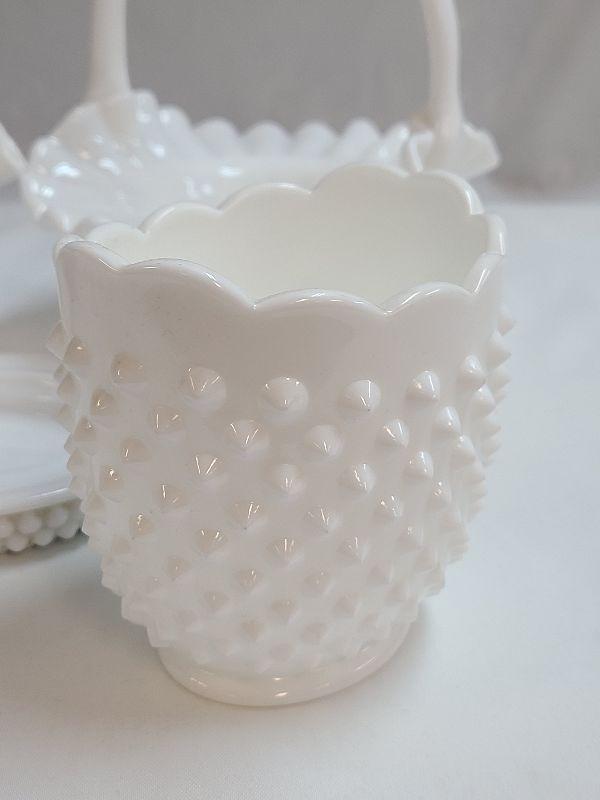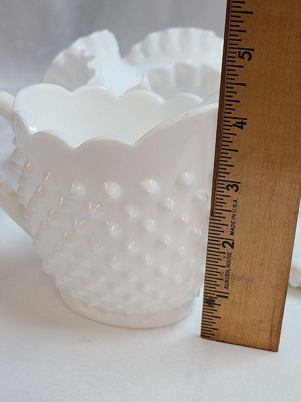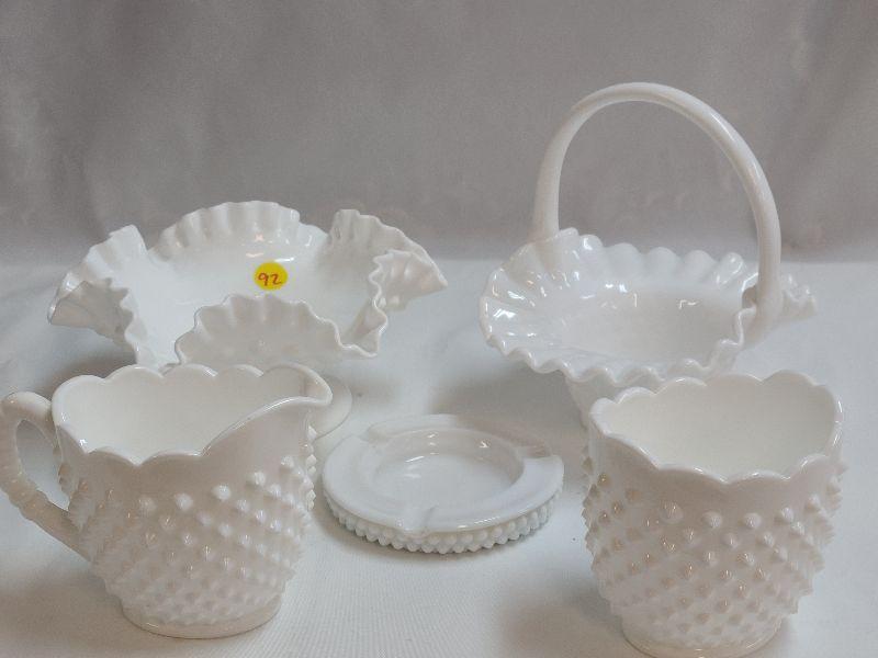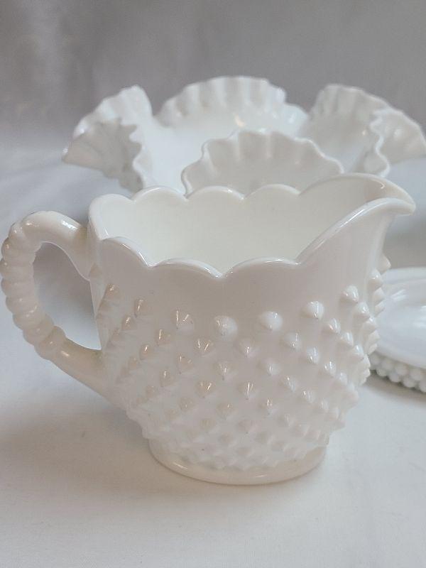 Lot 92: Milk Glass Hobnail Candy, Creamer and more!
