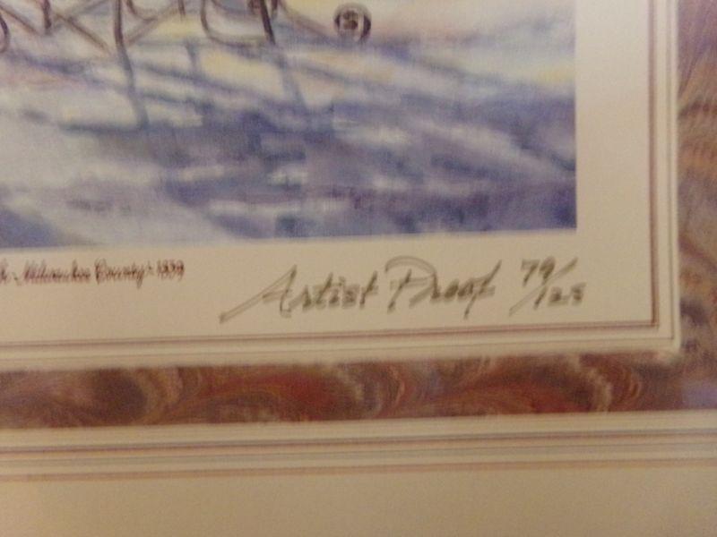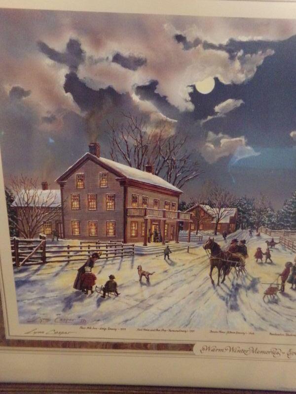 "WARM WINTER MEMORIES" PRINT BY ARTIST LYNN CASPER, SIGNED AND NUMBERED 79/125. IT IS IN GOOD CONDITION. MEASURES 23-3/4" x 37-1/2"