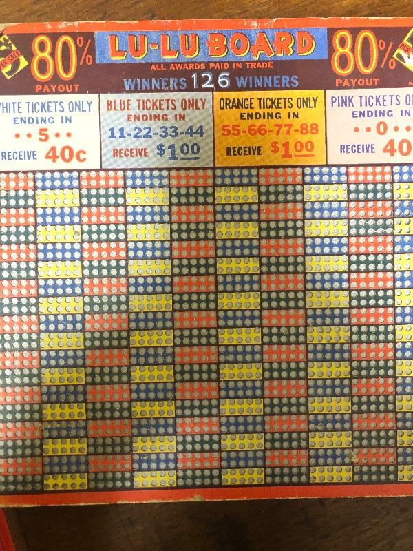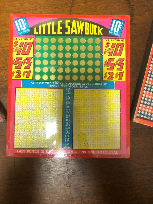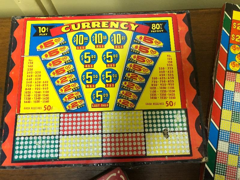 5 boards: lulu board, little sawbuck, best there is, saw buck Ben, currency mixed condition two plastic wrapped the other 3 worn with age: Vintage used condition