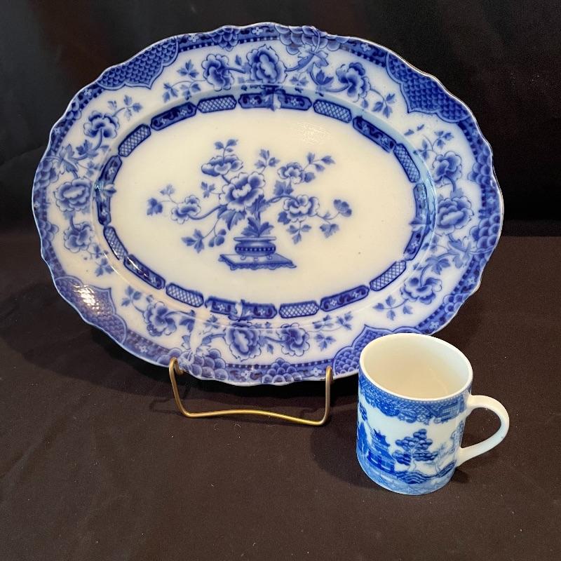 Lot 92 - Albert Jones Flow Blue Pekin Plate w/ Mug