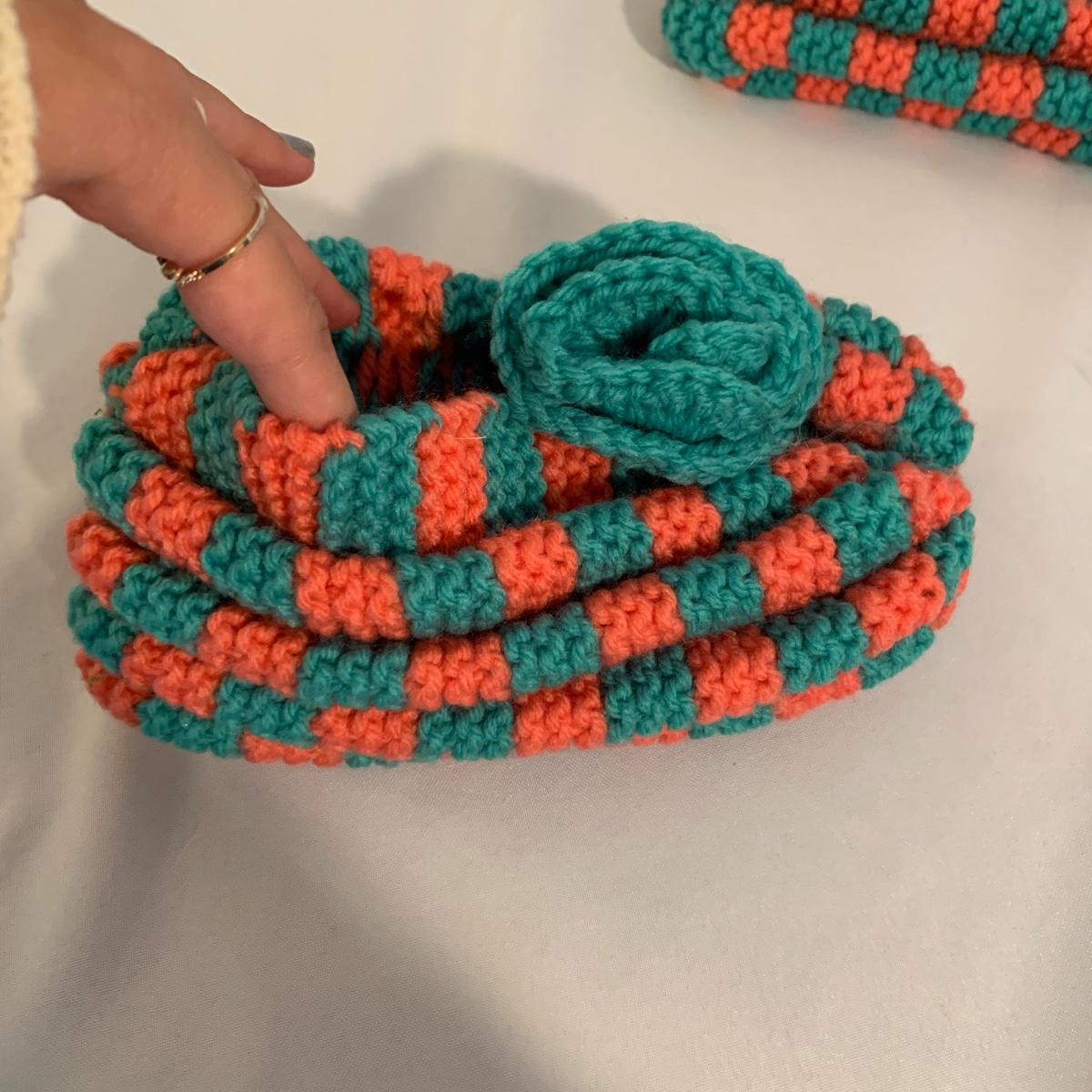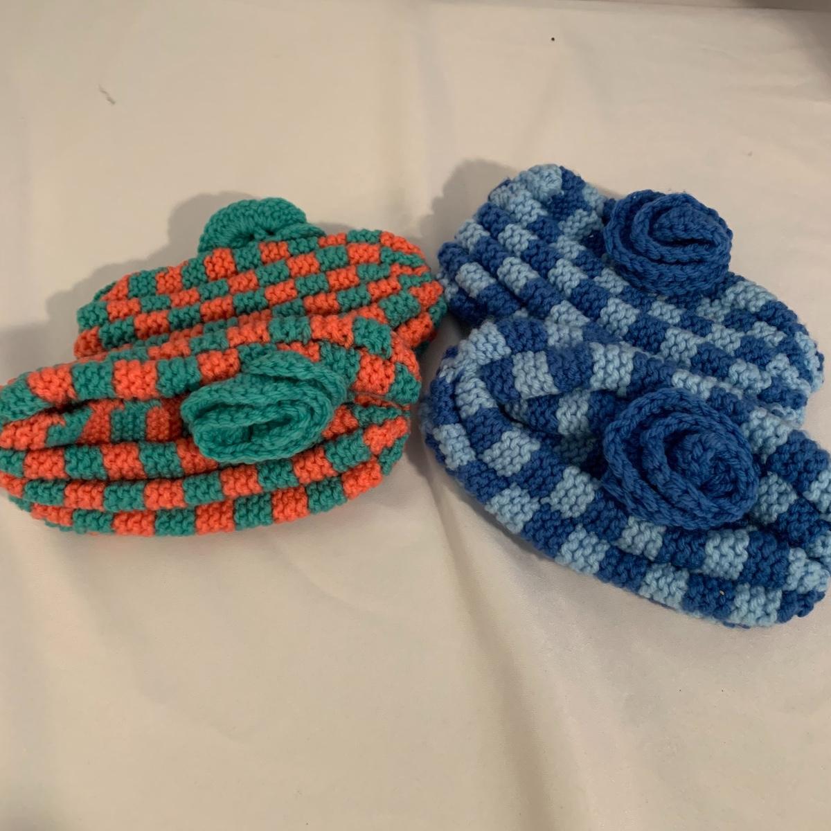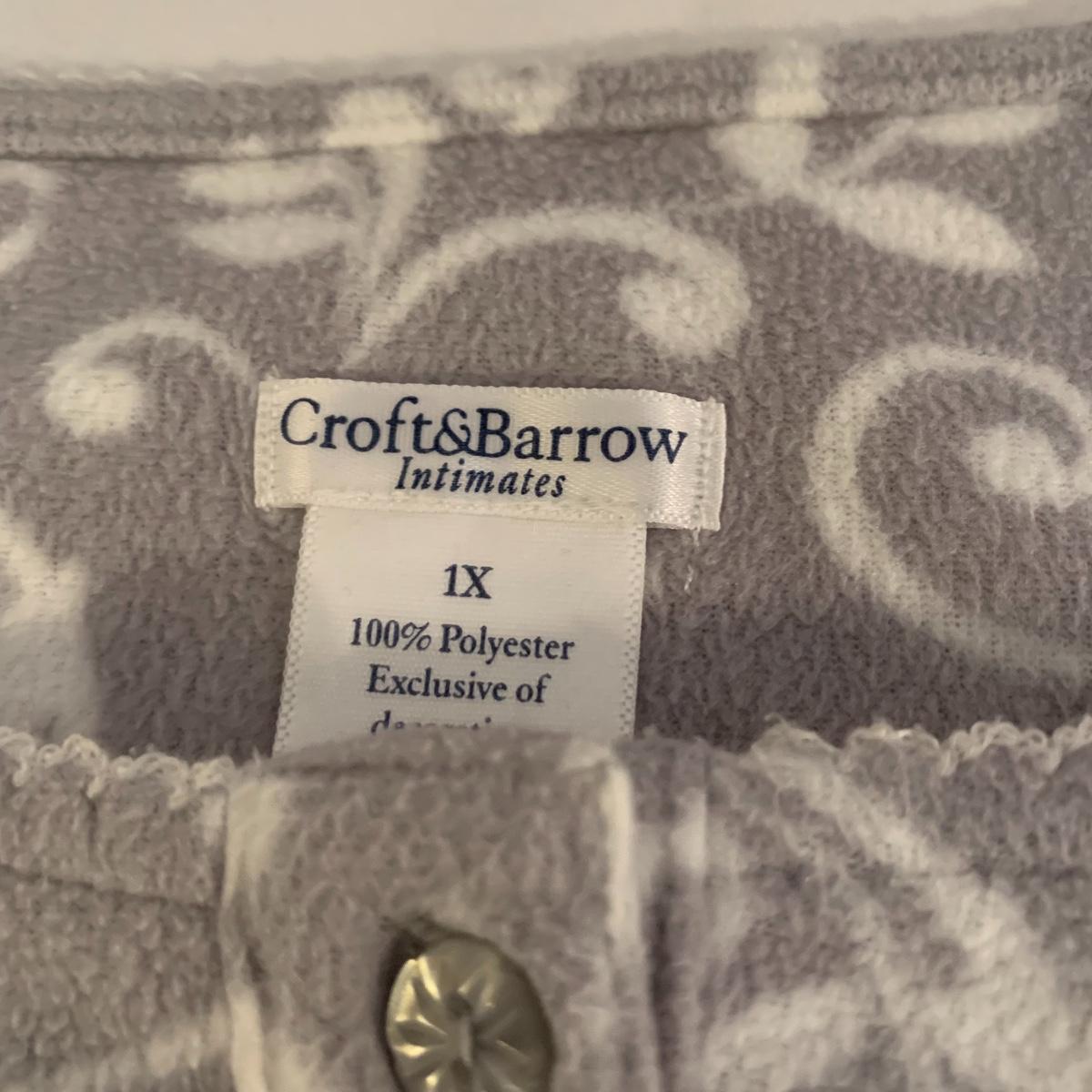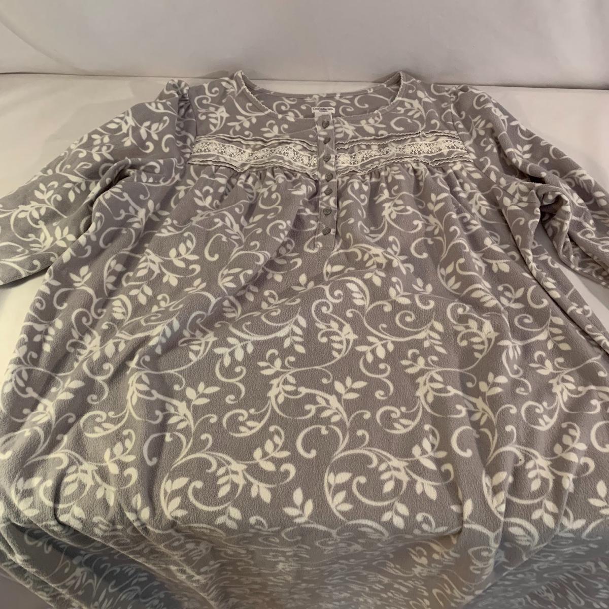 This lot includes women’s nightwear, such as, slippers and nightgowns, as well as, winter accessories. The winter accessories include three fleece scarves, a matching set with gloves, a scarf, and a hat. Some of the slippers are crochet booties and the others are fuzzy slippers. The nightgowns are both by the brand Croft&Barrow. The purple one is a size 3X and the grey nightgown is a size 1X. Shipping available.