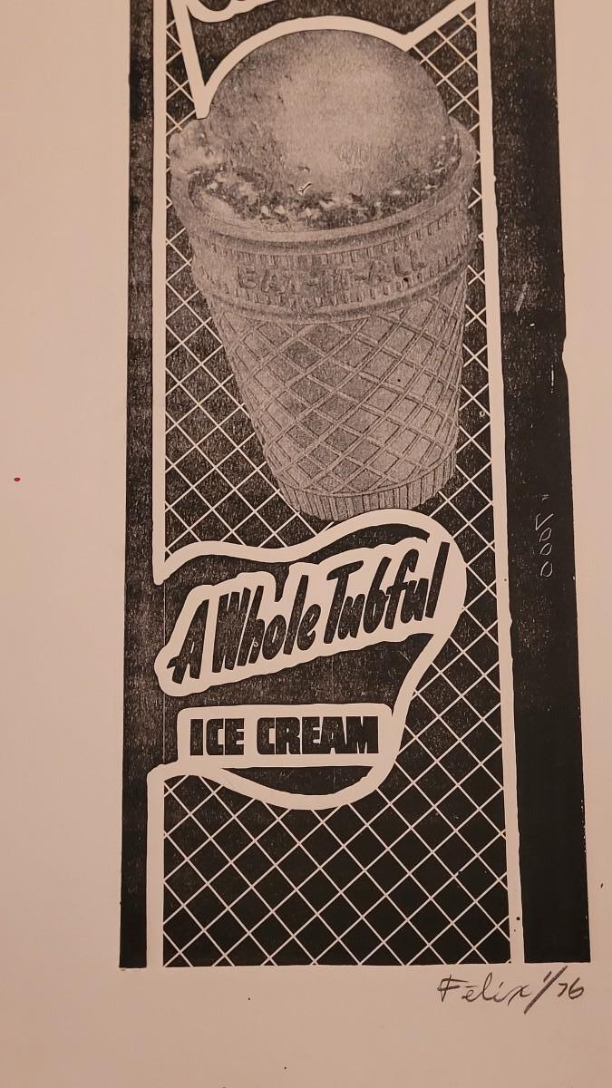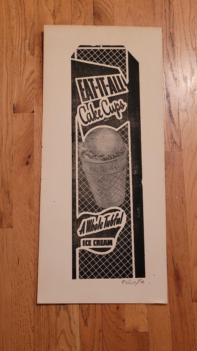 Lot 92: "Eat-It-All Cake Cups, A Whole Tubful Ice Cream" Signed FELIX