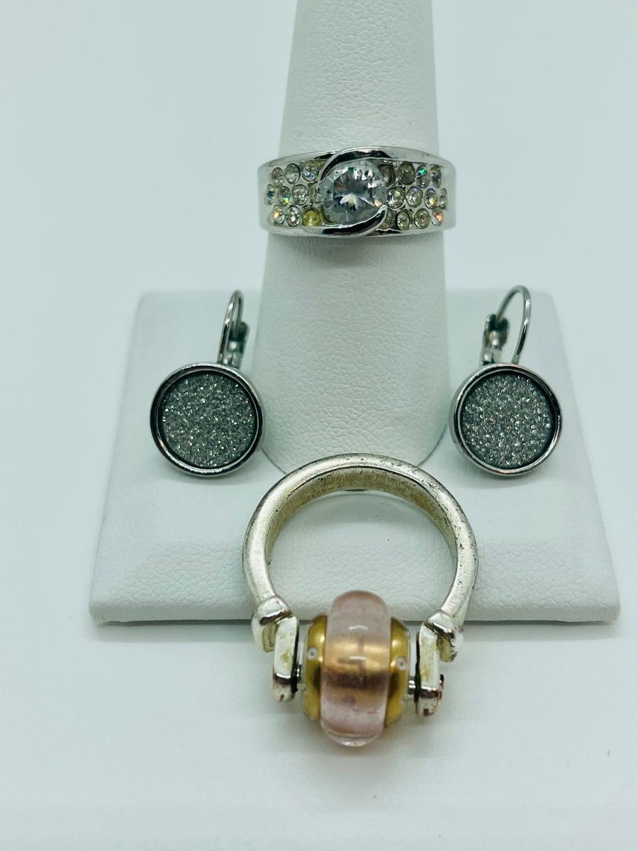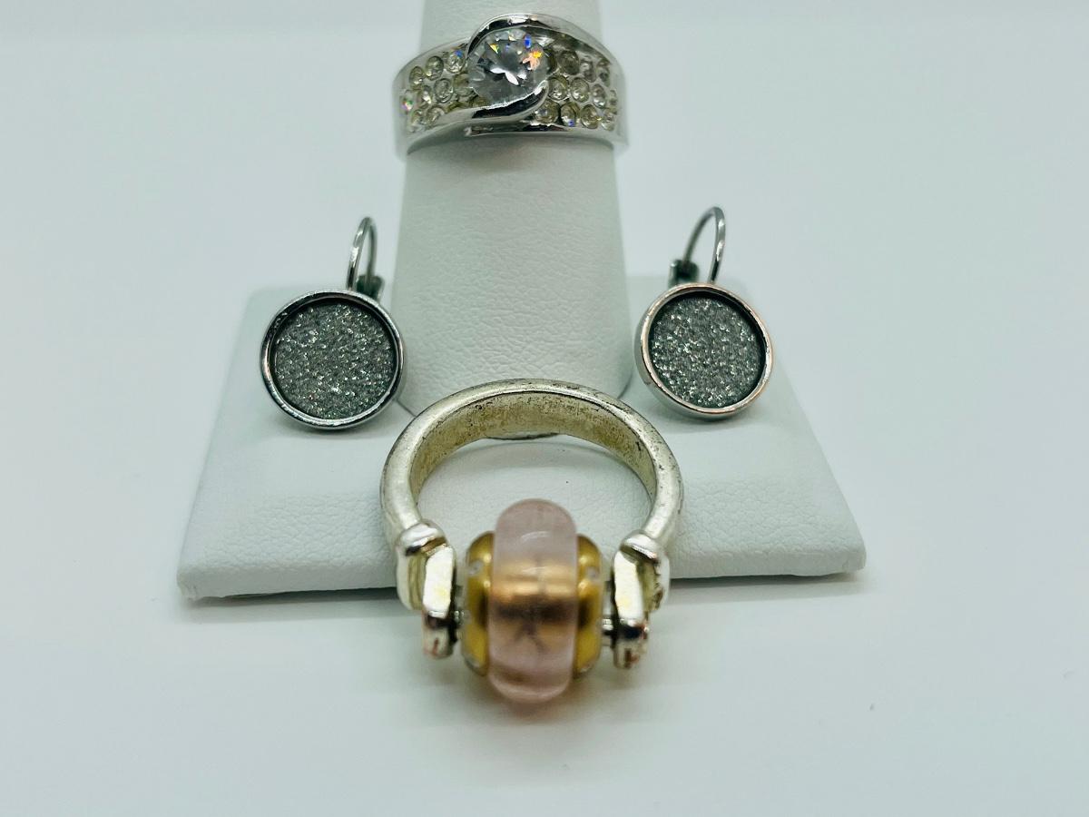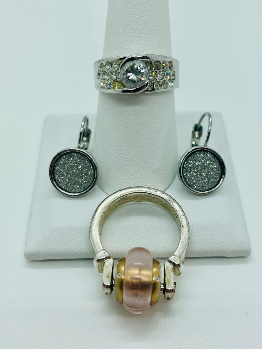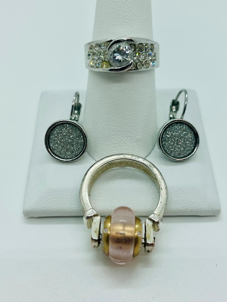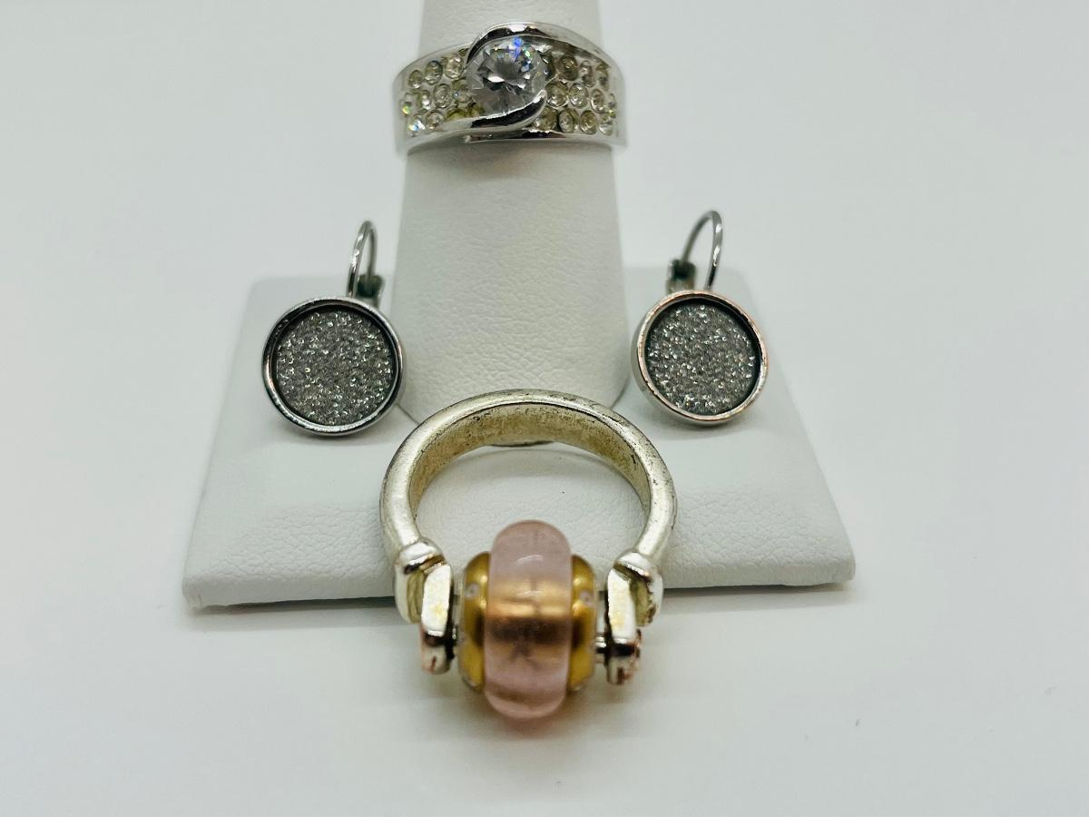 Lot 92: Costume Rings size 8 and Glittery Pierced Earrings