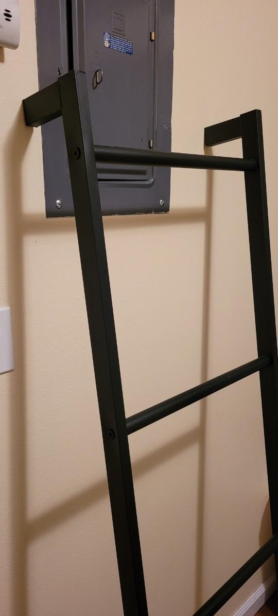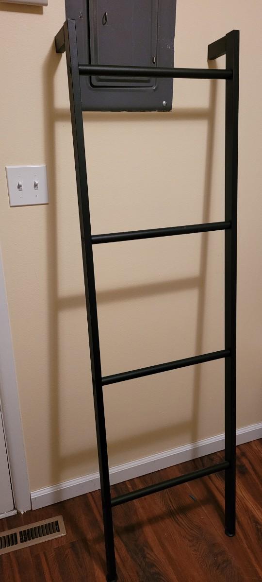 Black Towel Holder Ladder that leans up against the wall to store your towels in a stylish and space-saving manner.