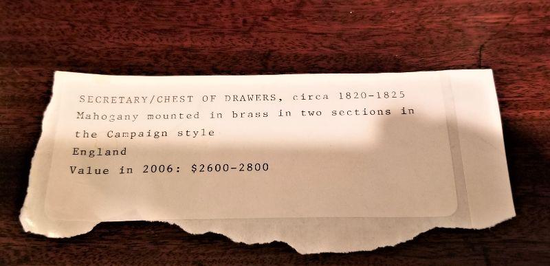 Lot #92  Antique Campaign Chest - Desk/Storage Combo...English, 1820-1825