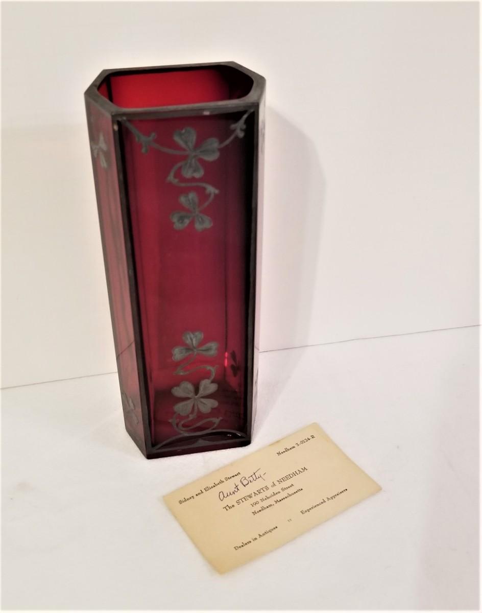 Lot #92 Antique Ruby Vase with Sterling Overlay