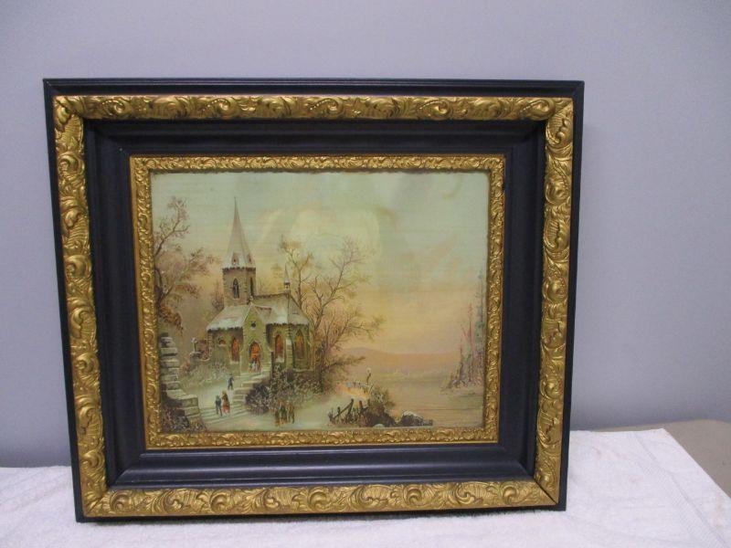 Lot 92 - Antique Victorian Framed Print - Church Scene