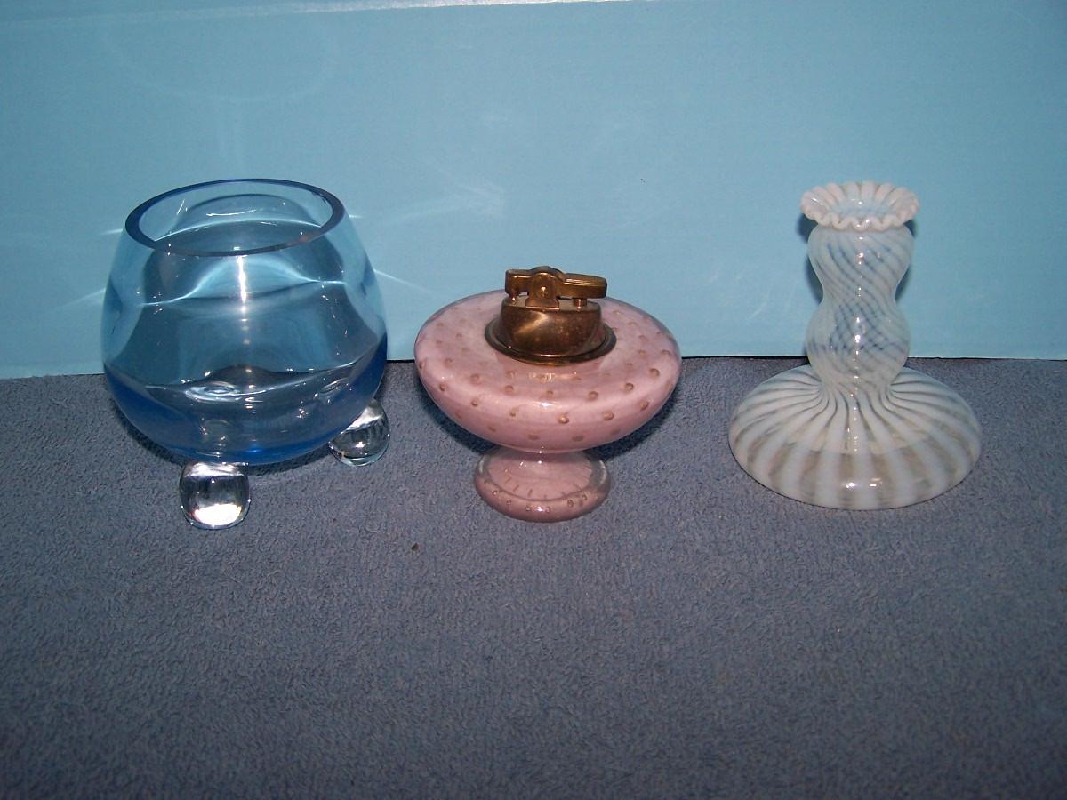 THIS IS SOME BEAUTIFUL VINTAGE ART GLASS!!! CANDLESTICK/VASE/THING IS 4 1/8'' TALL. LIGHT WEAR..