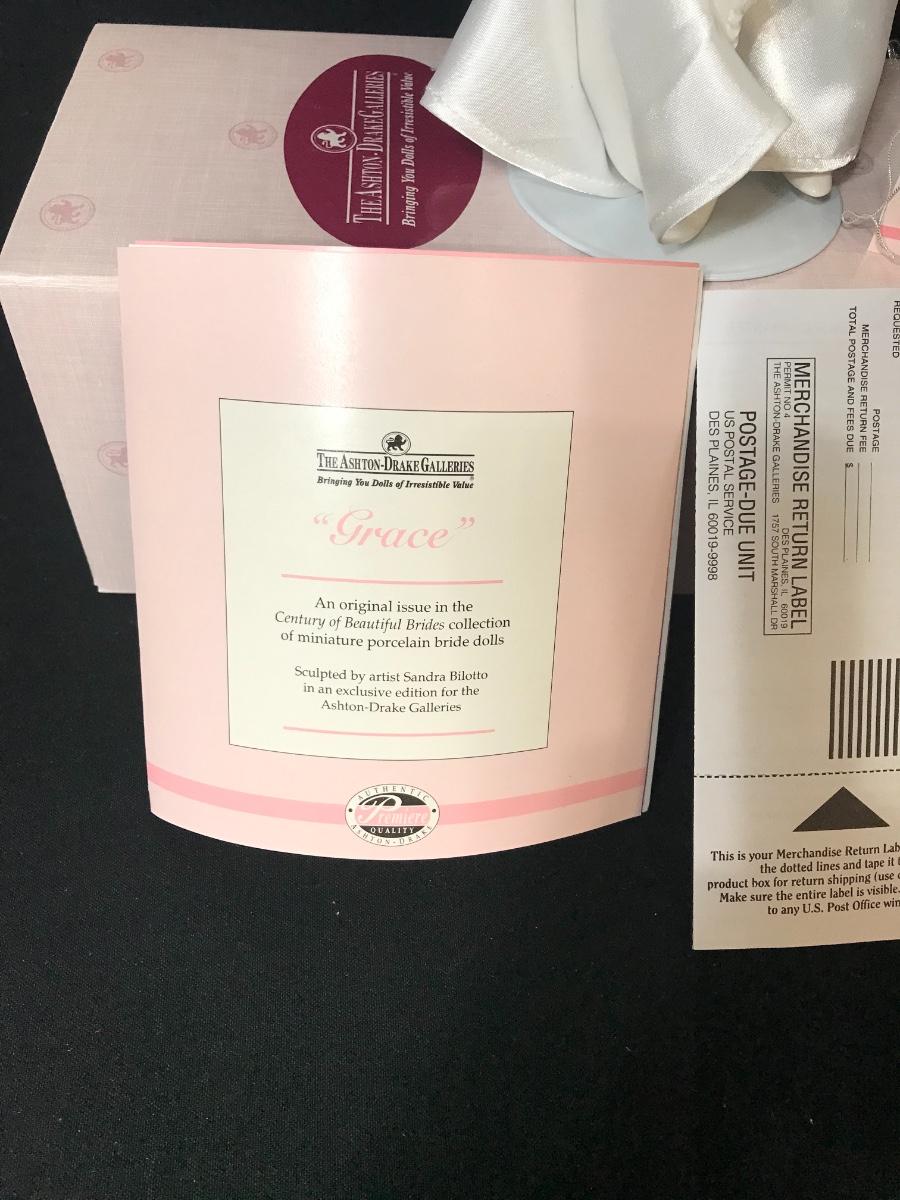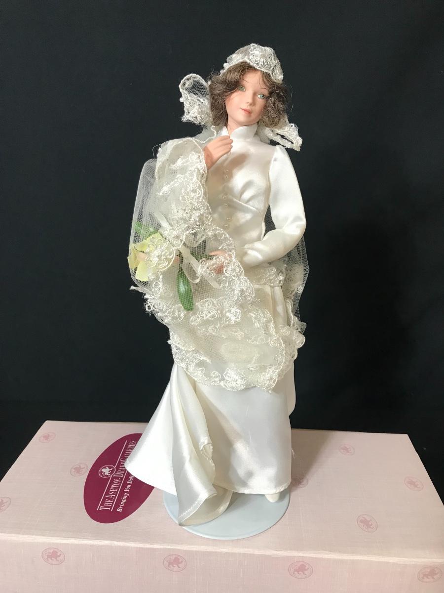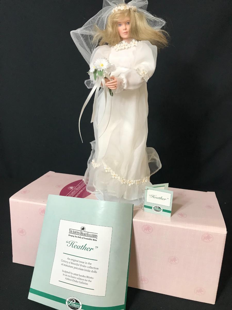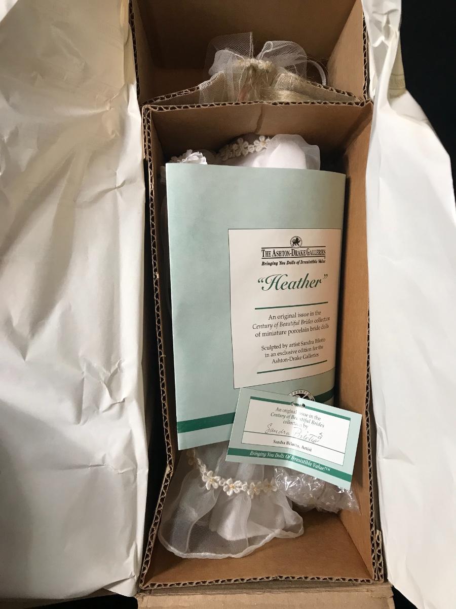 Collection of Ashton-Drake Galleries Bride Dolls - Grace, Katherine, Joanna, Donna & Heather. Please see all pictures as they are the best representation of the items. The pictures show condition, measurements if taken, and what is included in the lot. Due to the large amount that we photograph and the time frame, we are not always able to take measurements. All items unless noted, are pre-owned and have been used. Please bring packing materials for your items. If you purchased furniture, you must bring help. We do not allow one person to carry large furniture out on their own. Bring help, tools and a truck for your personal safety. Company policy. Thank you.