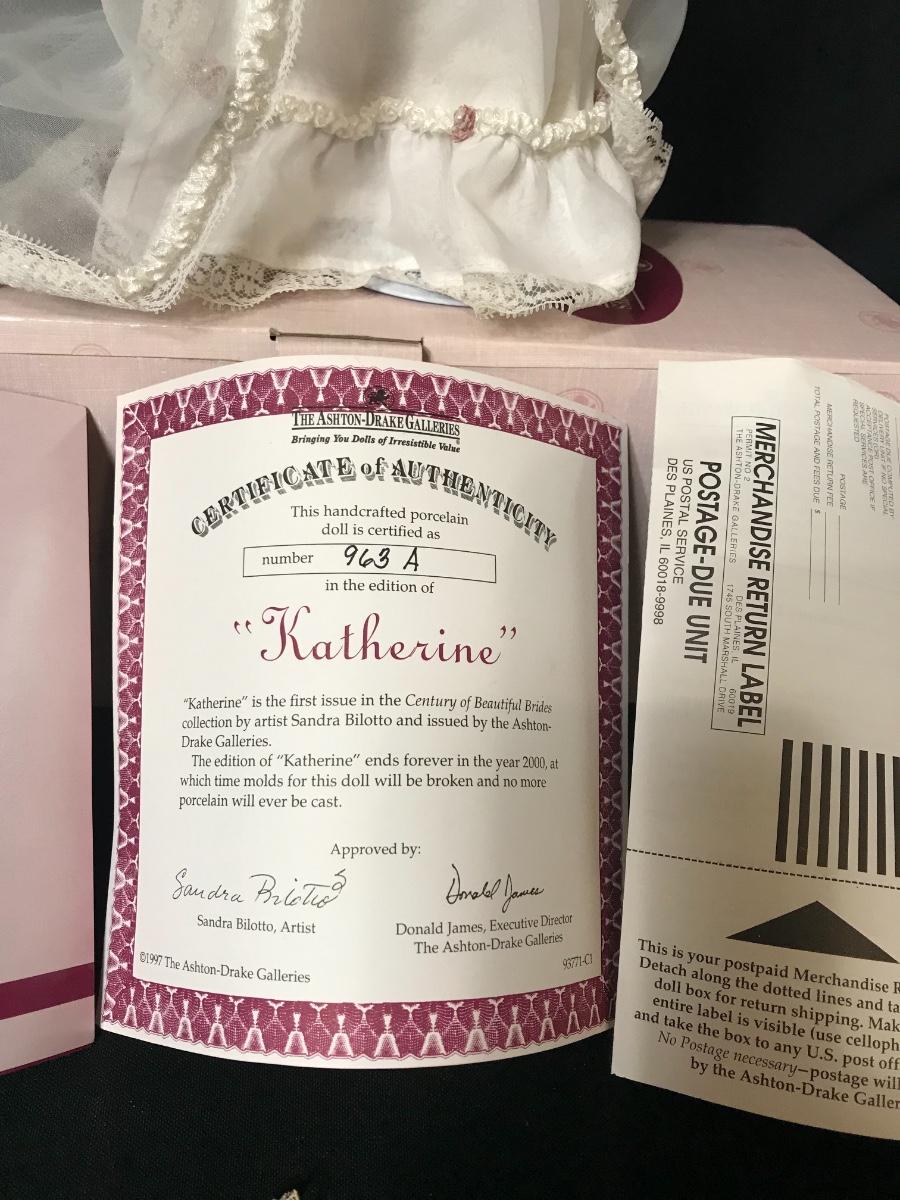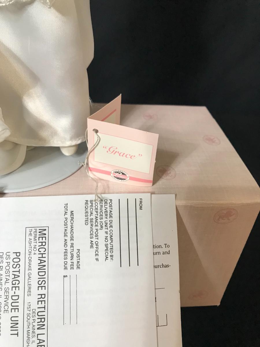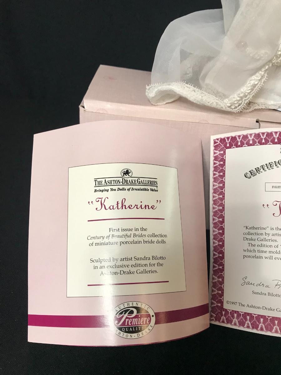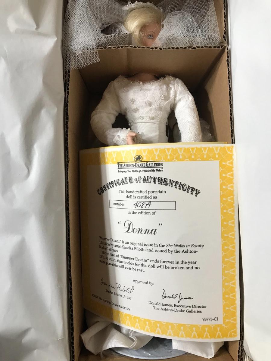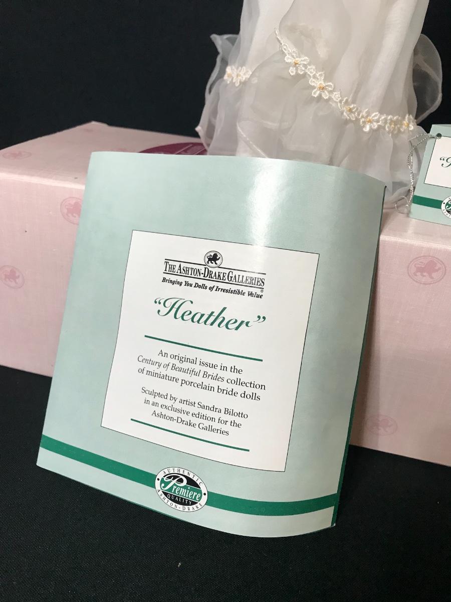 Collection of Ashton-Drake Galleries Bride Dolls - Grace, Katherine, Joanna, Donna & Heather. Please see all pictures as they are the best representation of the items. The pictures show condition, measurements if taken, and what is included in the lot. Due to the large amount that we photograph and the time frame, we are not always able to take measurements. All items unless noted, are pre-owned and have been used. Please bring packing materials for your items. If you purchased furniture, you must bring help. We do not allow one person to carry large furniture out on their own. Bring help, tools and a truck for your personal safety. Company policy. Thank you.