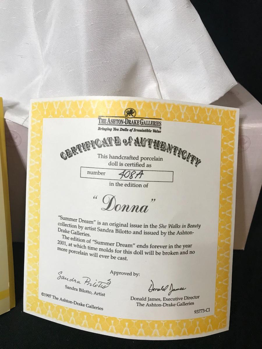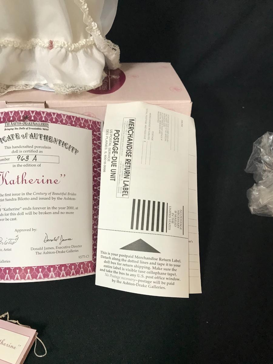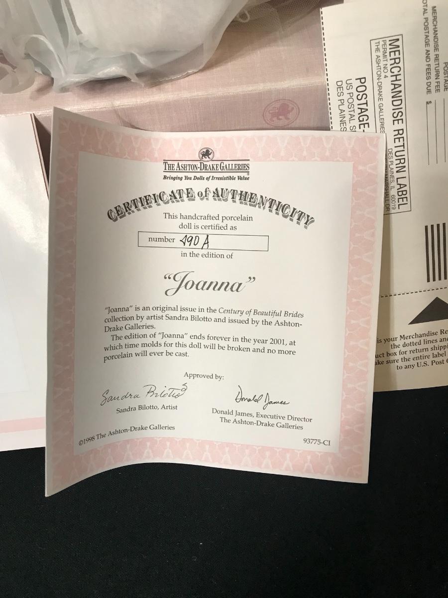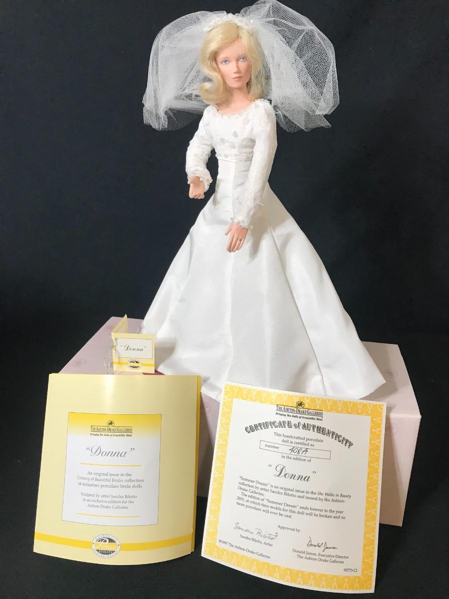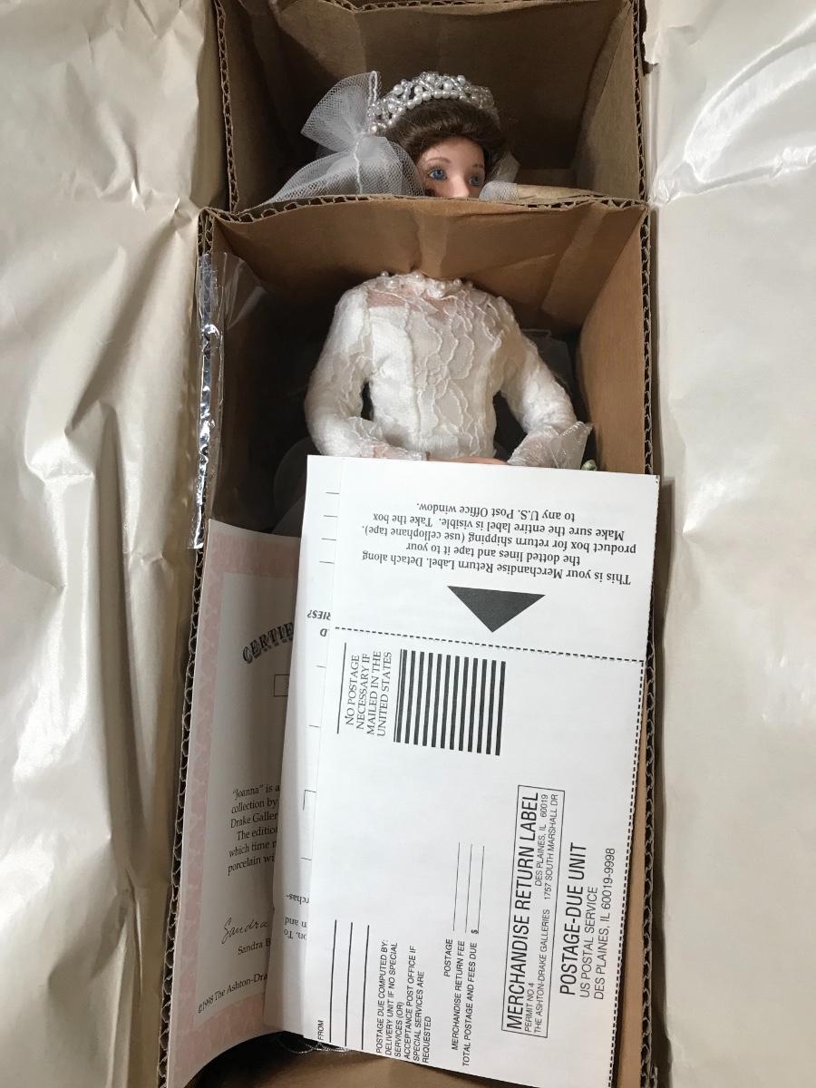 Collection of Ashton-Drake Galleries Bride Dolls - Grace, Katherine, Joanna, Donna & Heather. Please see all pictures as they are the best representation of the items. The pictures show condition, measurements if taken, and what is included in the lot. Due to the large amount that we photograph and the time frame, we are not always able to take measurements. All items unless noted, are pre-owned and have been used. Please bring packing materials for your items. If you purchased furniture, you must bring help. We do not allow one person to carry large furniture out on their own. Bring help, tools and a truck for your personal safety. Company policy. Thank you.
