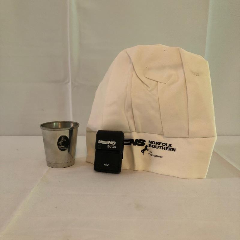 If you work in a construction job, or just like to collect business items, this one’s for you! If you or someone you know has worked at Norfolk Southern, buy this lot and gift them! It comes with a Norfolk Southern metal cup that can be used for holding different items, as well as a rare Braun electric razor. As well as those unique items, it has a navy blue, gray, and white outerwear jacket that looks brand new! This jacket fits a men’s large and was made in Portland, Oregon.