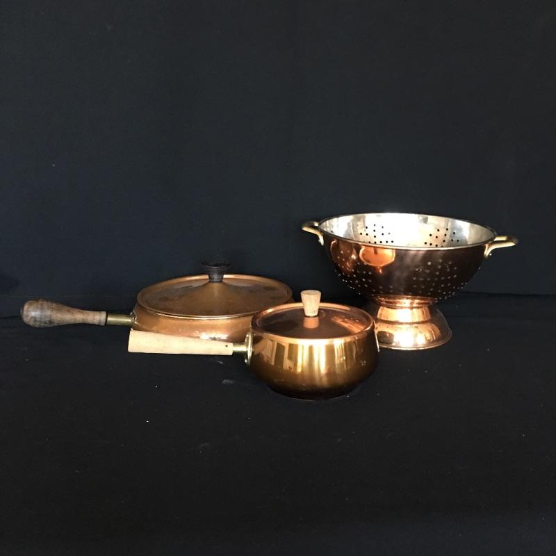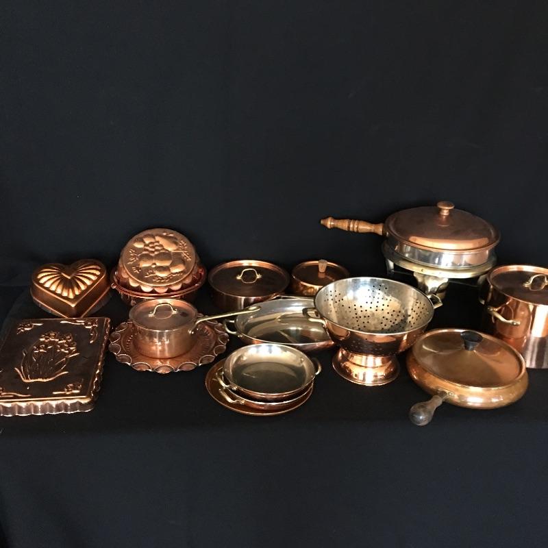 Oodles of copper including colander, jello molds, fondue, pots and so much more.