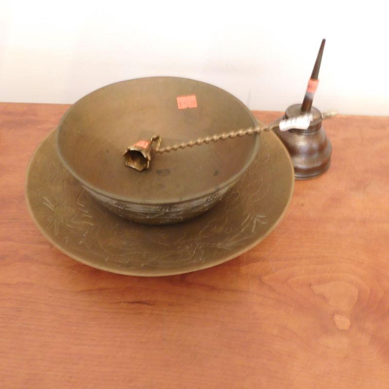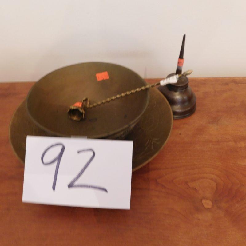 Lot 92 copper copper bowls plus antique oil cans