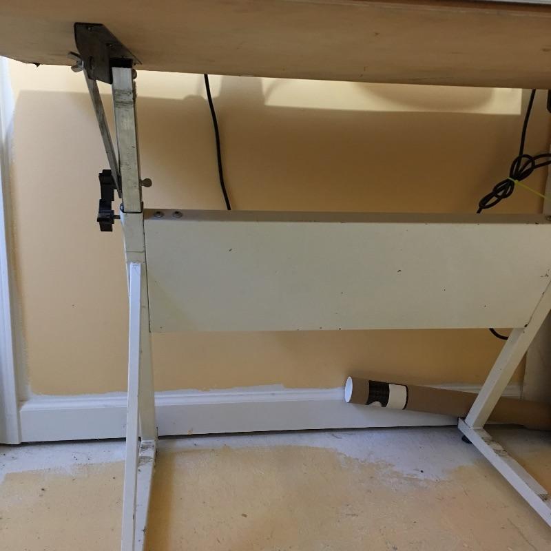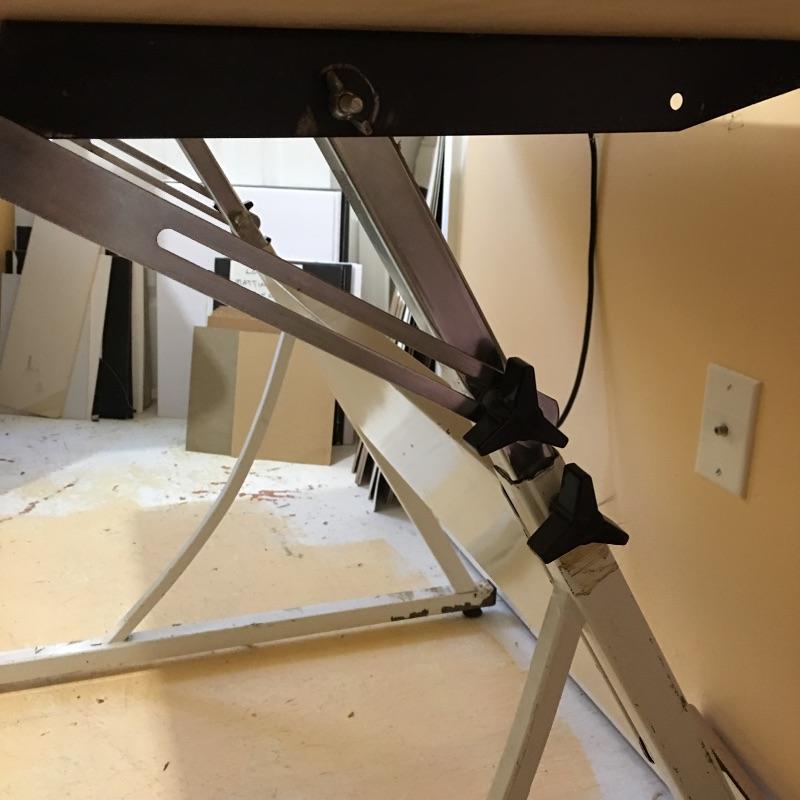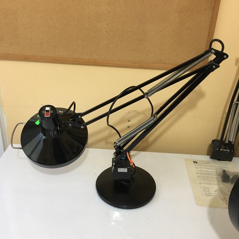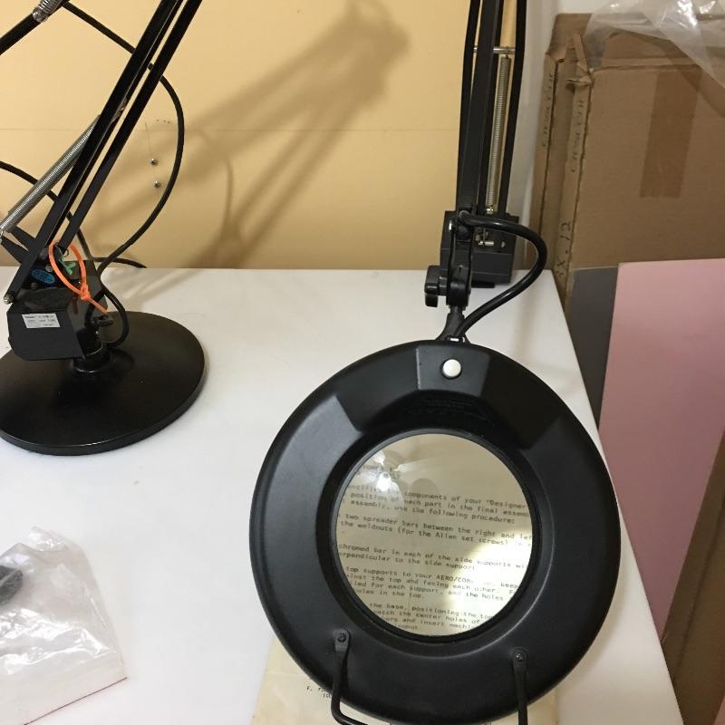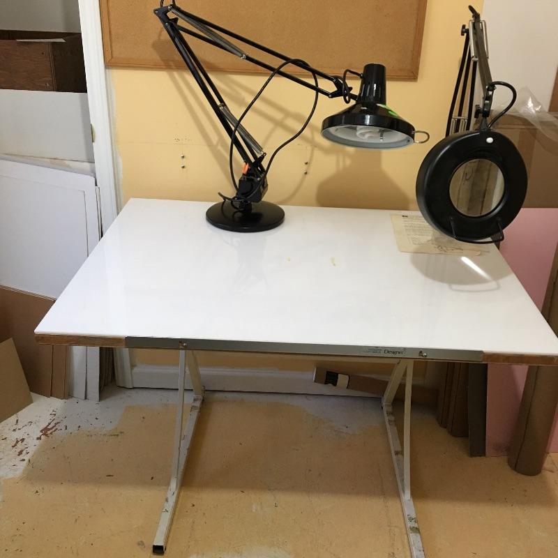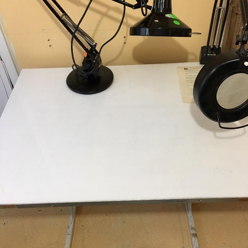 Plan holder designer drafting table with magnifying land and work lamp. Great table and lamps for all of your drawing and writing needs.